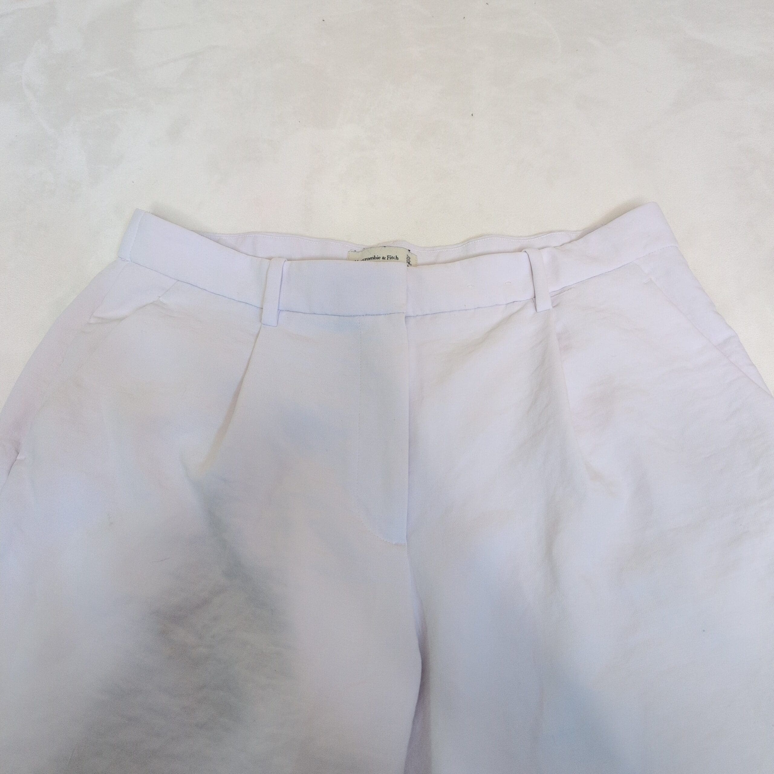 Abercrombie & Fitch women’s wide leg pants in white, size 14 (Plus). Classic wide-leg silhouette with belt loops, front pleats, and pockets. Gently worn and ready to wear — extremely light mark on the rear left pant leg as shown in photos.