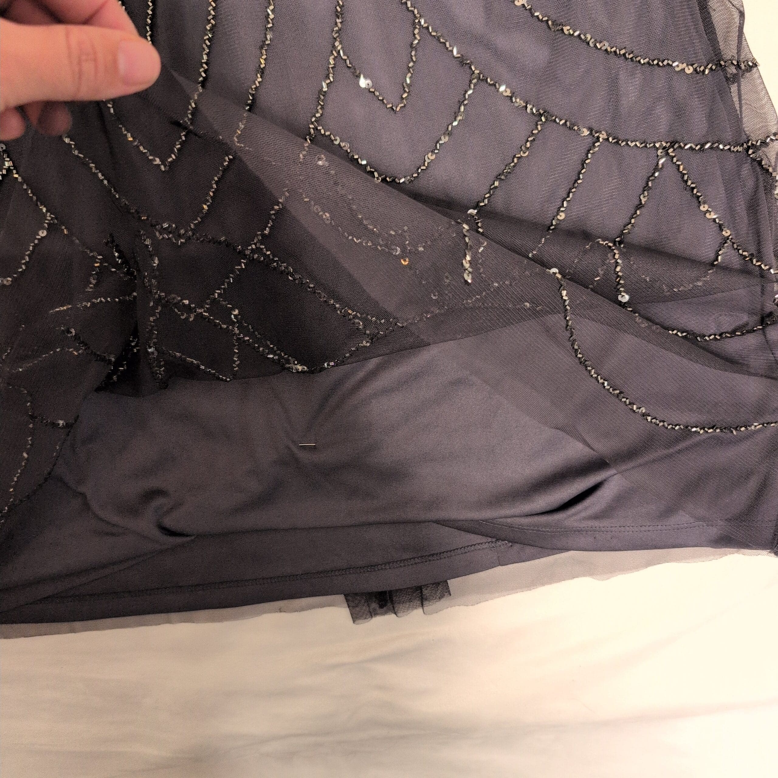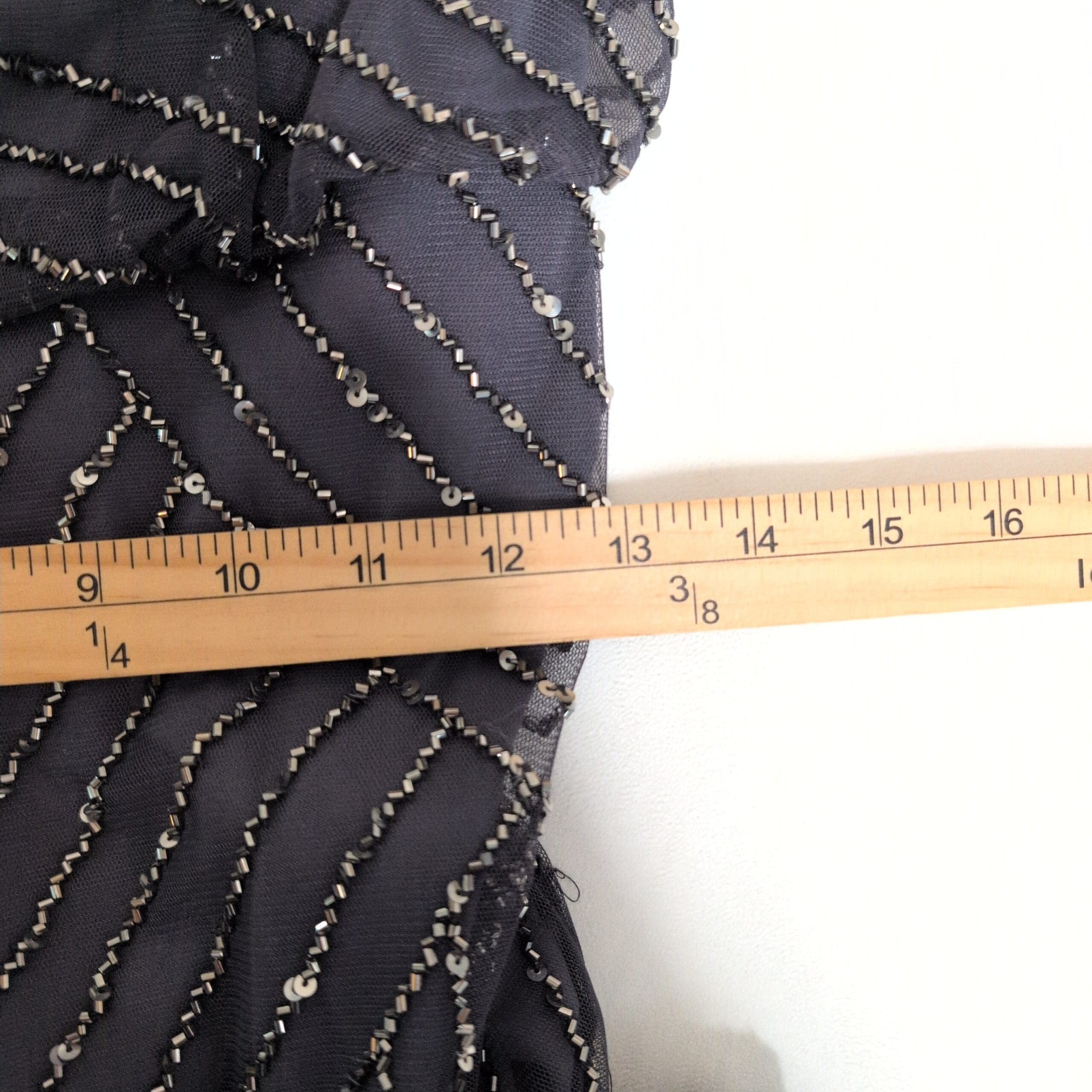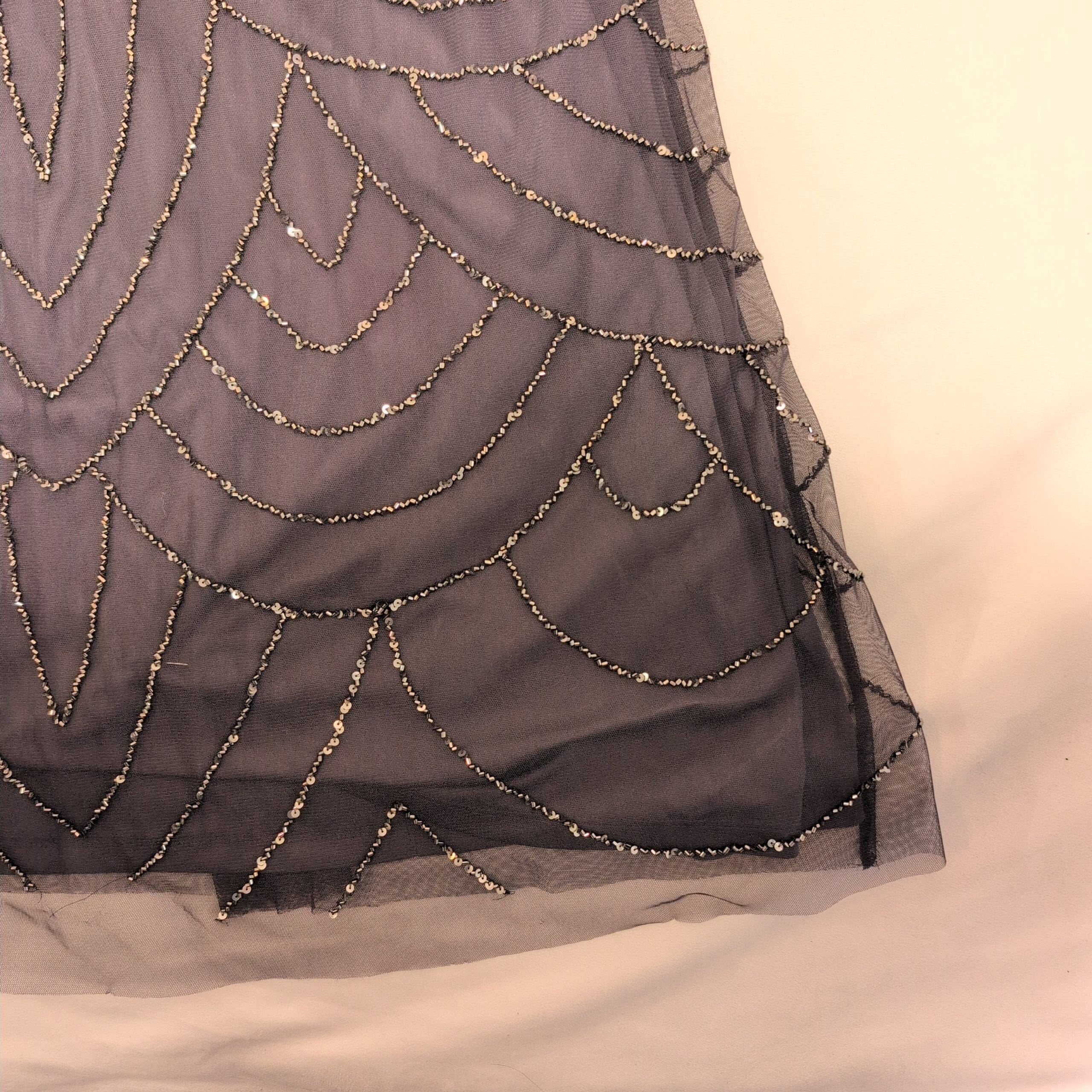 Condition: Gently used. Free of major rips, tears, stains, or flaws; typical light wear may be present. Beautiful beading is intact and adds luminous detail throughout the gown.