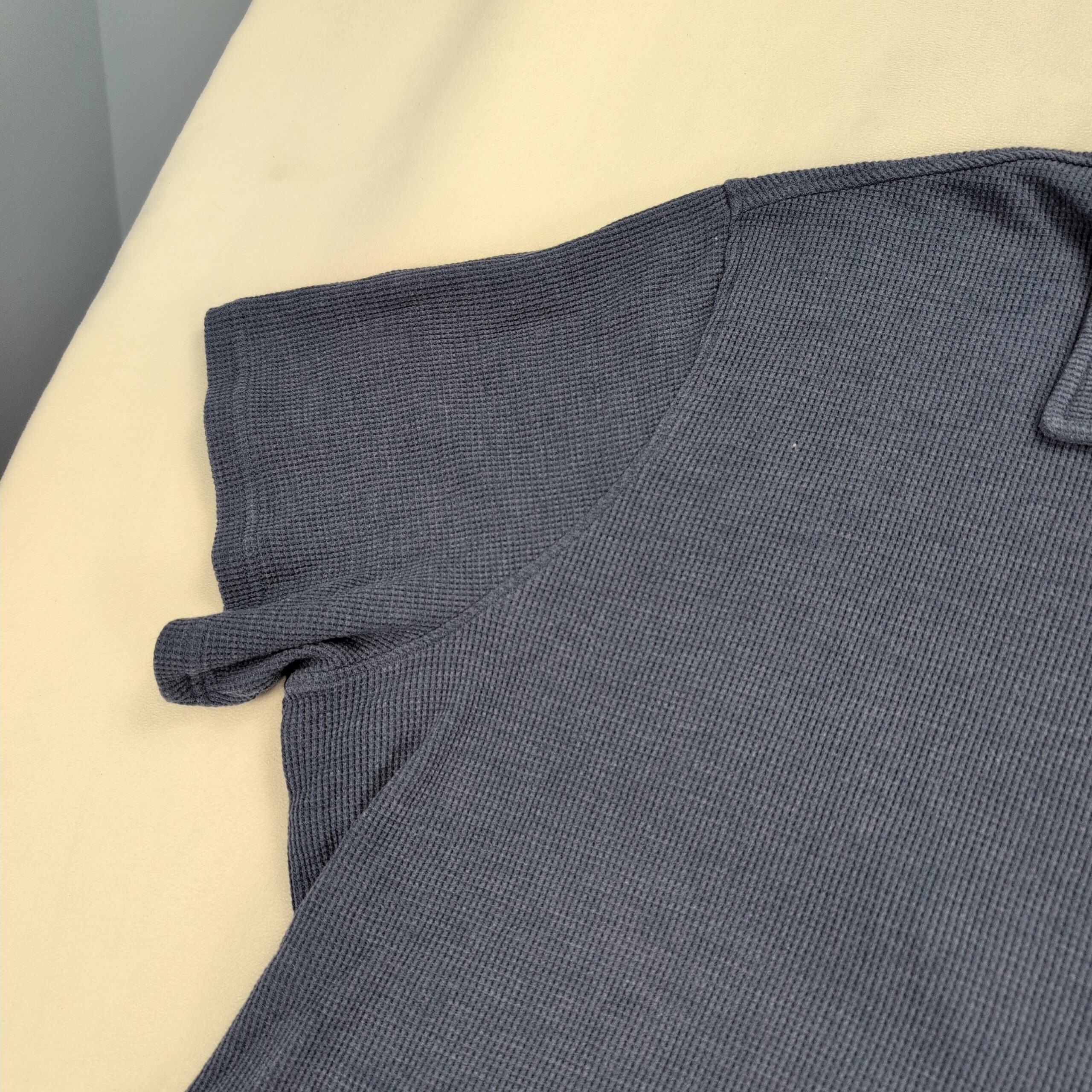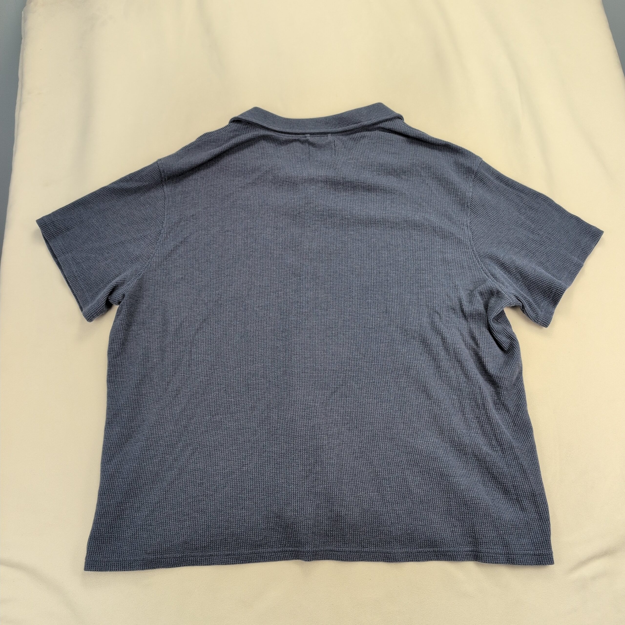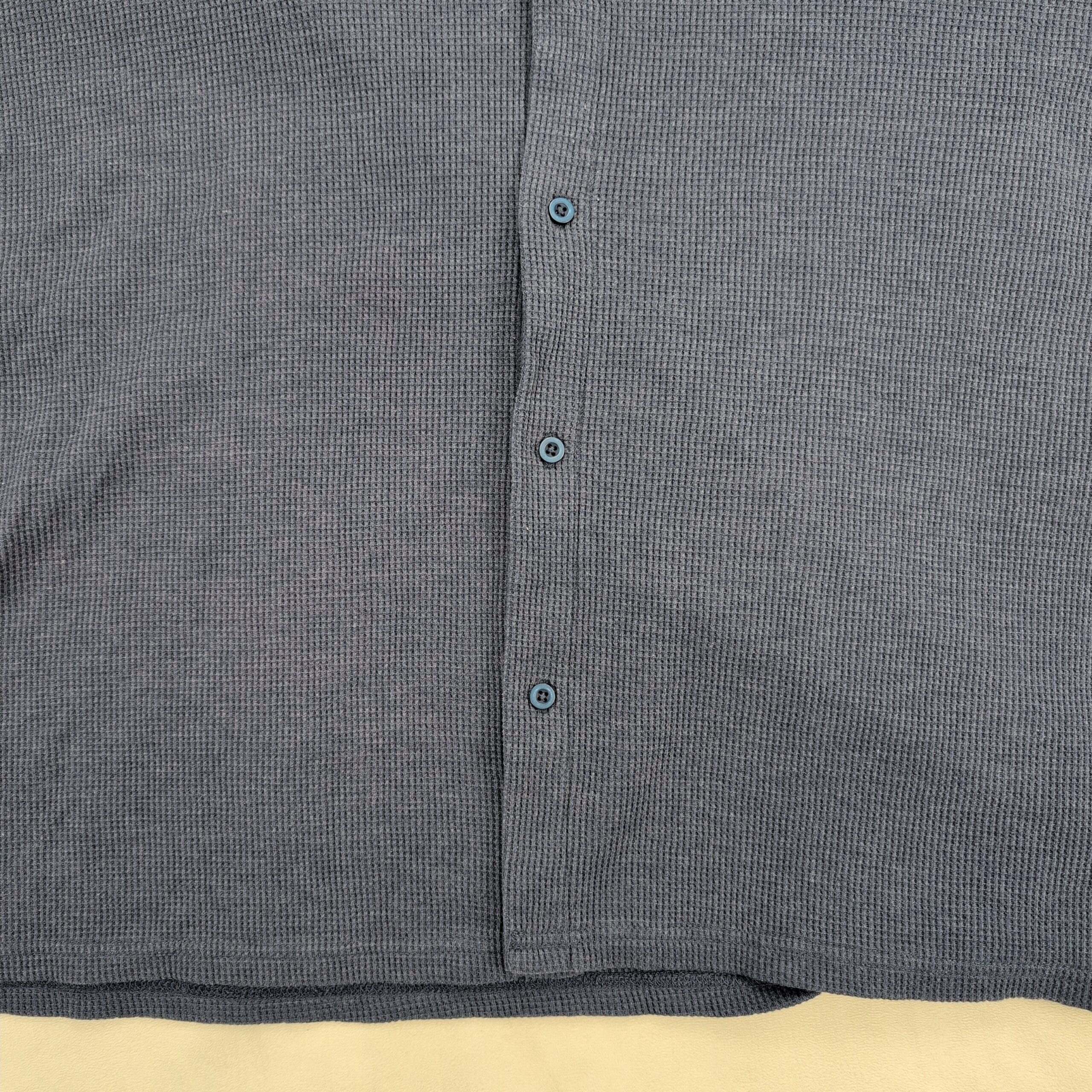 Blue Alesbury men’s short-sleeve button shirt in 3XL (Big & Tall). Soft waffle-knit texture with a relaxed camp-style collar and full button-front placket. Lightweight, breathable casual style good for everyday wear or layering. Label shows Alesbury brand. Excellent used condition — free of major rips, tears, or stains; typical light wear may be present.