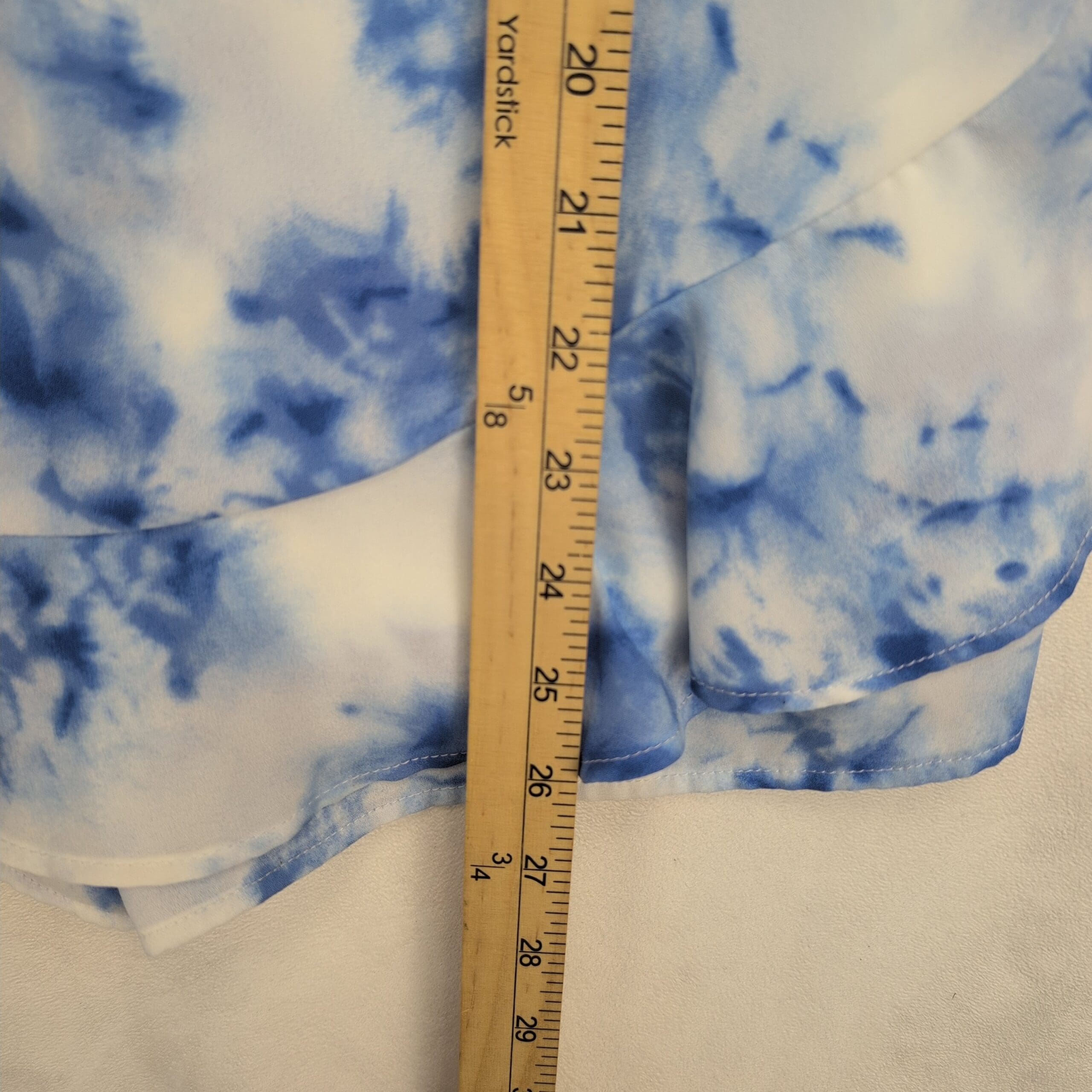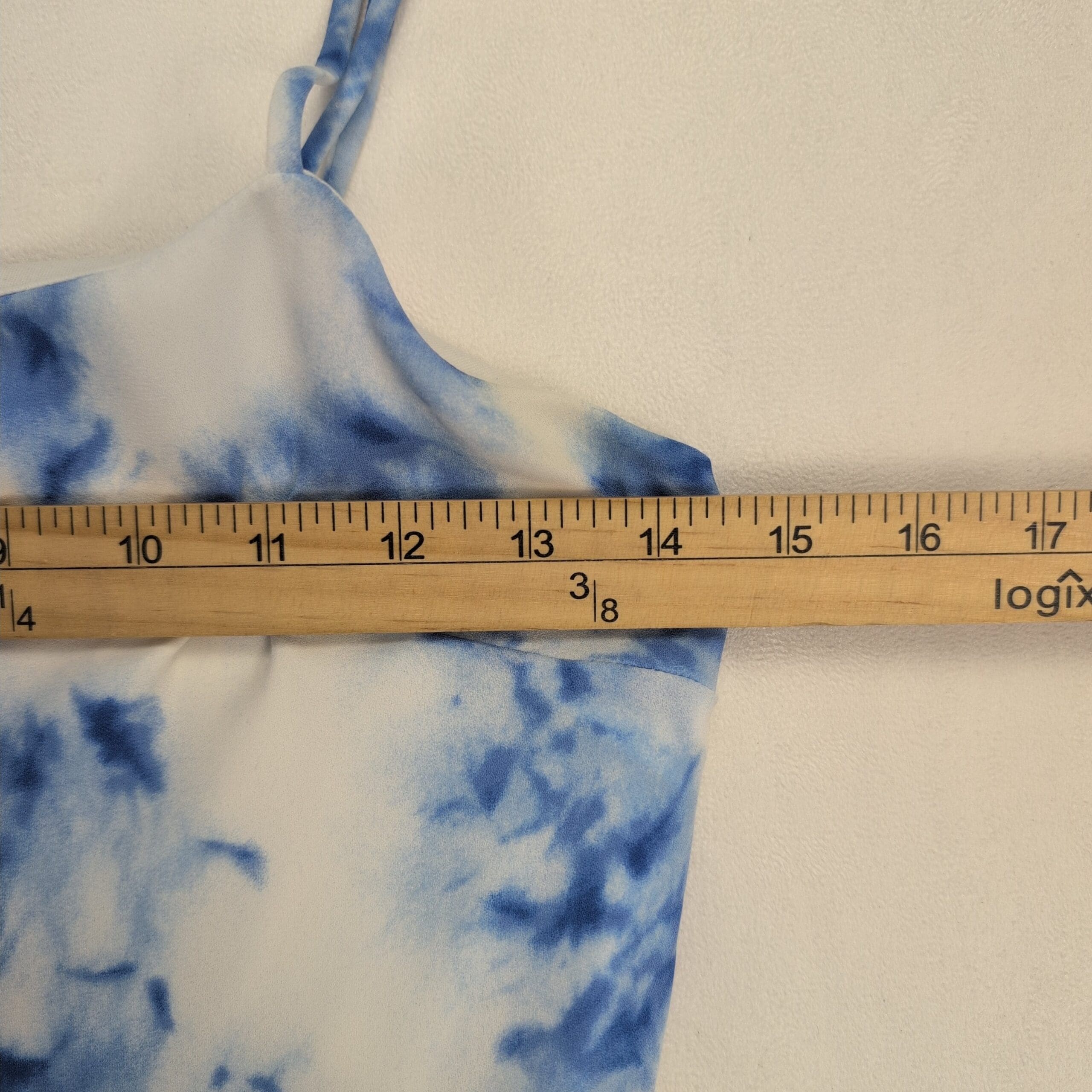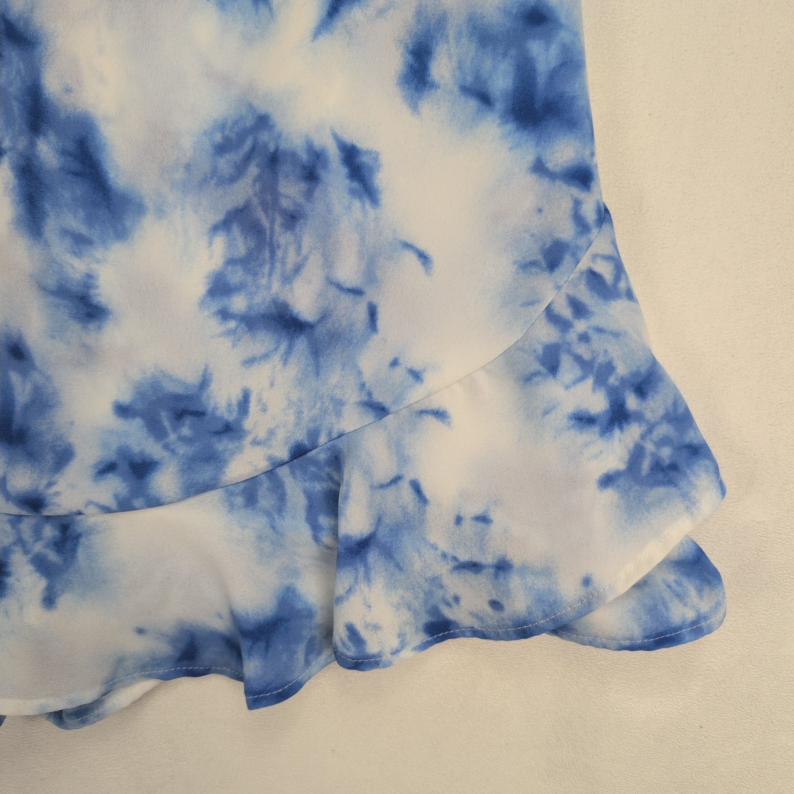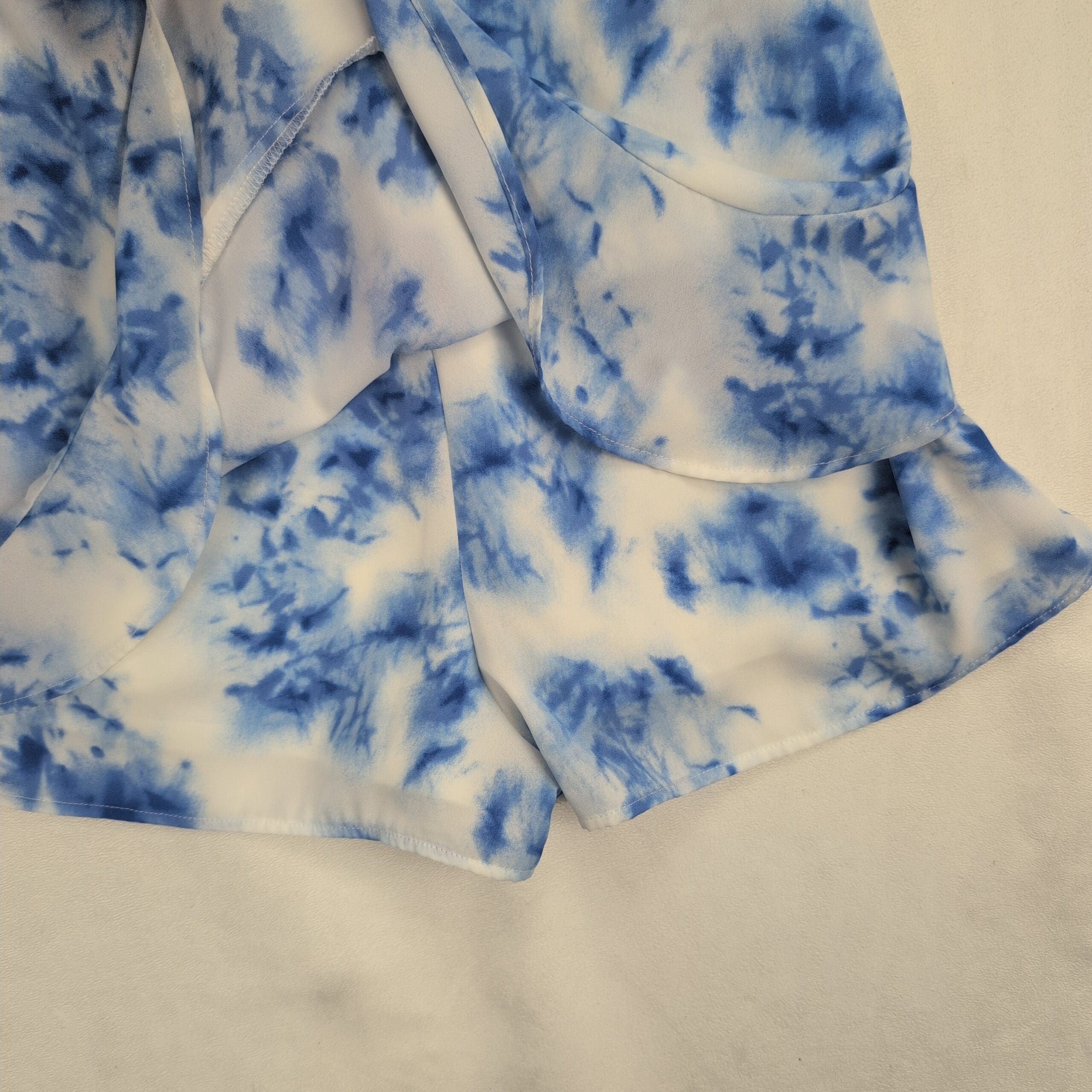 Altar’d State romper in size S featuring a blue and white tie-dye print. Spaghetti straps, fitted bodice, and a faux-wrap ruffle skirt with built-in shorts for a flirty, feminine look. Lightweight and easy to style for summer outings, beach days, or casual date nights. Excellent used condition — free of rips, stains, or major flaws; typical gentle wear may be present.