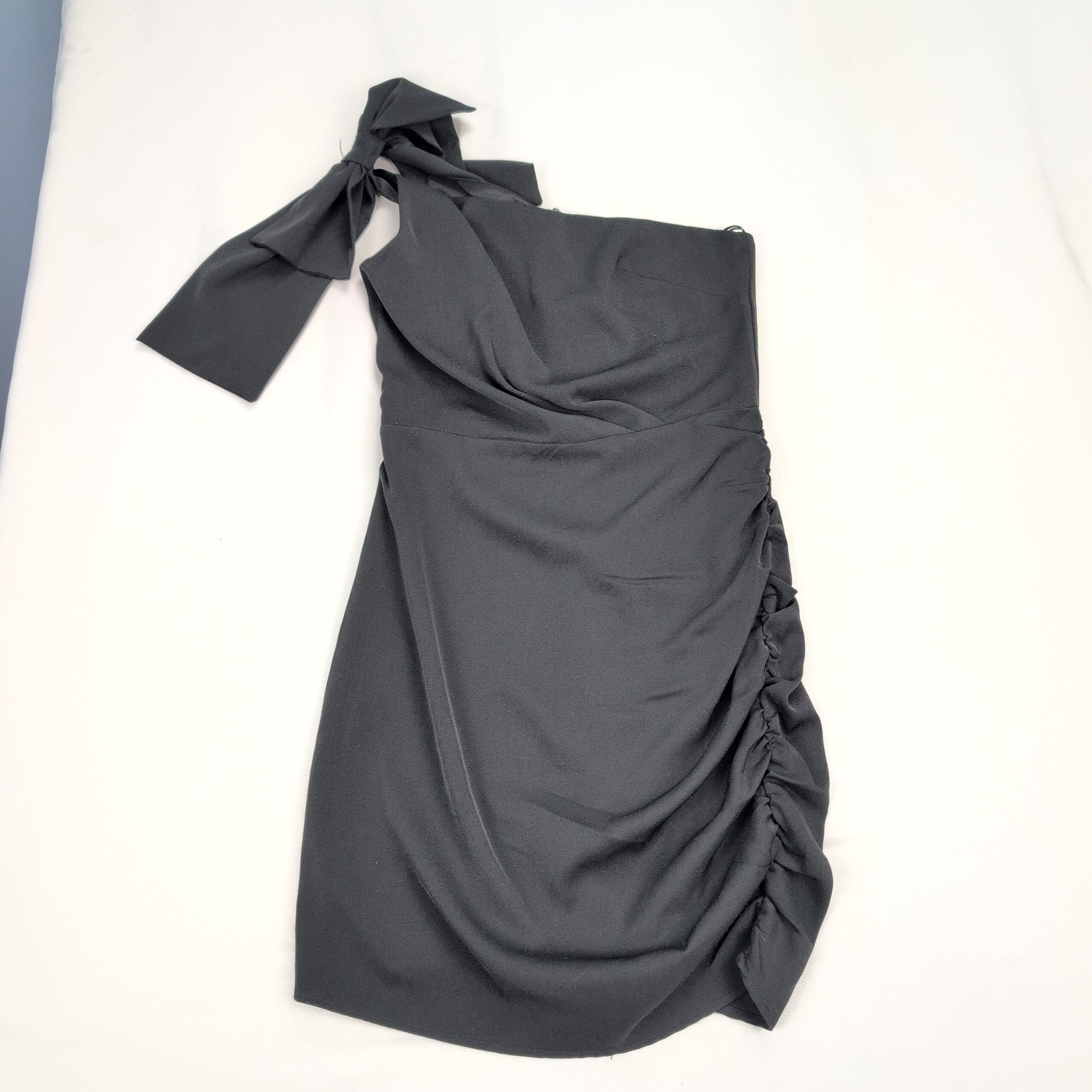 Altar’d State one-shoulder dress in size S. Features an asymmetrical neckline with a tied bow shoulder strap, ruched side detailing and a draped, figure-flattering silhouette — great for cocktail events or date nights. Excellent used condition: free of major rips, tears, stains, or flaws. Typical light wear may be present. Minor surface wrinkling visible in photos.