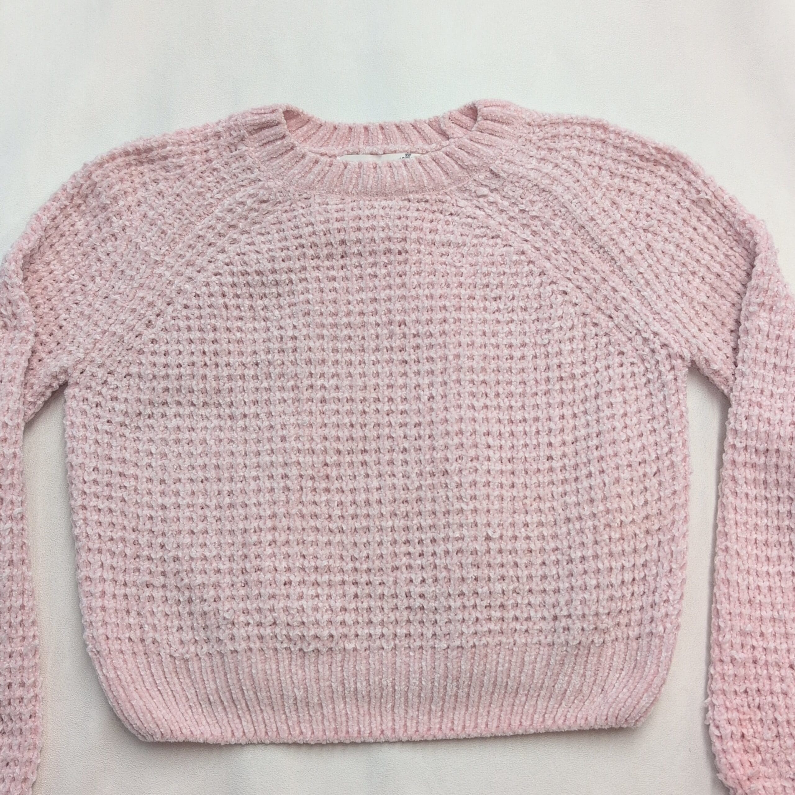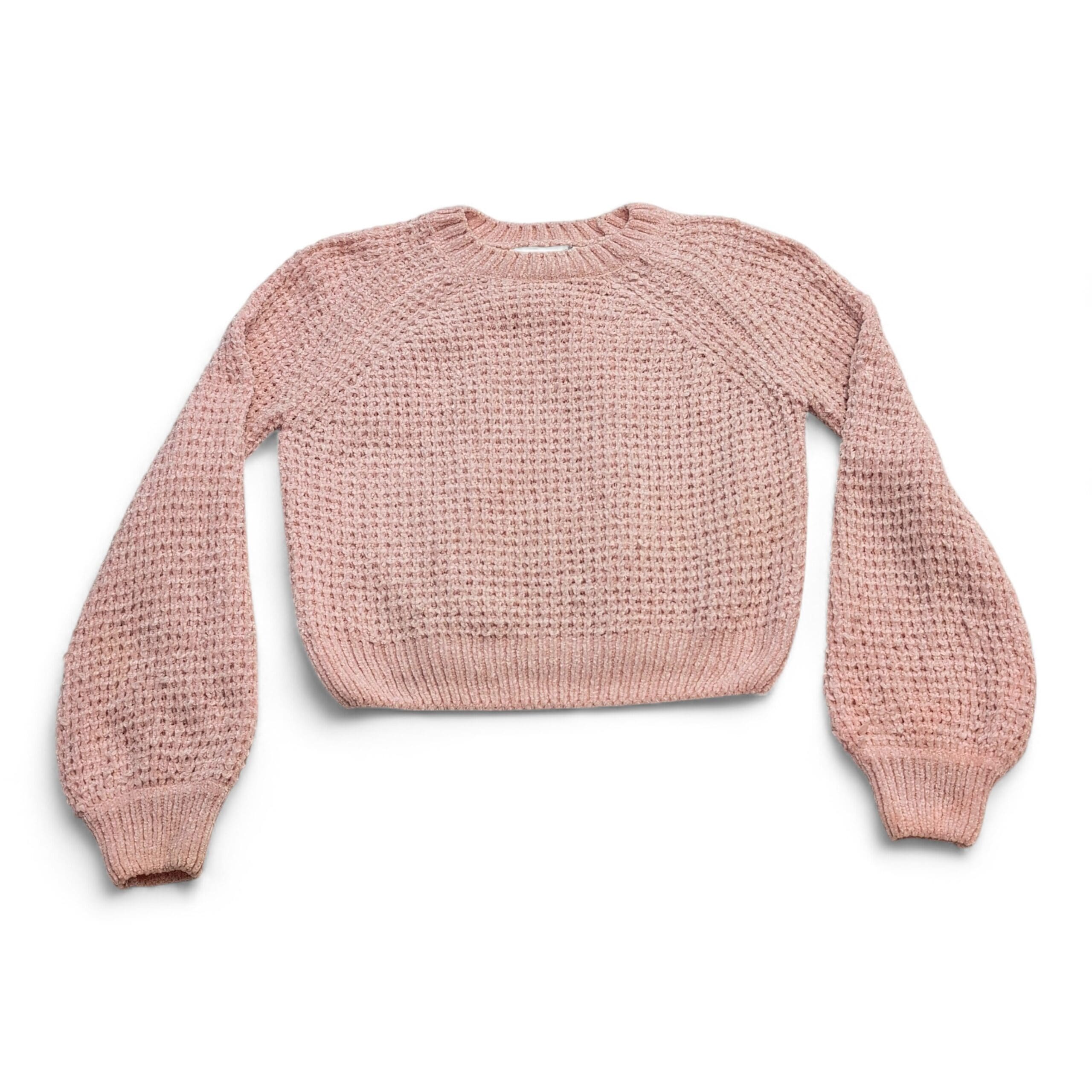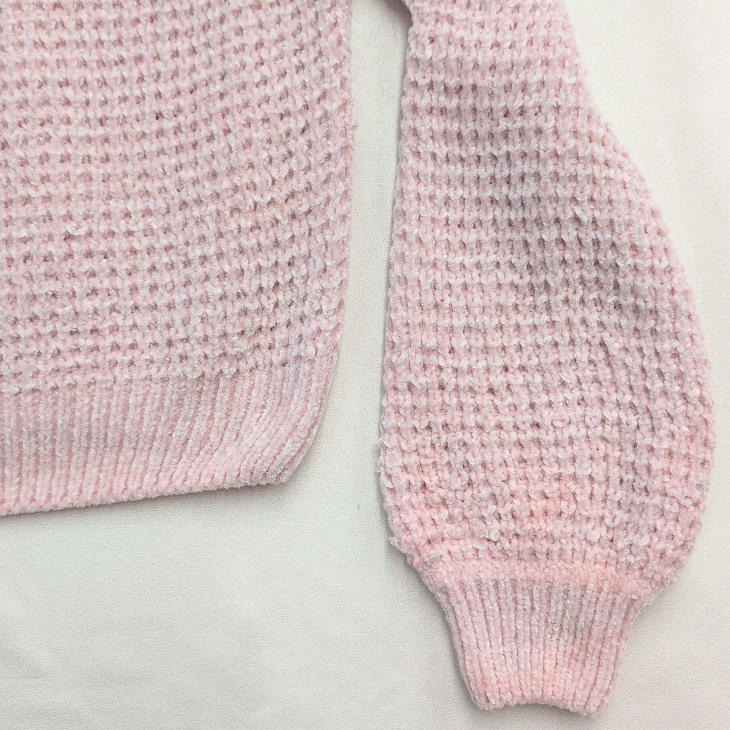 Altar’d State women’s crewneck sweater in a soft pastel pink, size XS. Waffle-style loose knit with ribbed crew neckline, cuffs, and hem. Raglan shoulder with gently ballooned sleeves creates a relaxed, on-trend silhouette; boxy, slightly shorter cut works great for layering and casual looks. Lightweight and cozy for transitional weather.