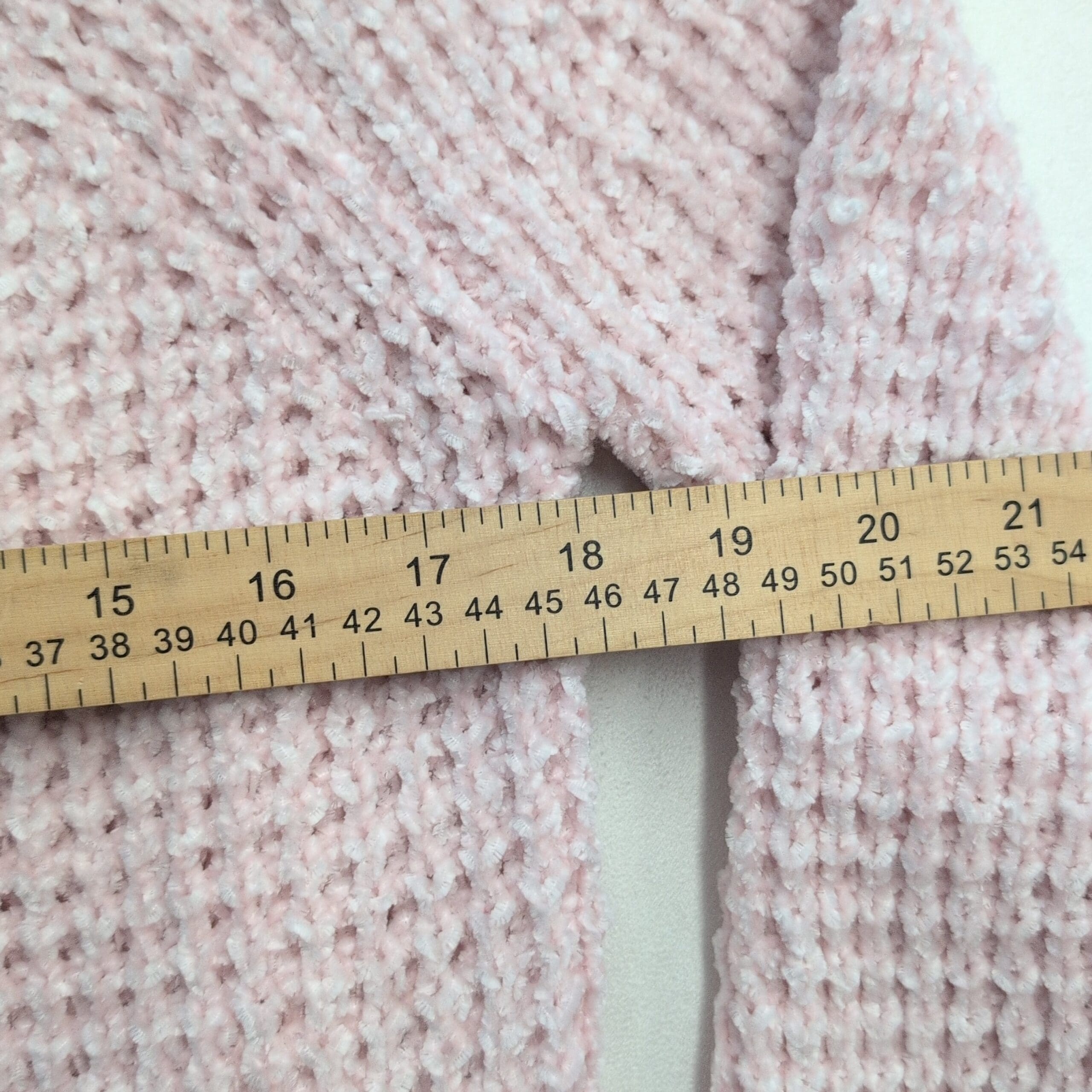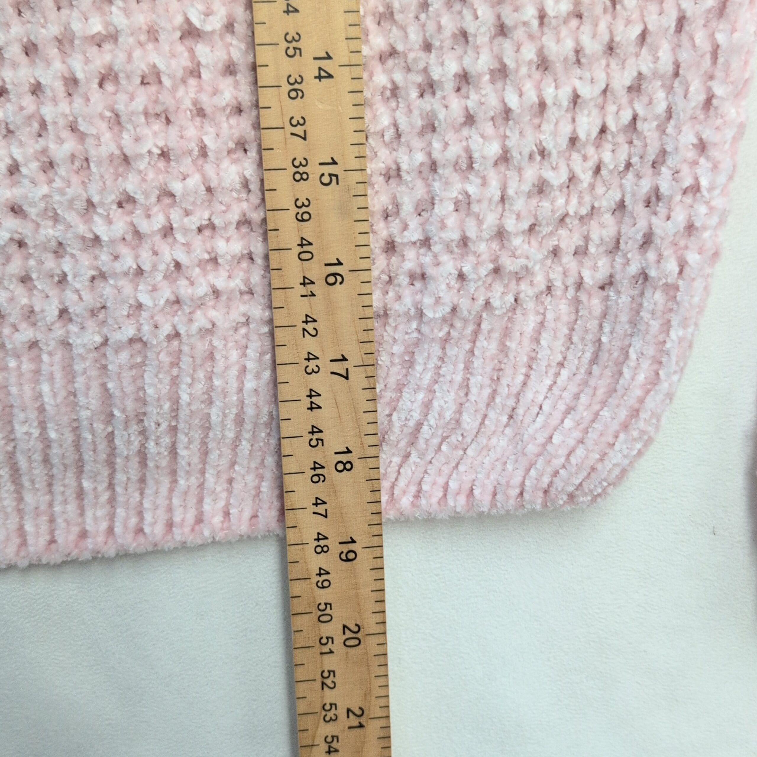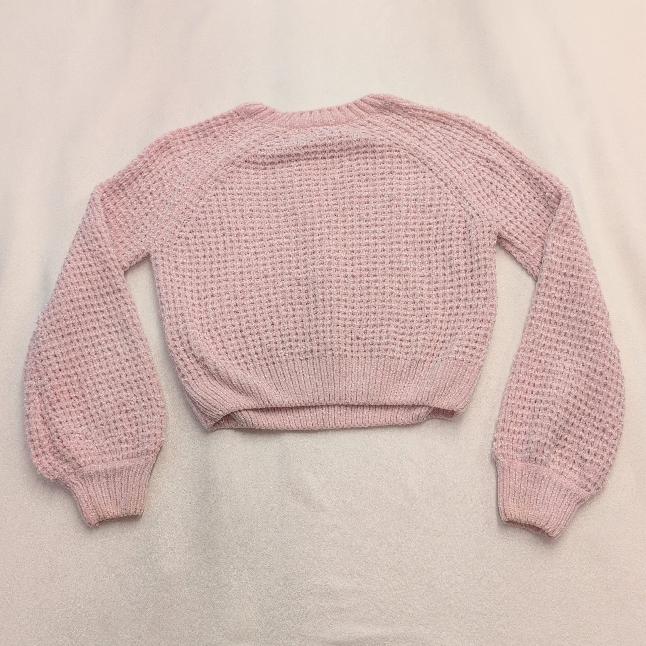 Altar’d State women’s crewneck sweater in a soft pastel pink, size XS. Waffle-style loose knit with ribbed crew neckline, cuffs, and hem. Raglan shoulder with gently ballooned sleeves creates a relaxed, on-trend silhouette; boxy, slightly shorter cut works great for layering and casual looks. Lightweight and cozy for transitional weather.