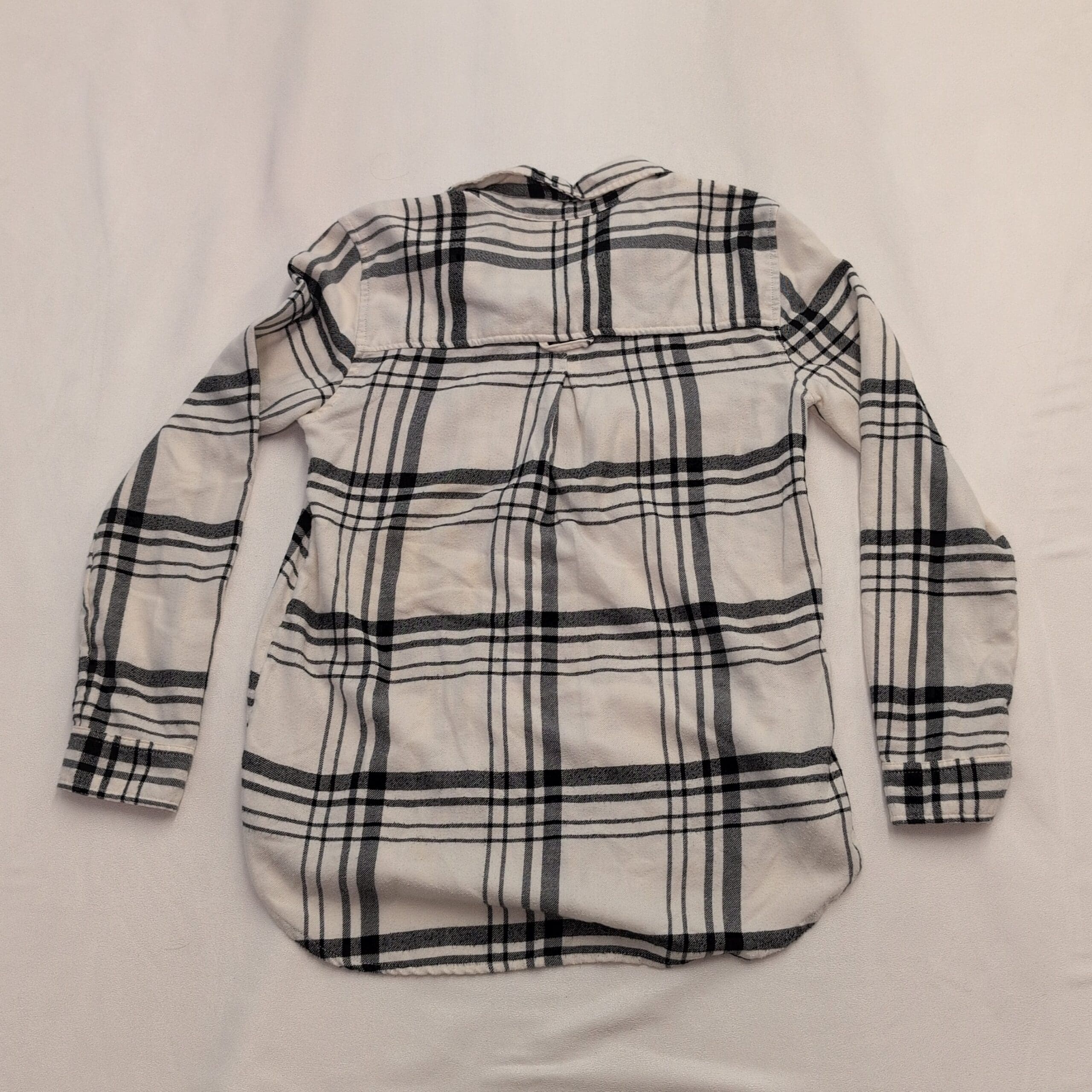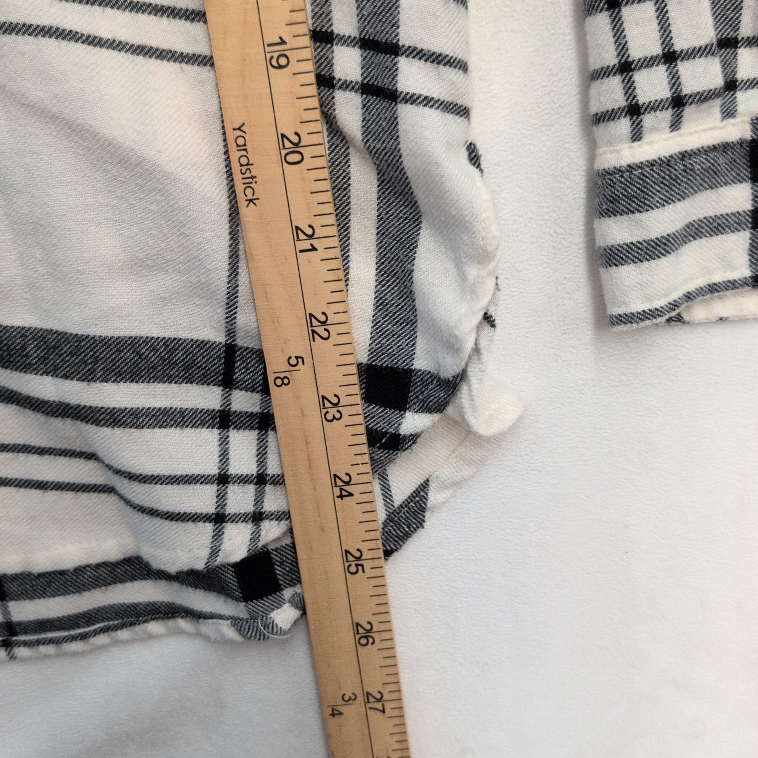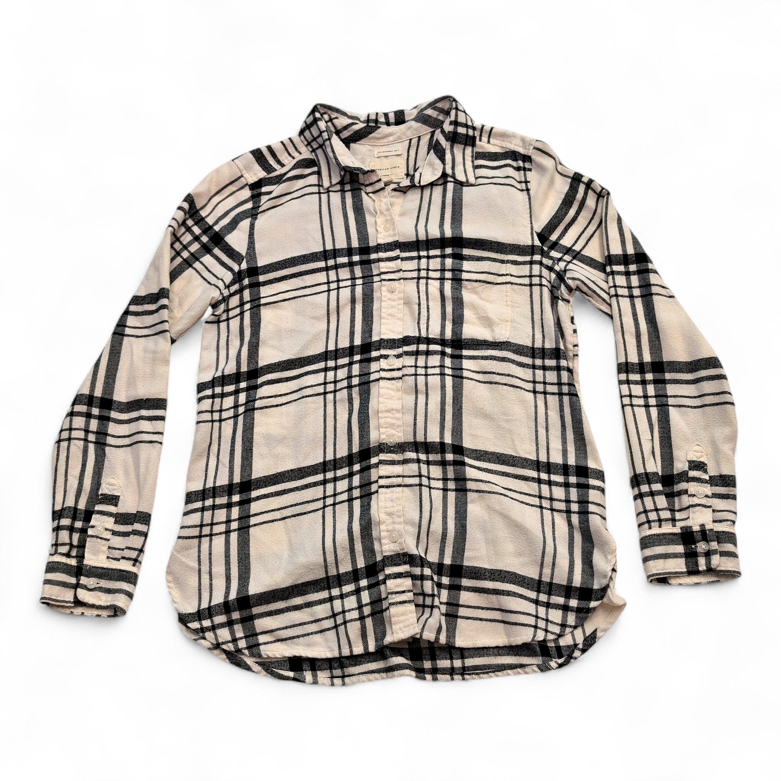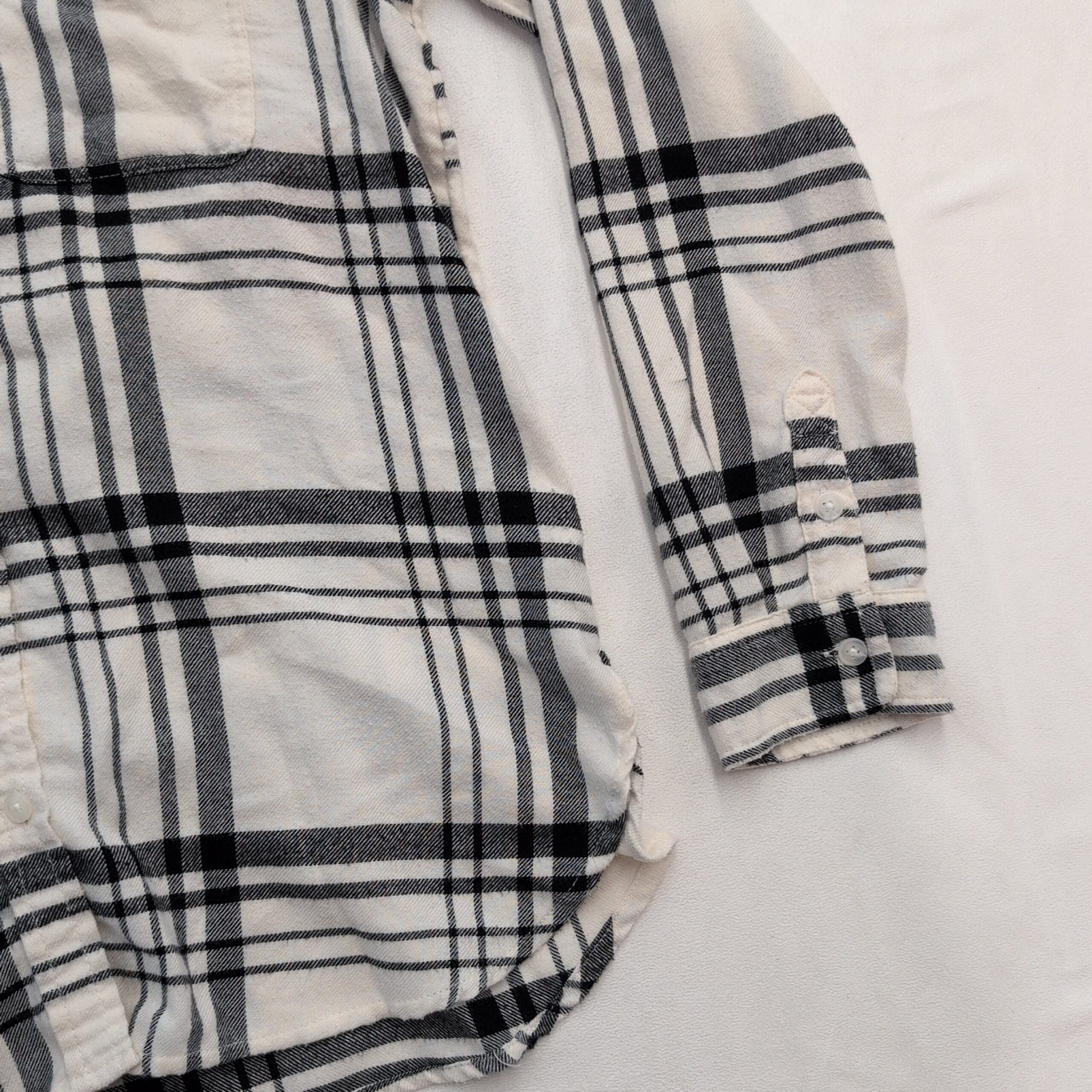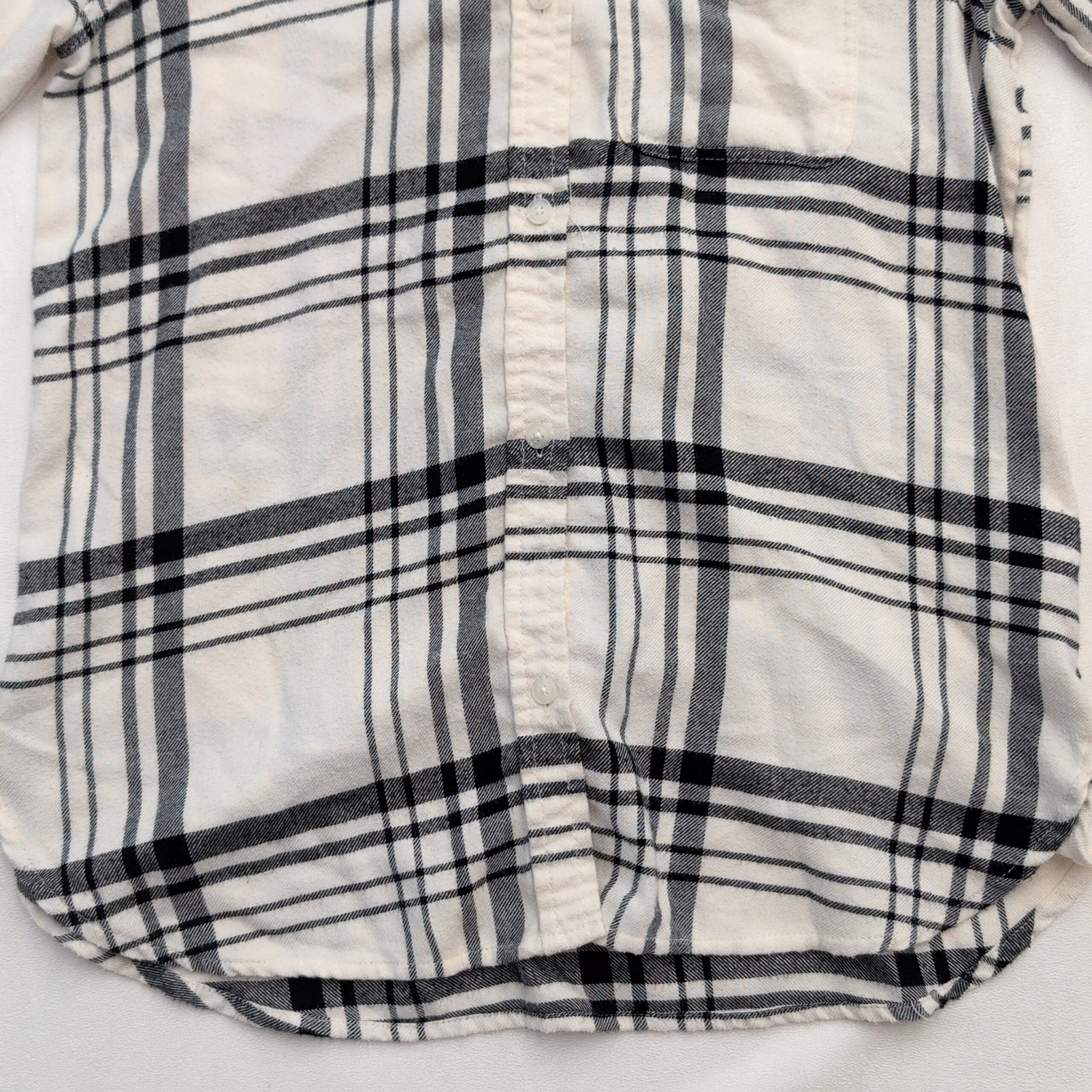 American Eagle Boyfriend Plaid Button-Down Shirt M Black/White