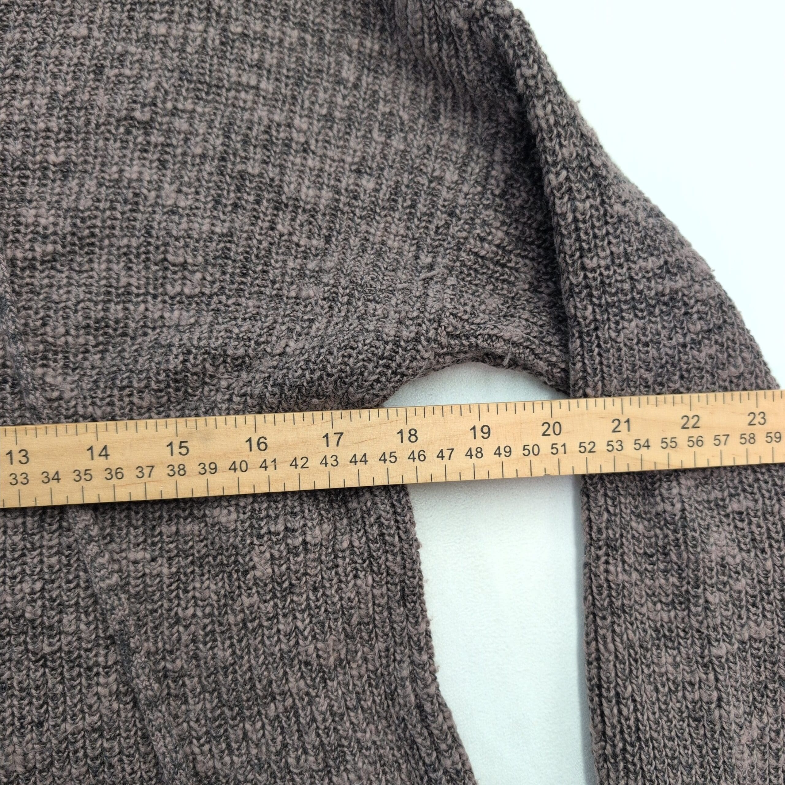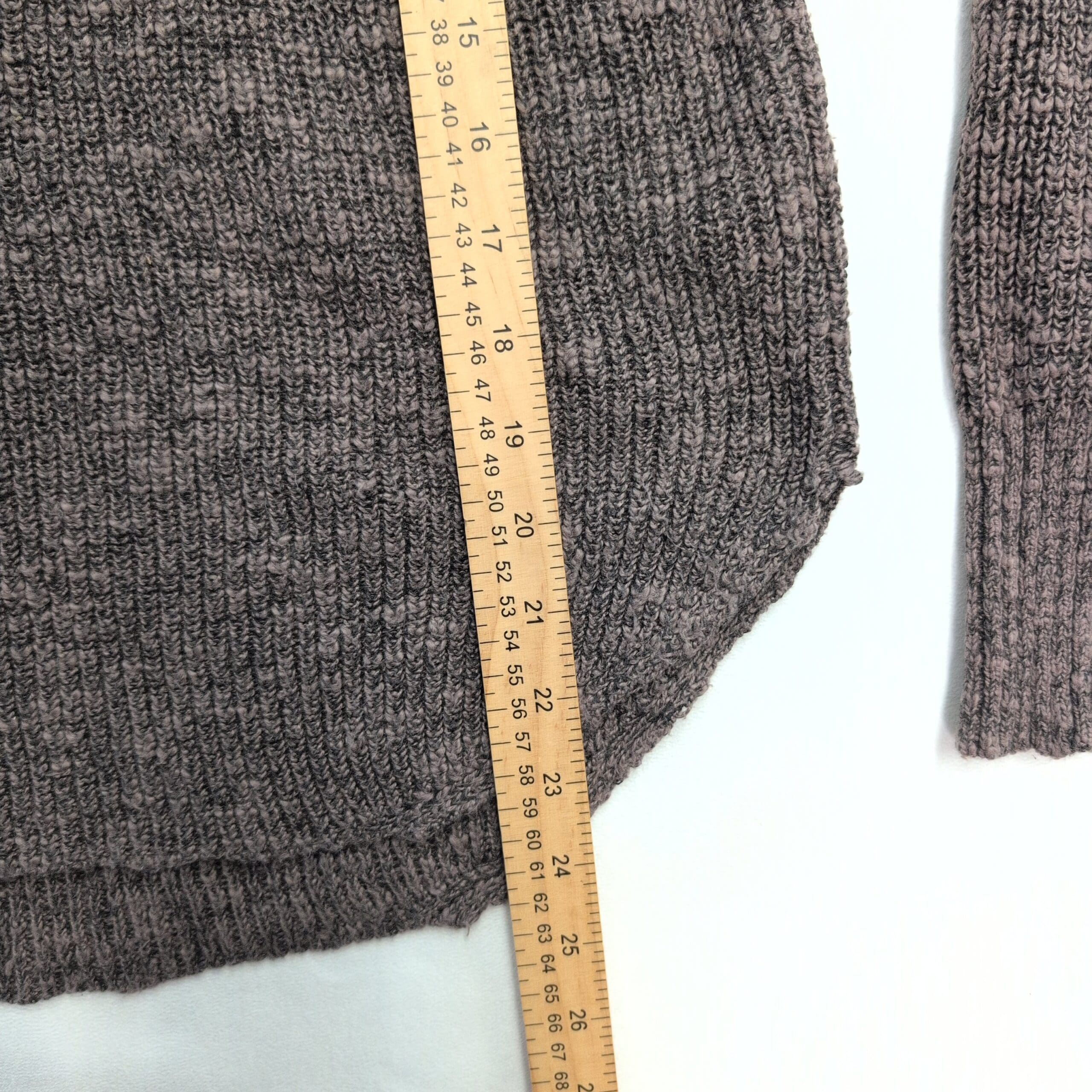 Condition: Gently used — free of major rips, tears, stains, or flaws. Shows typical wear including light pilling and minor fuzzing at cuffs and hem; neckline tie has slight stretch consistent with normal wear.