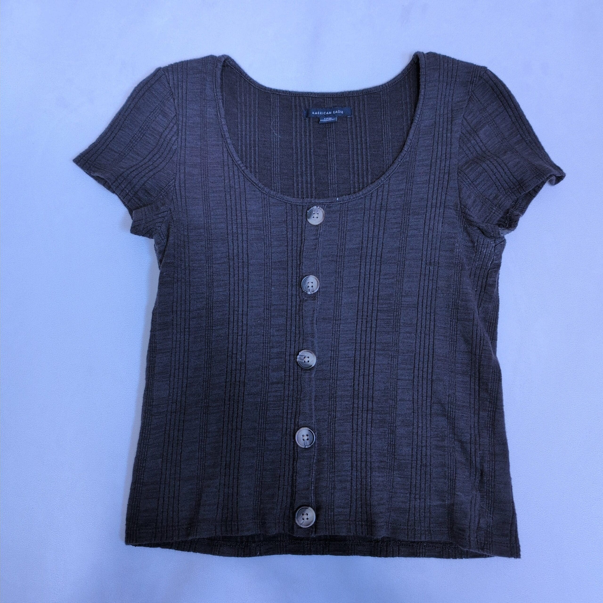#AmericanEagle #ButtonFront #RibbedTop #GrayTop #WomensSizeS #CasualChic