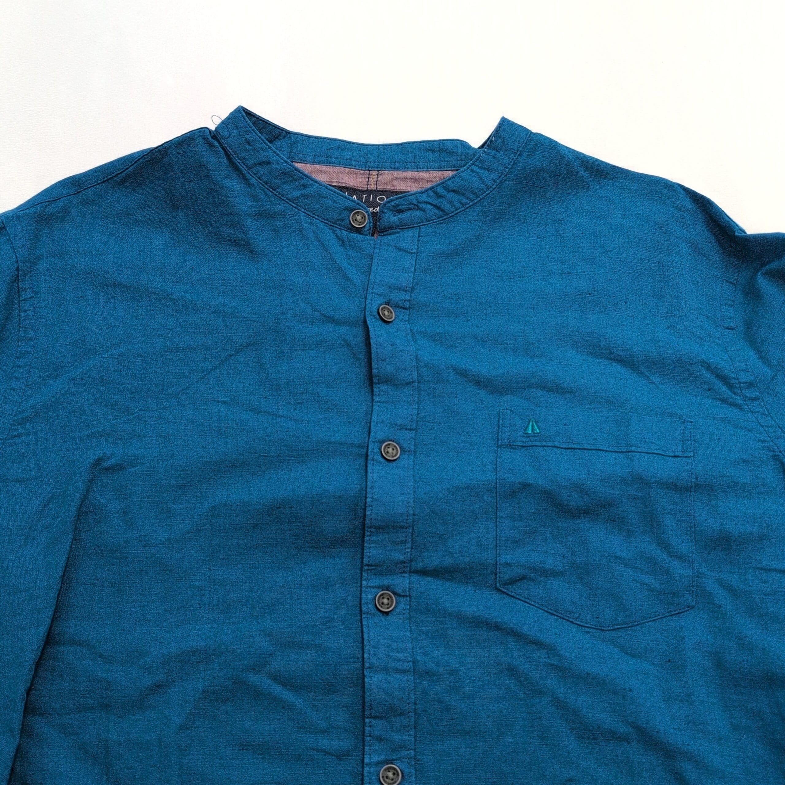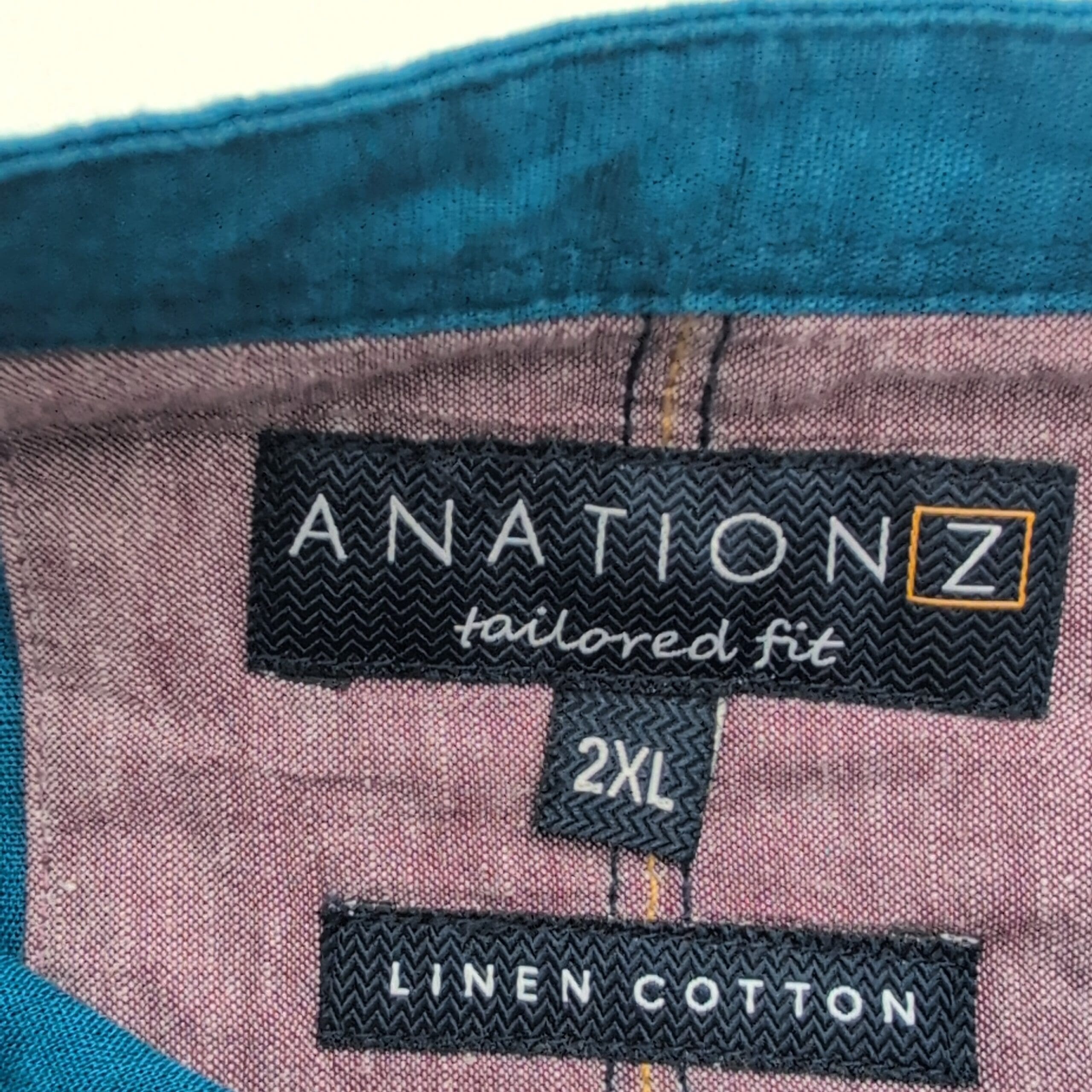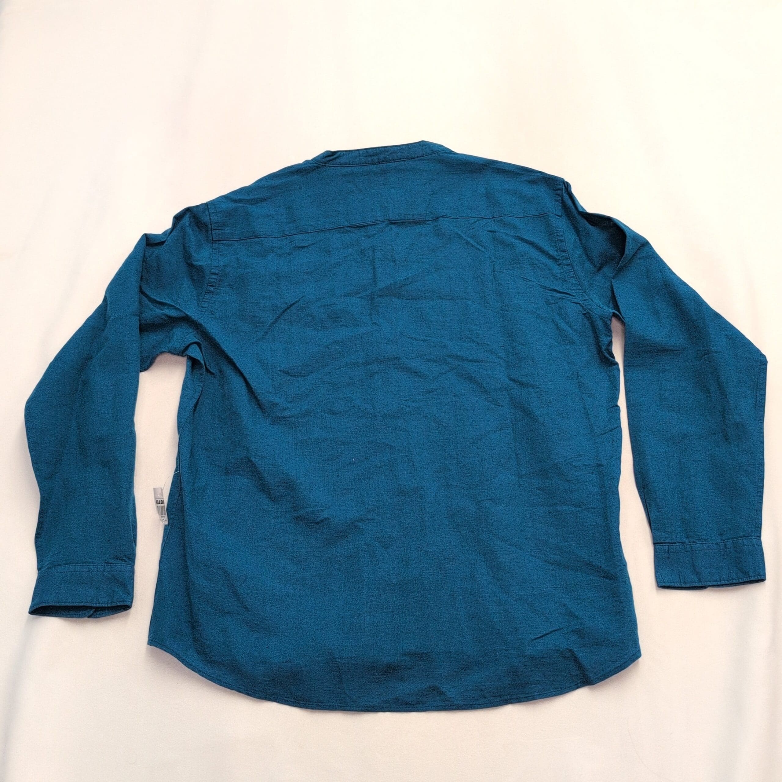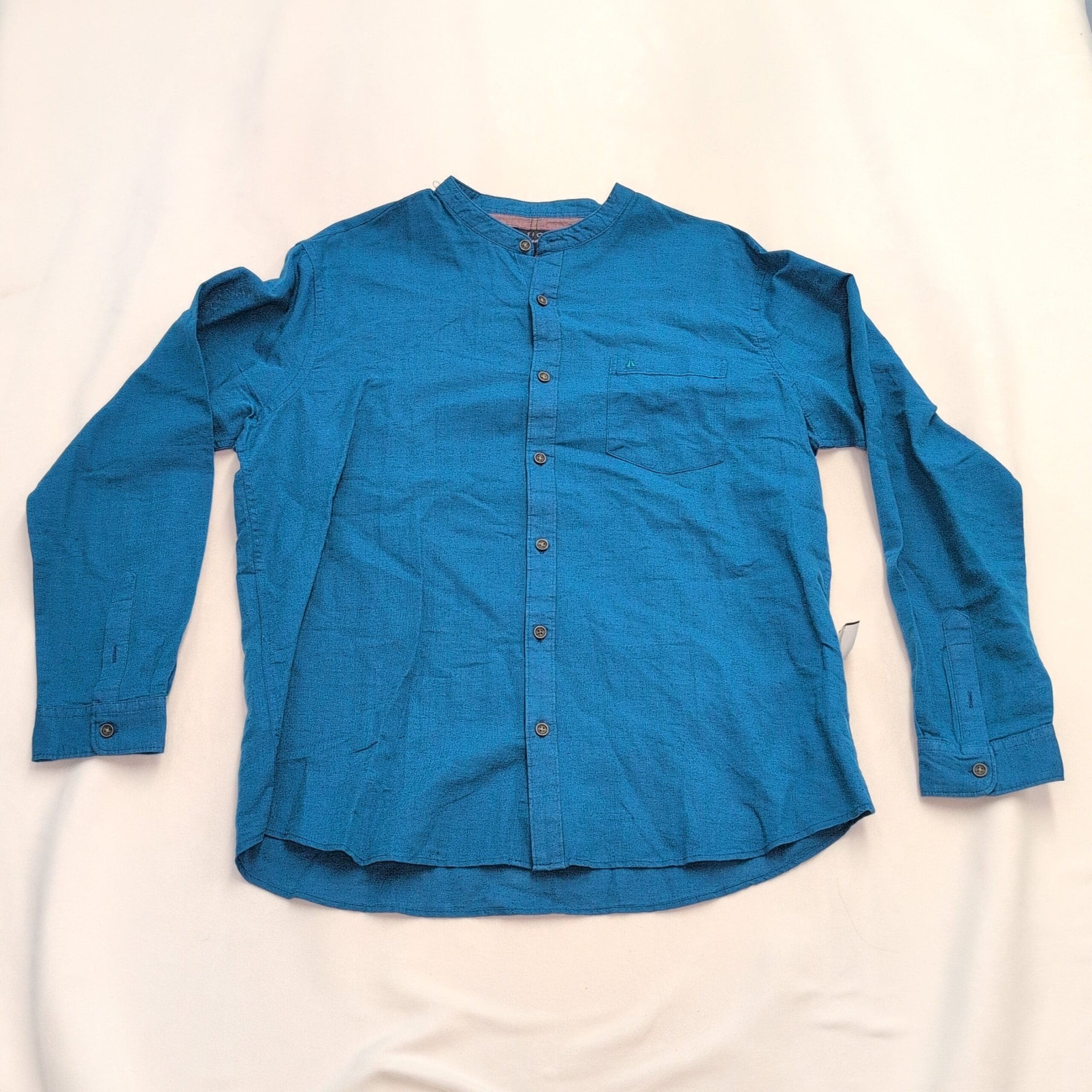 AnationZ men’s casual long-sleeve button-down in a rich blue. Features a band collar, full button front, single chest pocket, and a subtle textured weave for added interest. Lightweight and versatile for everyday or smart-casual looks. Size: XXL (Big & Tall). New without tags and free of major rips, tears, stains, or flaws; unworn condition—please see photos for color and detail.