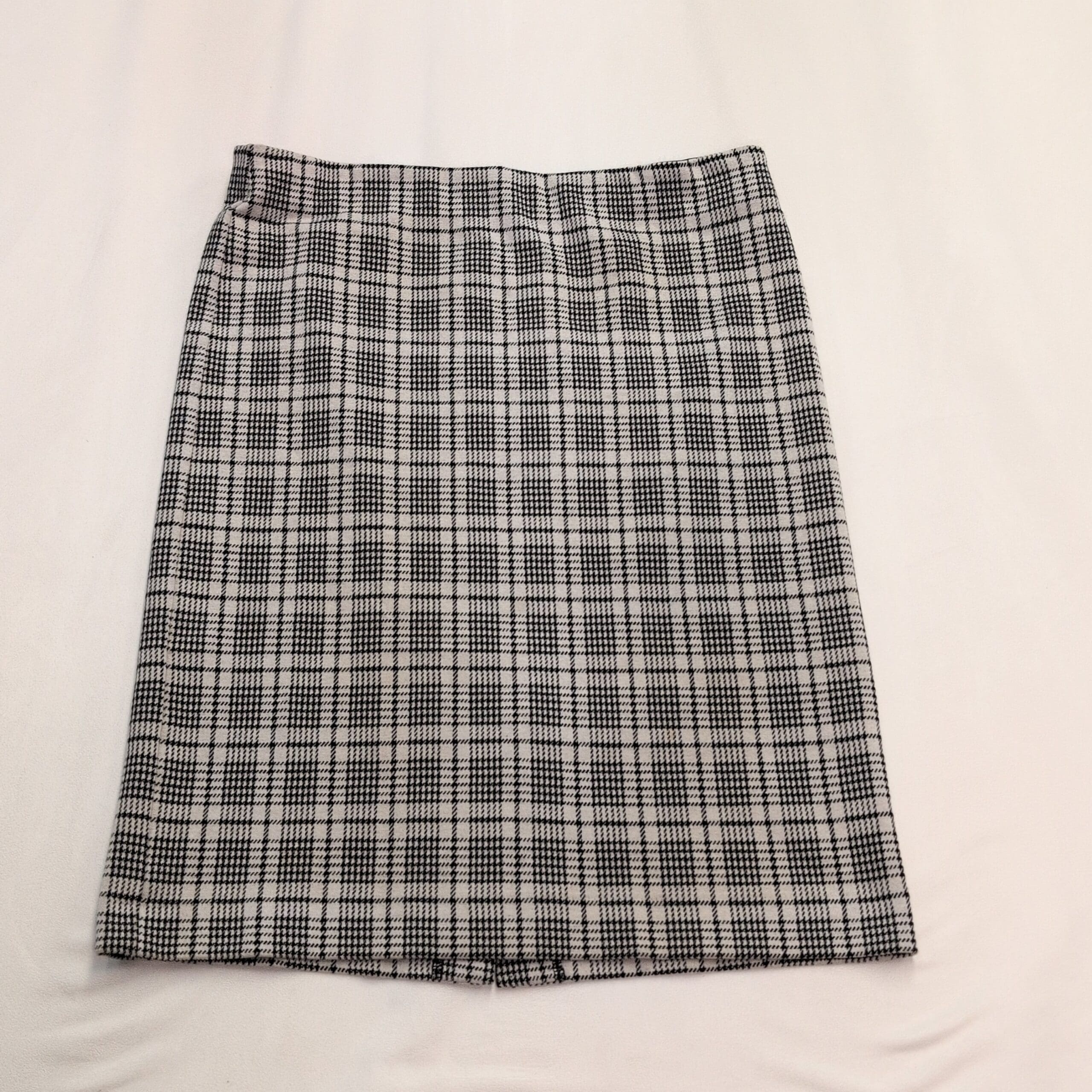 Ann Taylor Black & White Plaid Midi Skirt Size L