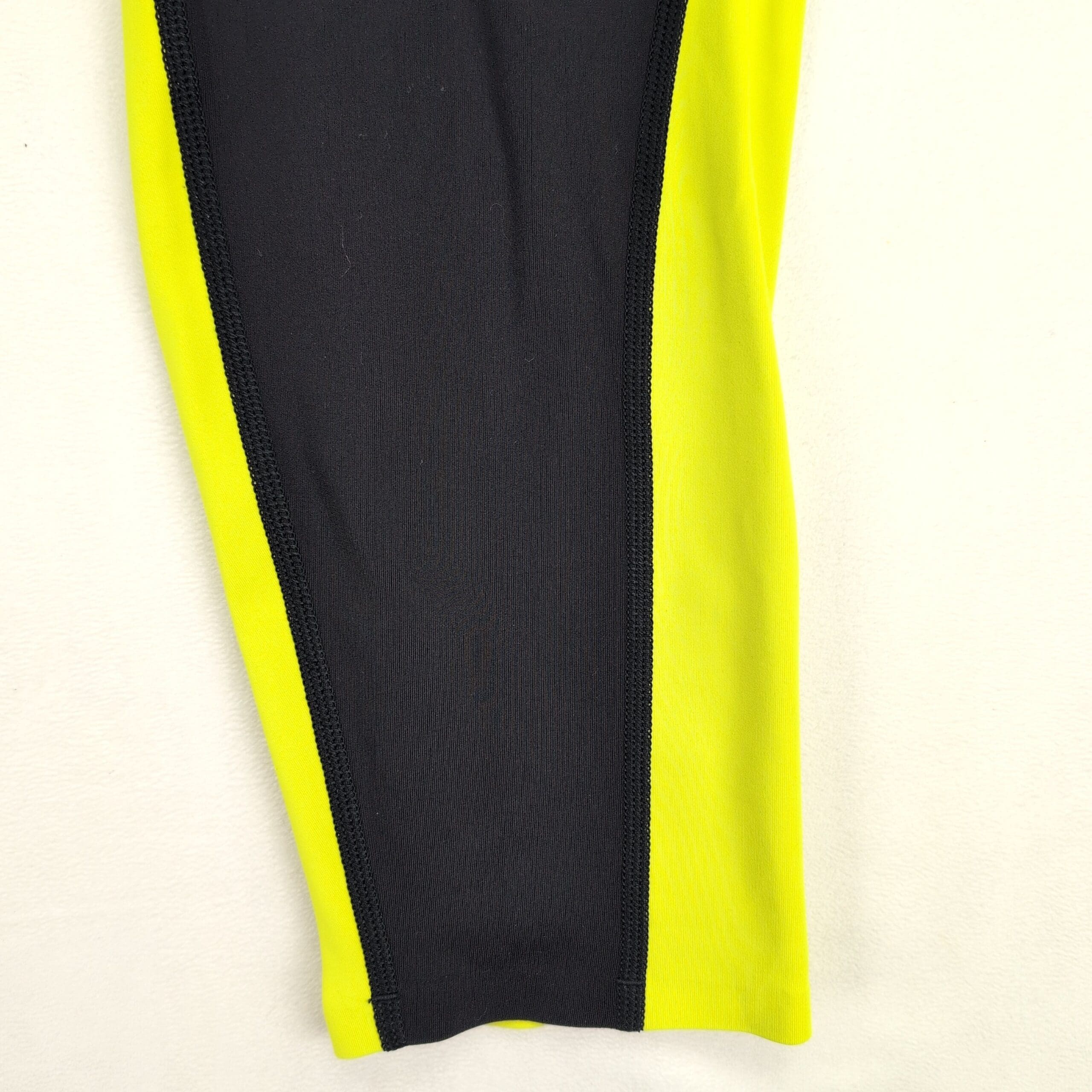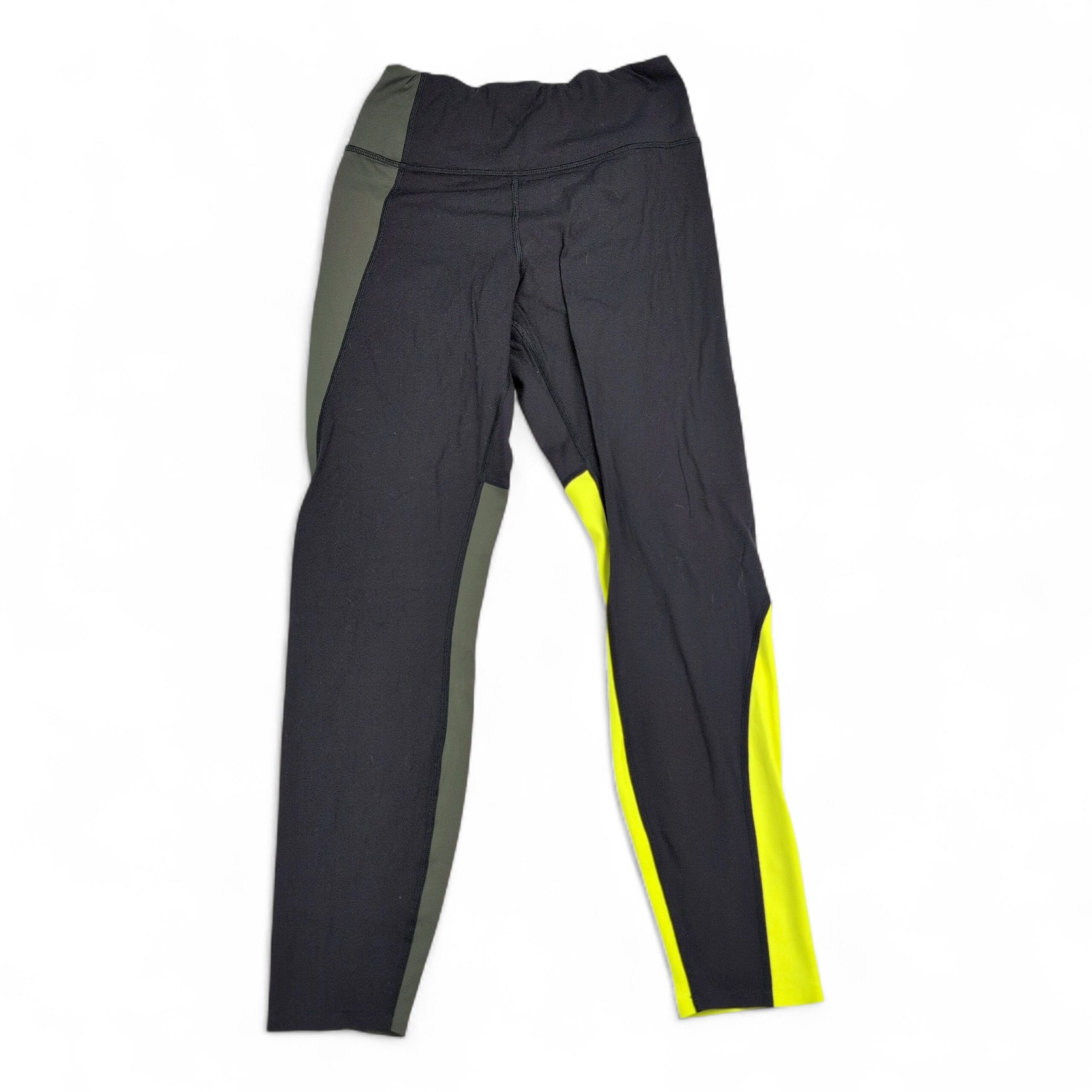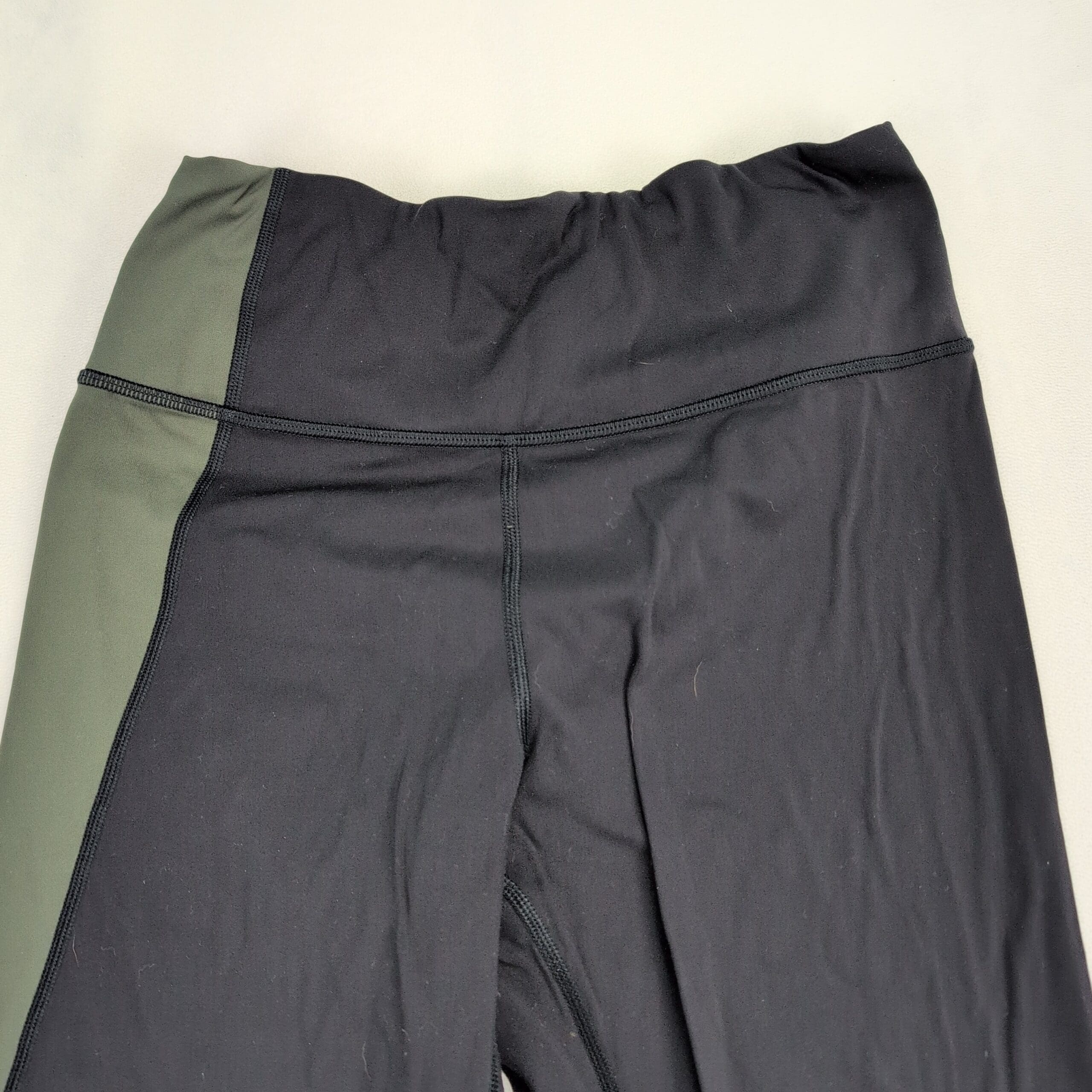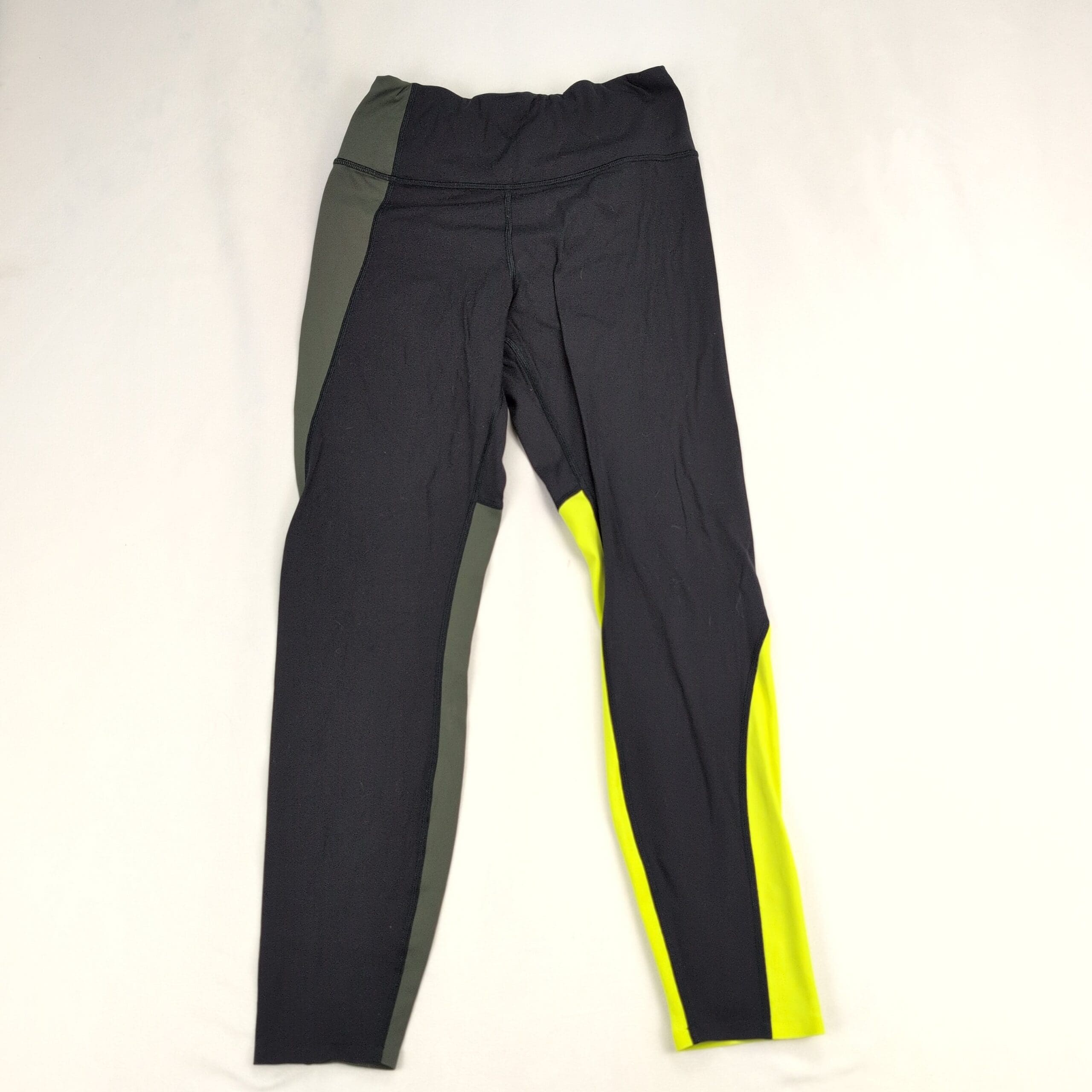 Excellent used condition Athleta women’s leggings, size M. Black colorblock design with olive side panels and neon yellow lower-leg accents. Features a drawstring elastic waistband for a secure, adjustable fit and a high-rise silhouette. Stretchy, supportive performance style great for running, studio workouts, yoga, or everyday athleisure. Free of major rips, tears, stains, or flaws; typical light wear may be present—see photos for color and condition details.
