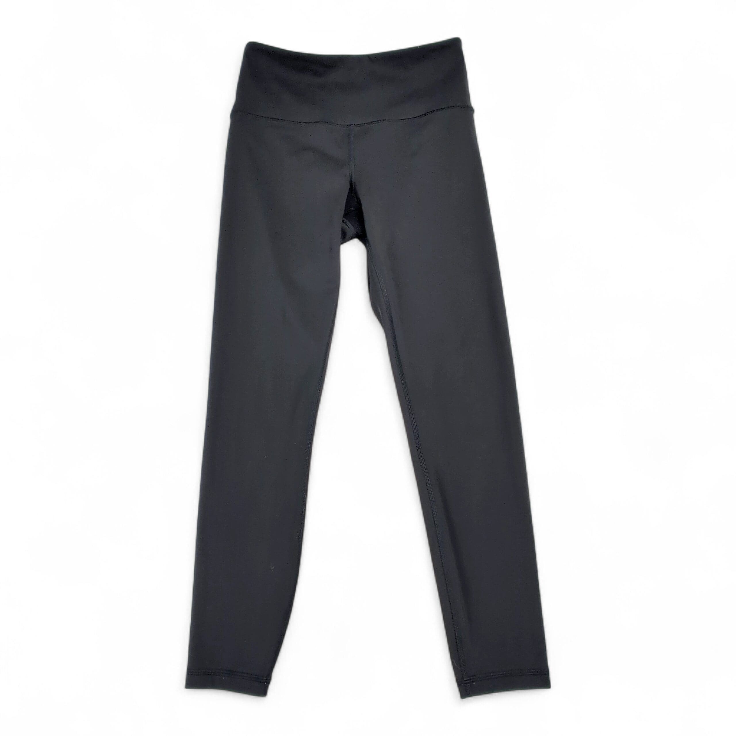 Athleta women’s full-length leggings in size XS — classic black. Features a wide fold-over high-rise waistband for comfortable coverage and a smooth, streamlined silhouette. Stretchy performance fabric offers four-way stretch and supportive hold, great for workouts, yoga, or everyday wear. Excellent used condition; free of major rips, tears, stains, or flaws. Typical light wear may be present — please review photos for details.