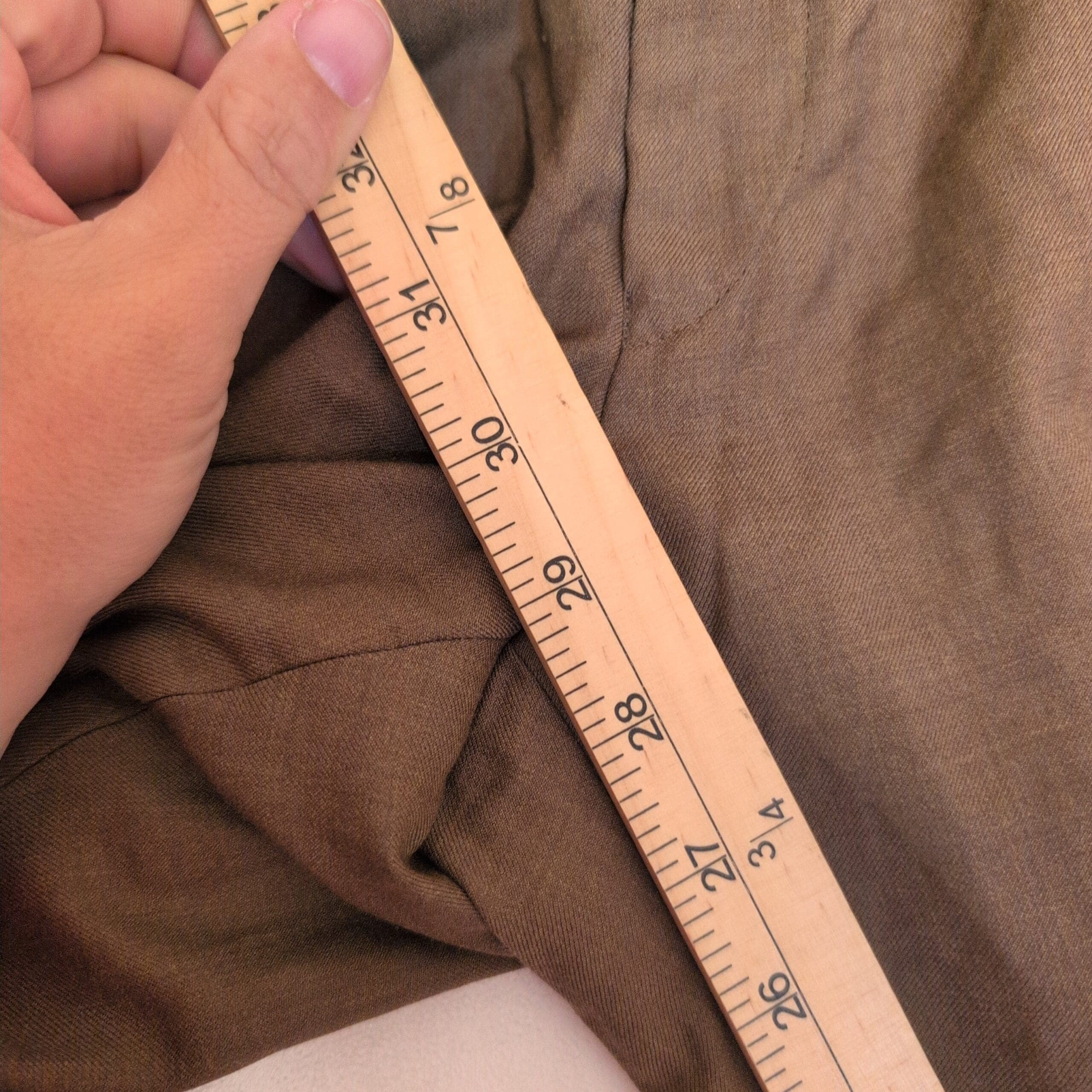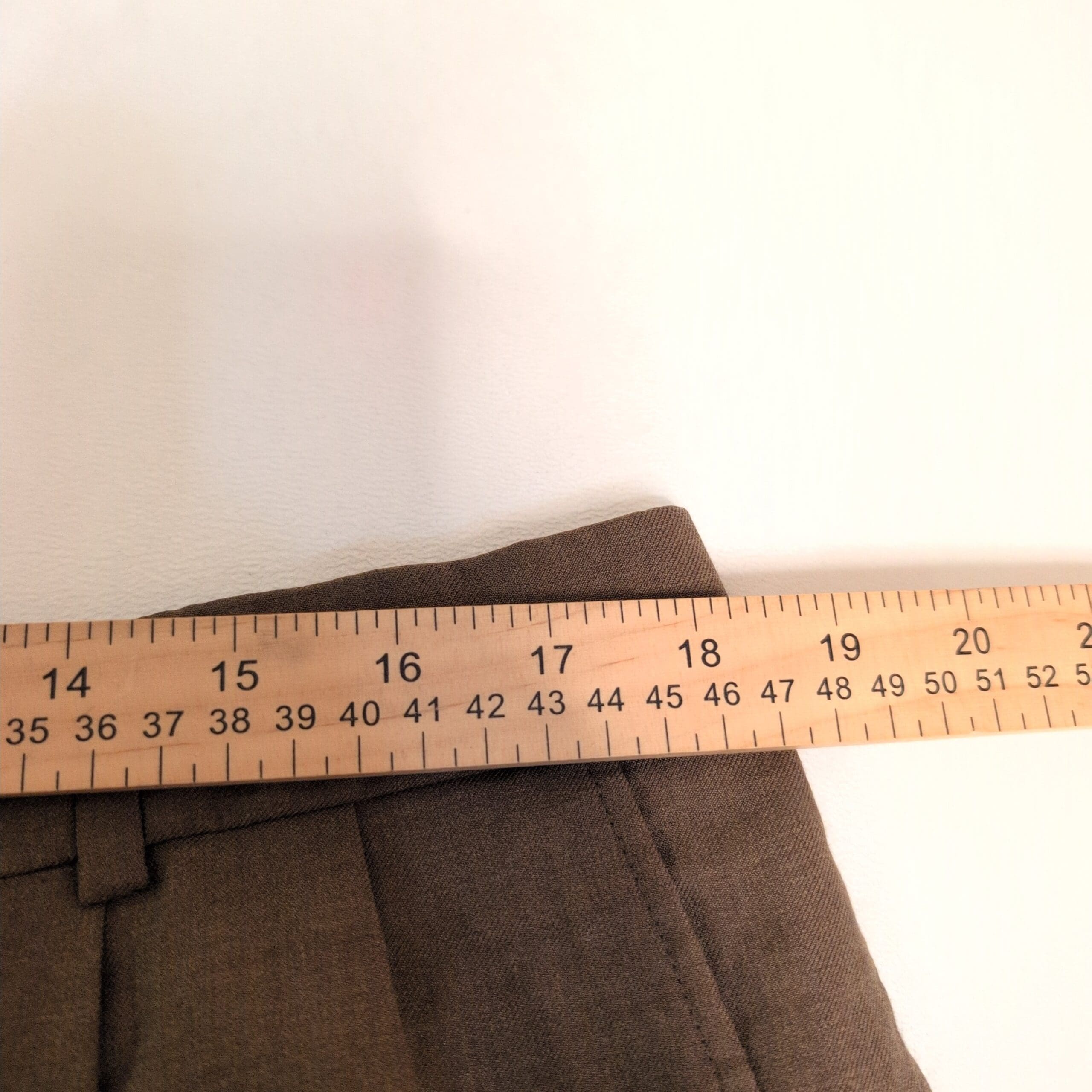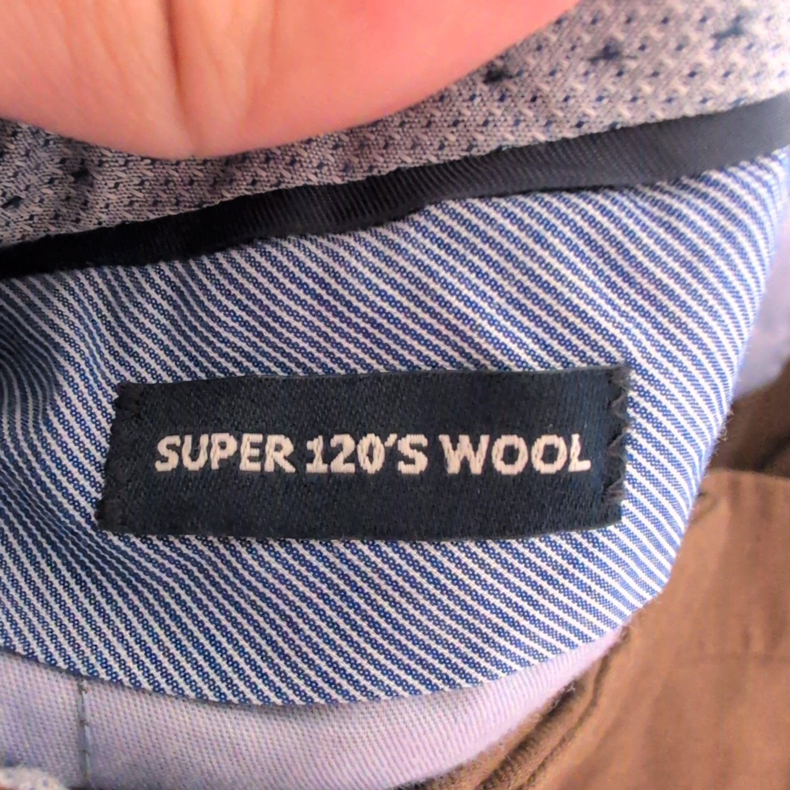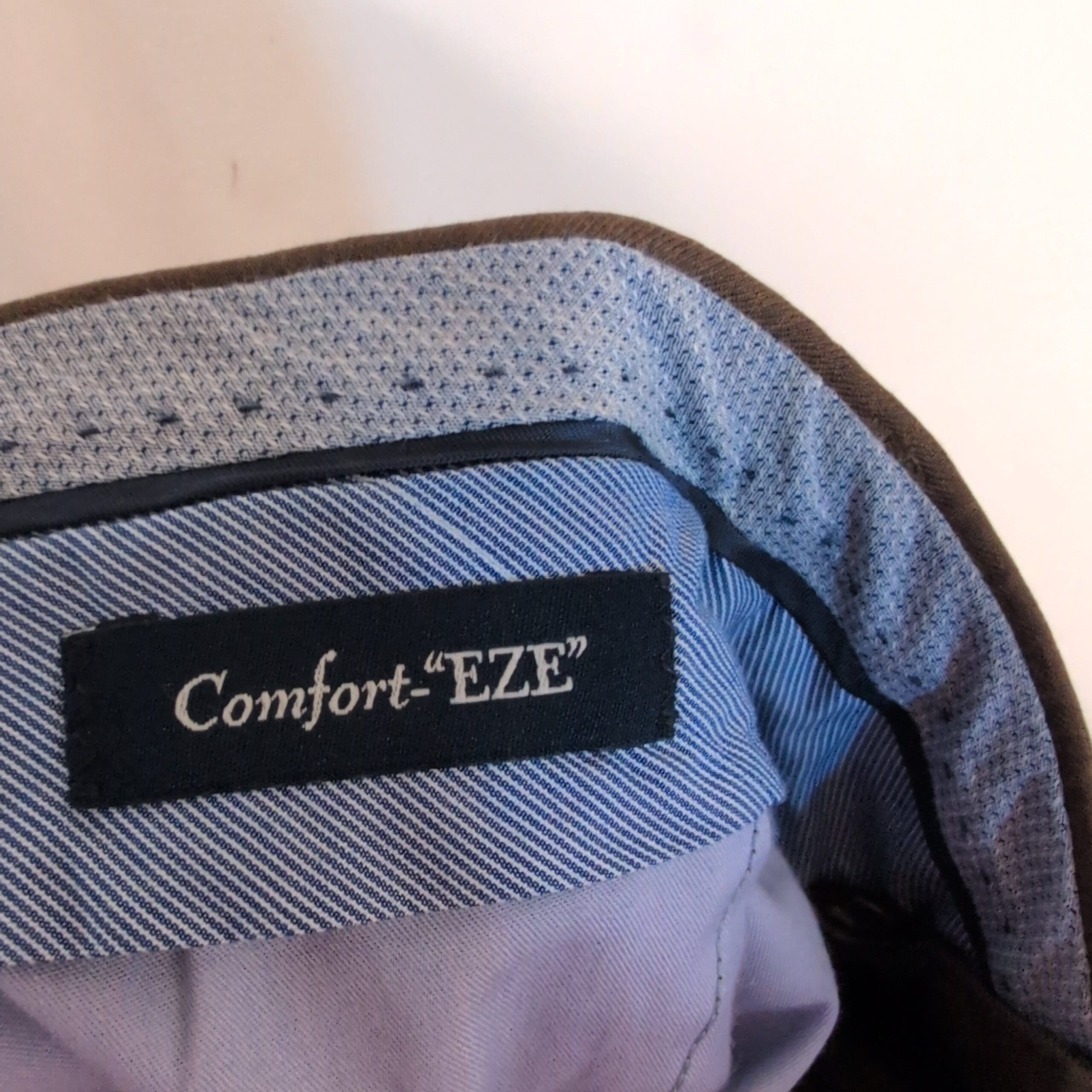 Classic Ballin men’s brown dress pants in waist 38. 100% wool fabric with a tailored, slightly relaxed silhouette and front pleats. Features belt loops, zip fly with button closure, slanted side pockets and a welt back pocket. Cuffed hem as shown. Gently used — free of major rips, tears, or stains; may show light creasing and normal wear consistent with prior use. Perfect for office or smart-casual occasions.