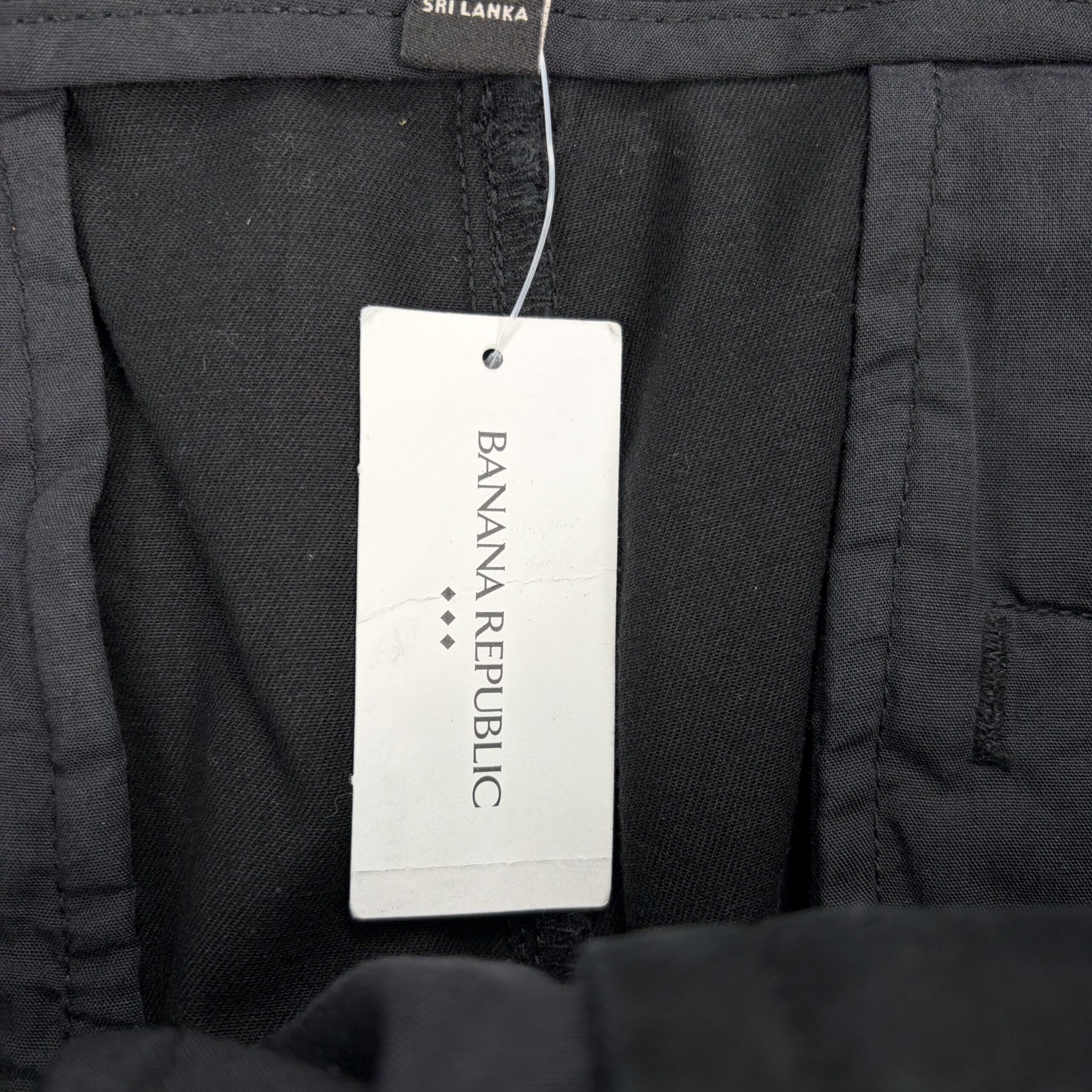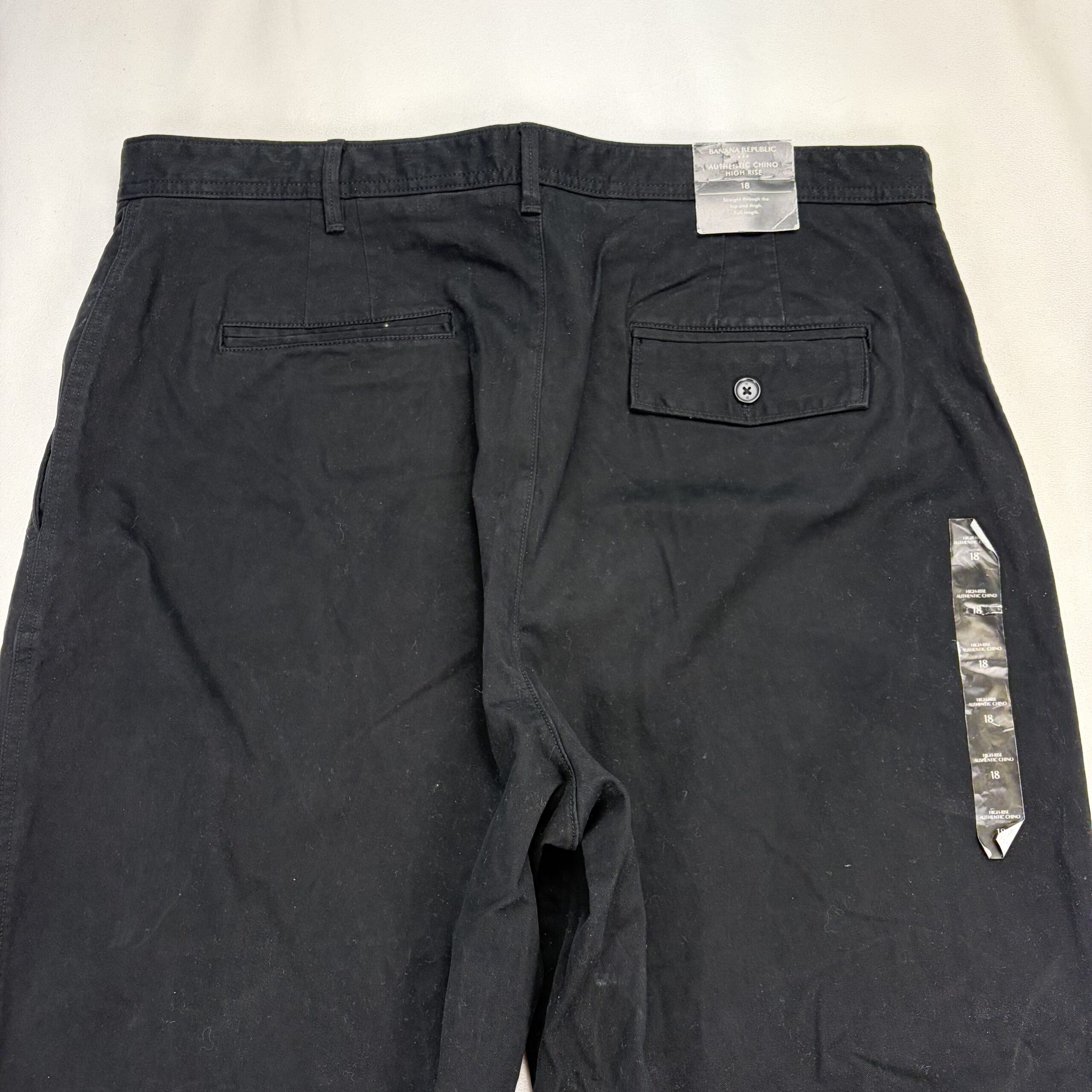 Black Banana Republic straight-leg pants in size 18 (Plus). Classic straight-leg silhouette with belt loops, button & zip closure and roomy front pockets. Versatile piece that dresses easily for work or casual wear. Excellent used condition — no rips, tears, or stains; light creasing and normal wear consistent with gentle use. See photos for details.