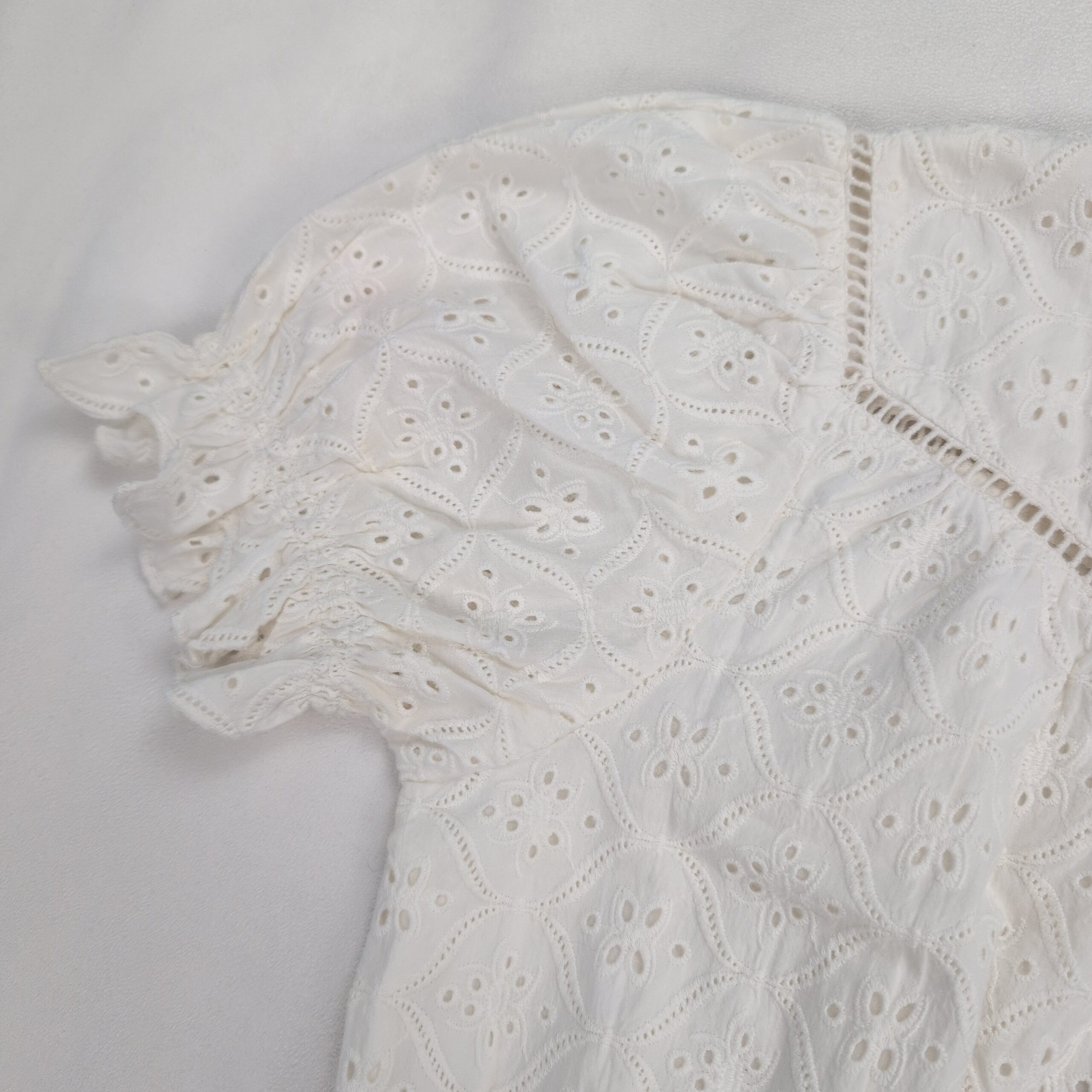 Ba&sh White Broderie Anglaise Eyelet Mini Dress Puff Sleeves S