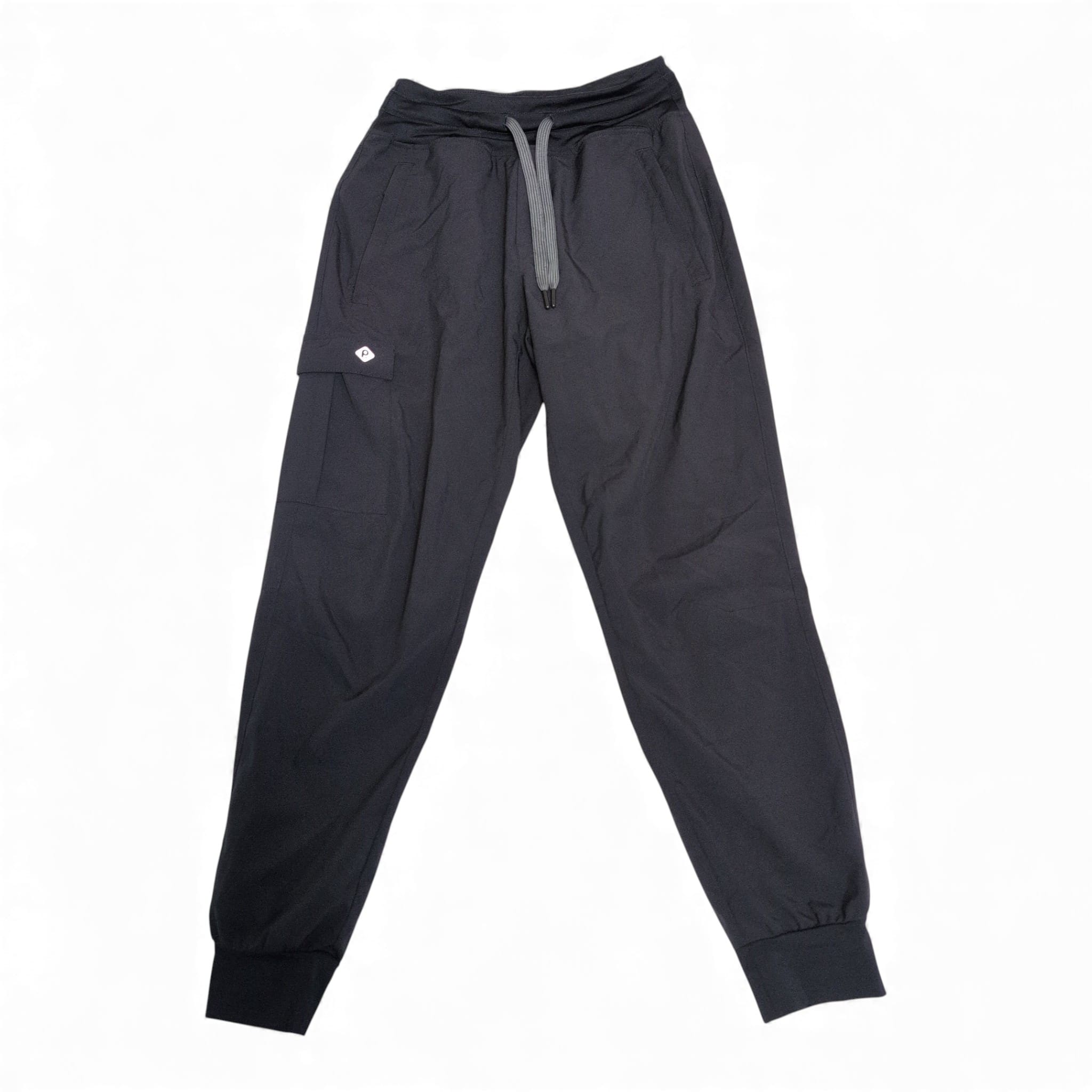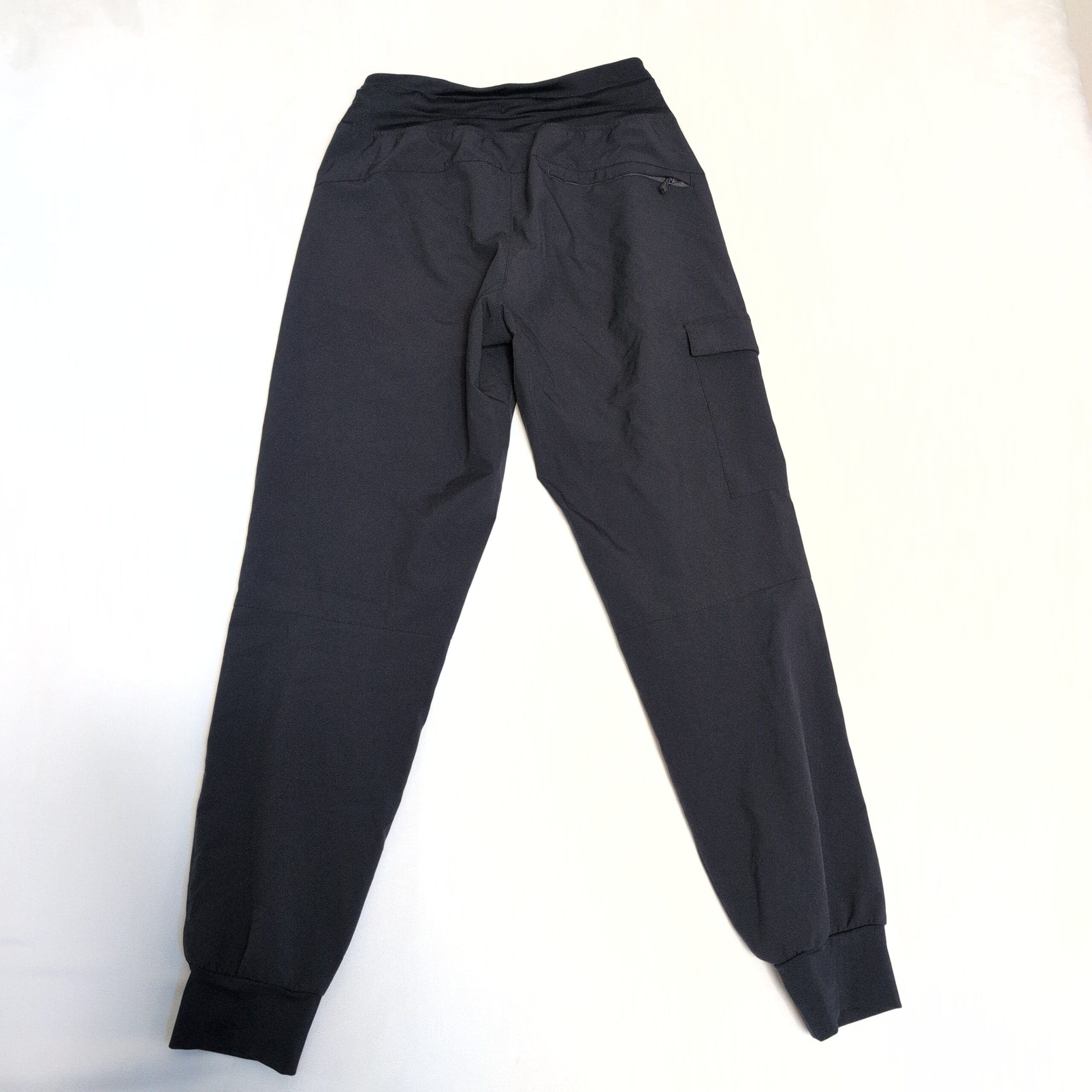 Rla Ged women’s blue cargo joggers in size XS. Features a drawstring waist, two front hand pockets, a flap cargo pocket, and ribbed elastic ankle cuffs for a tapered fit. Lightweight, versatile track-style pants ideal for everyday wear, travel, or casual workouts. Please refer to photos for fit and condition.