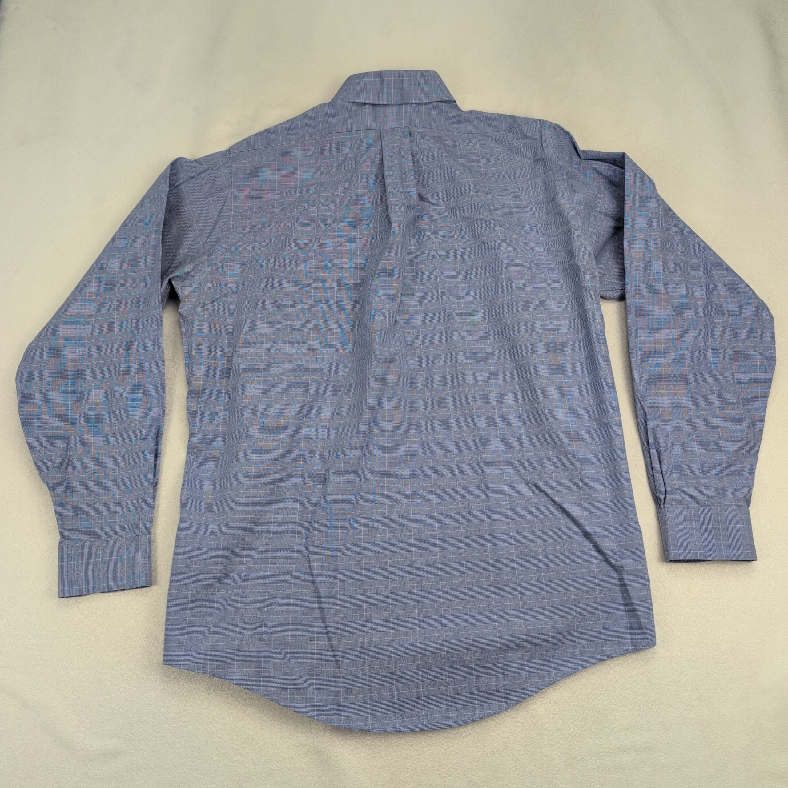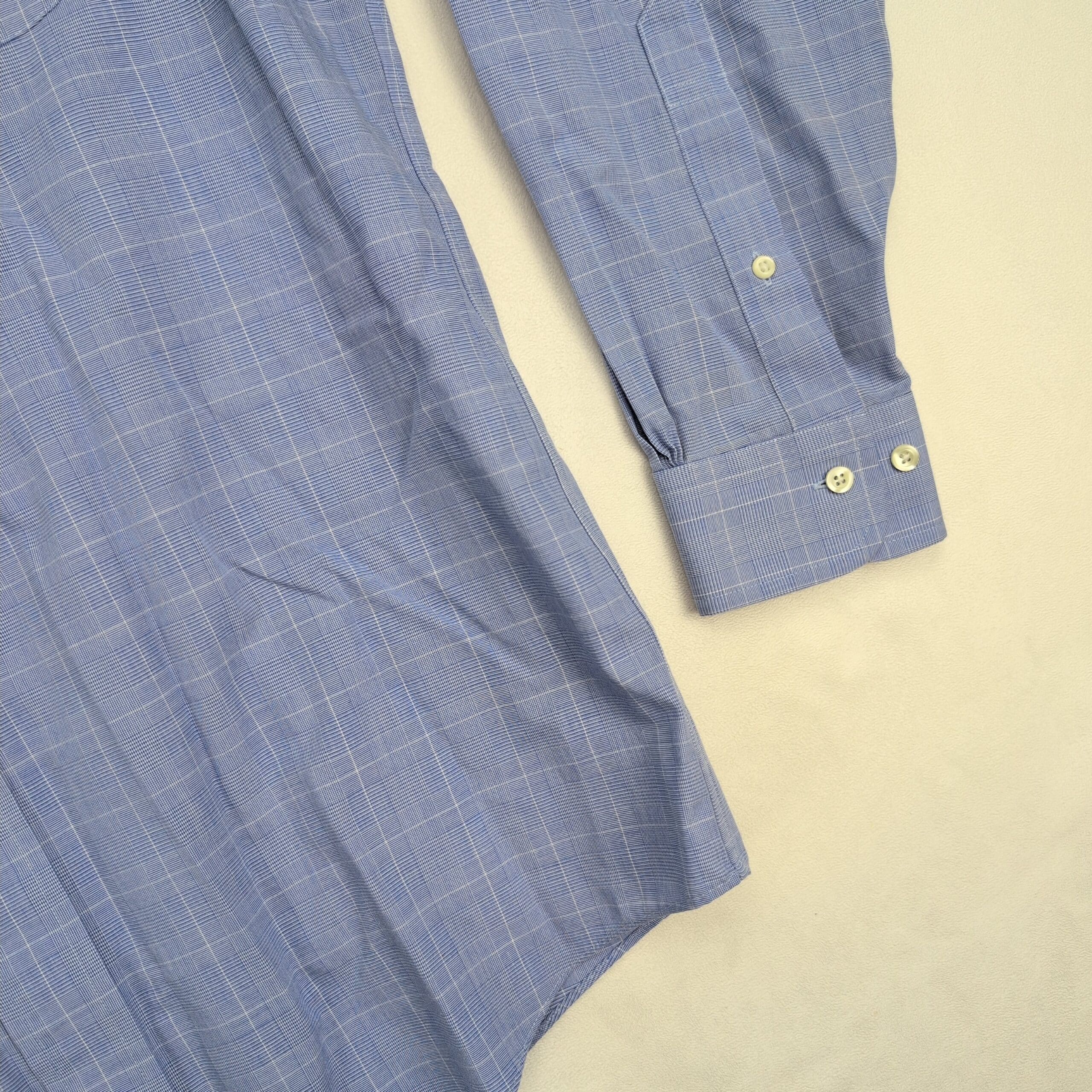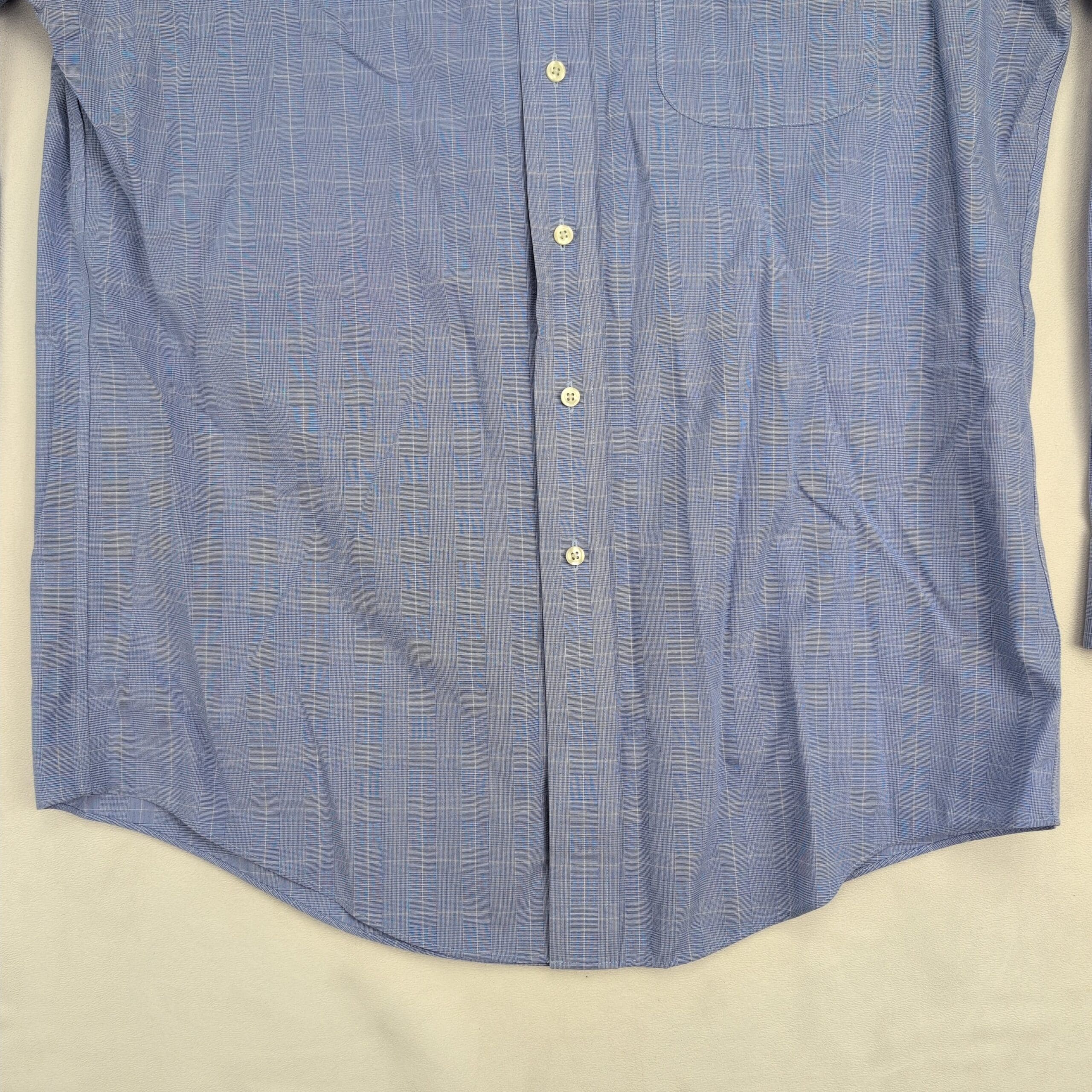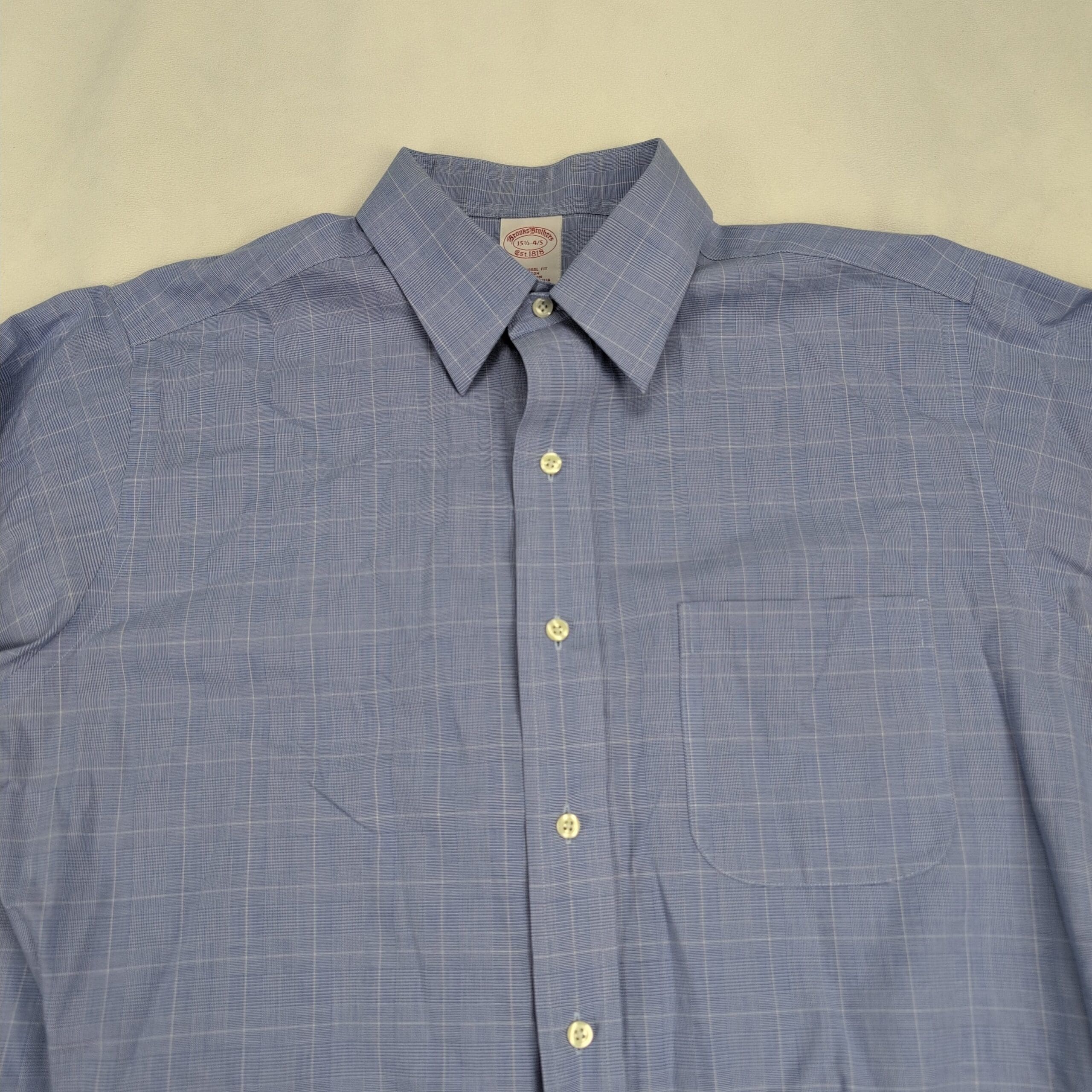 Brooks Brothers men’s dress shirt, Neck 15.5 — Traditional fit. Classic blue windowpane pattern with a point collar, full button front, long sleeves with button cuffs, and a single chest pocket. Comfortable, timeless office or dress wardrobe staple. Excellent used condition — free of major rips, tears, stains, or flaws; typical light wear may be present. See photos for details.