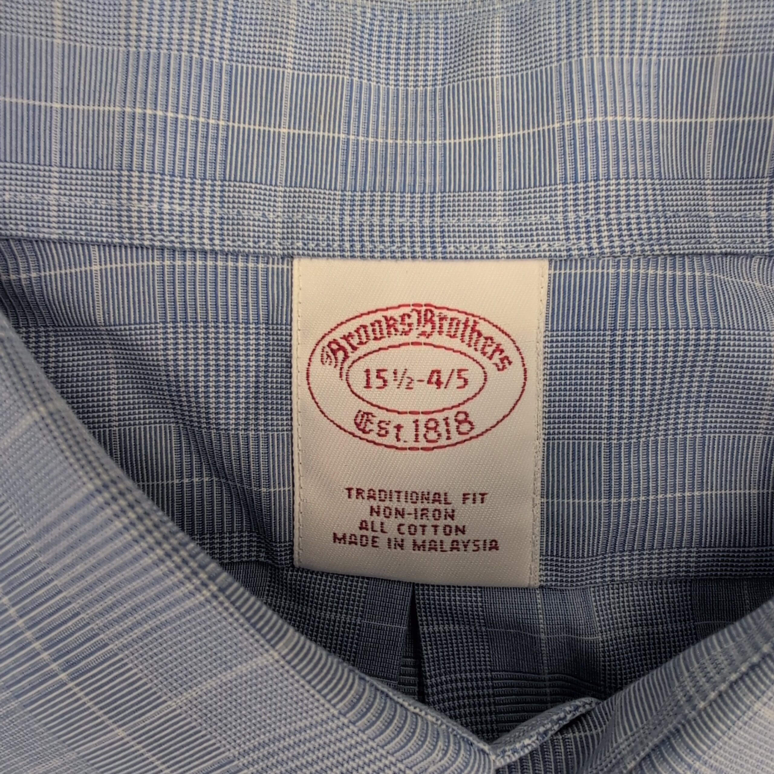 Brooks Brothers Men’s Dress Shirt 15.5 Traditional Fit Blue Windowpane