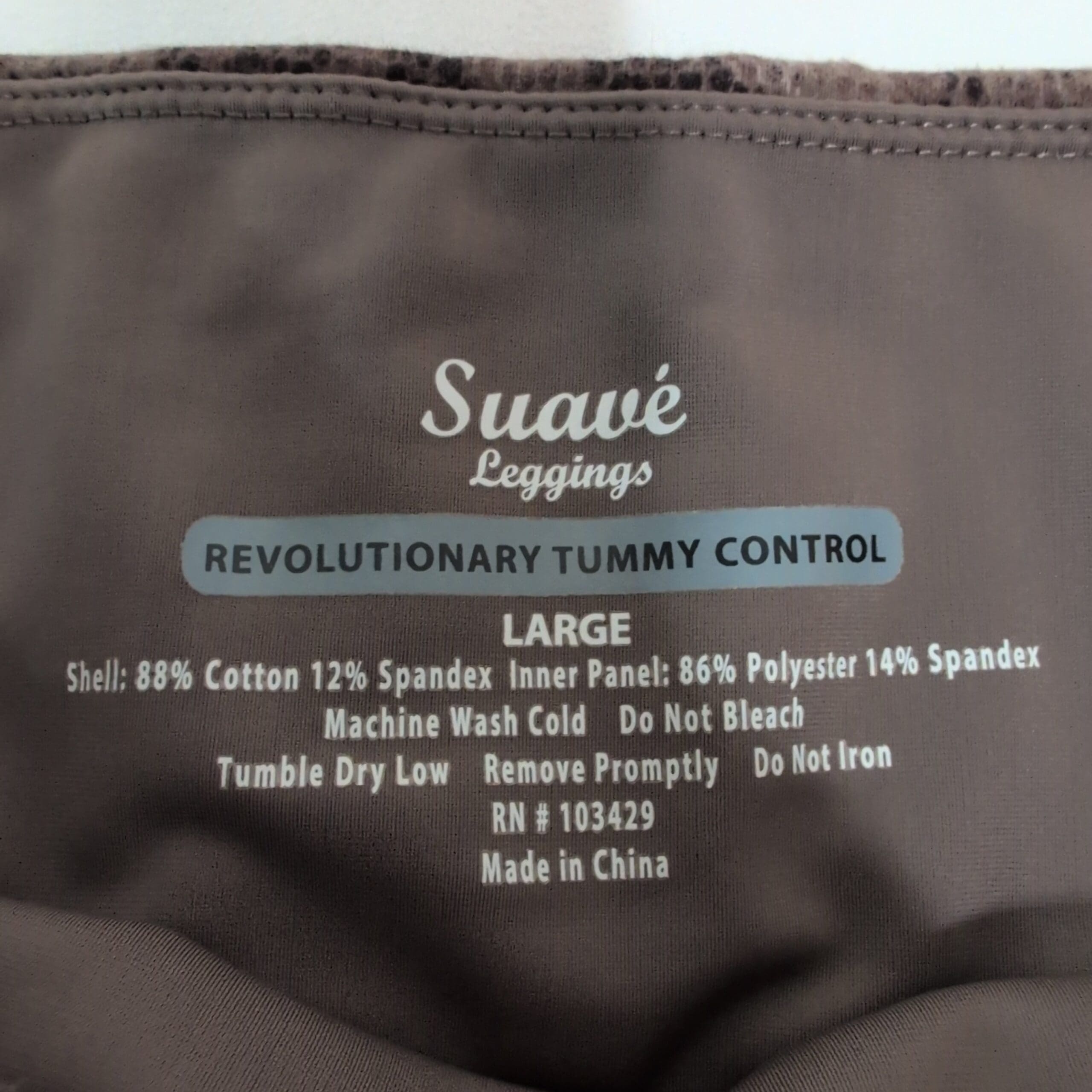 Suave women’s full-length leggings in a brown snakeskin print. Size L (standard) with comfortable stretch for everyday wear — versatile for casual, athleisure, or layered looks. Smooth waistband creates a clean silhouette and the neutral tones pair easily with jackets, tees, and boots.