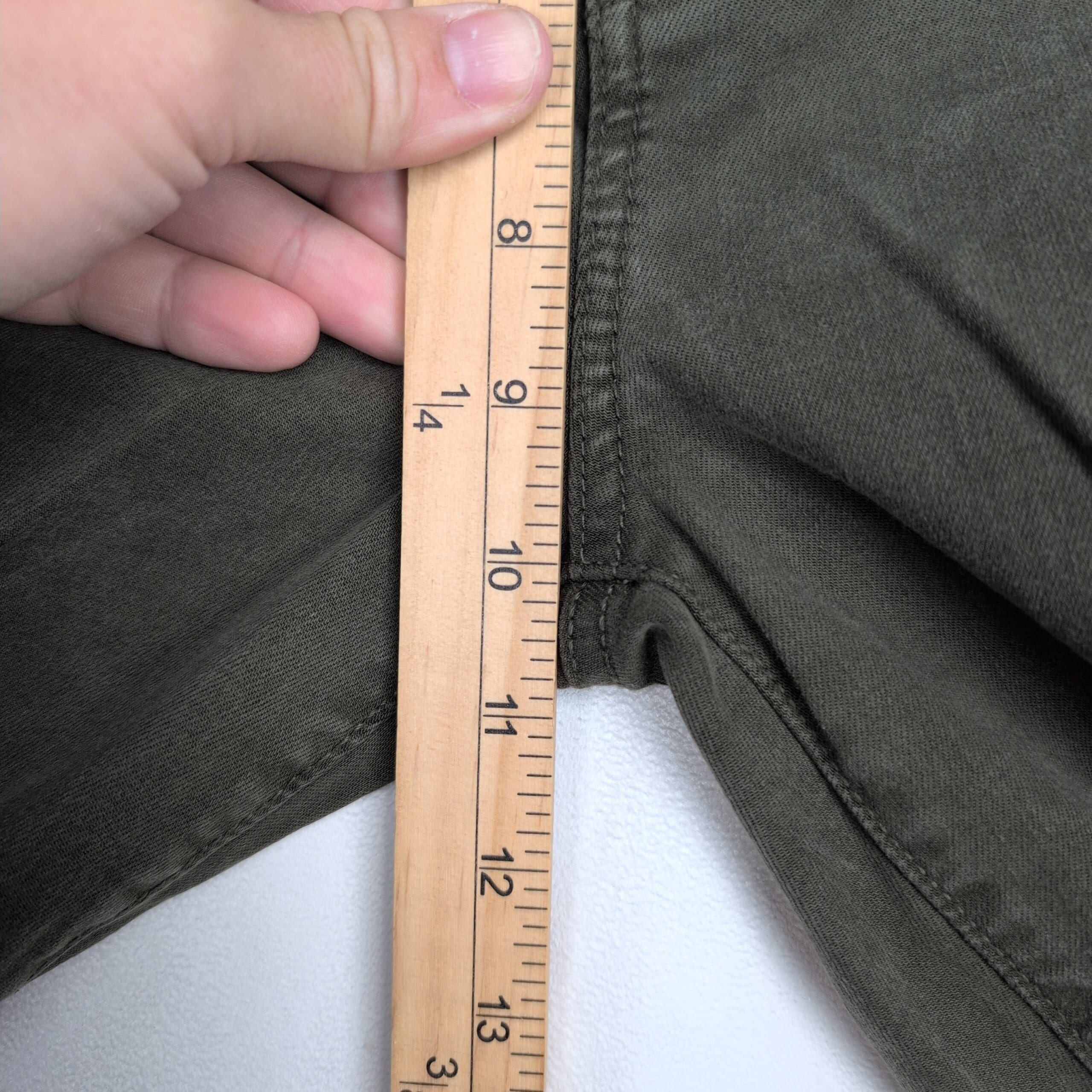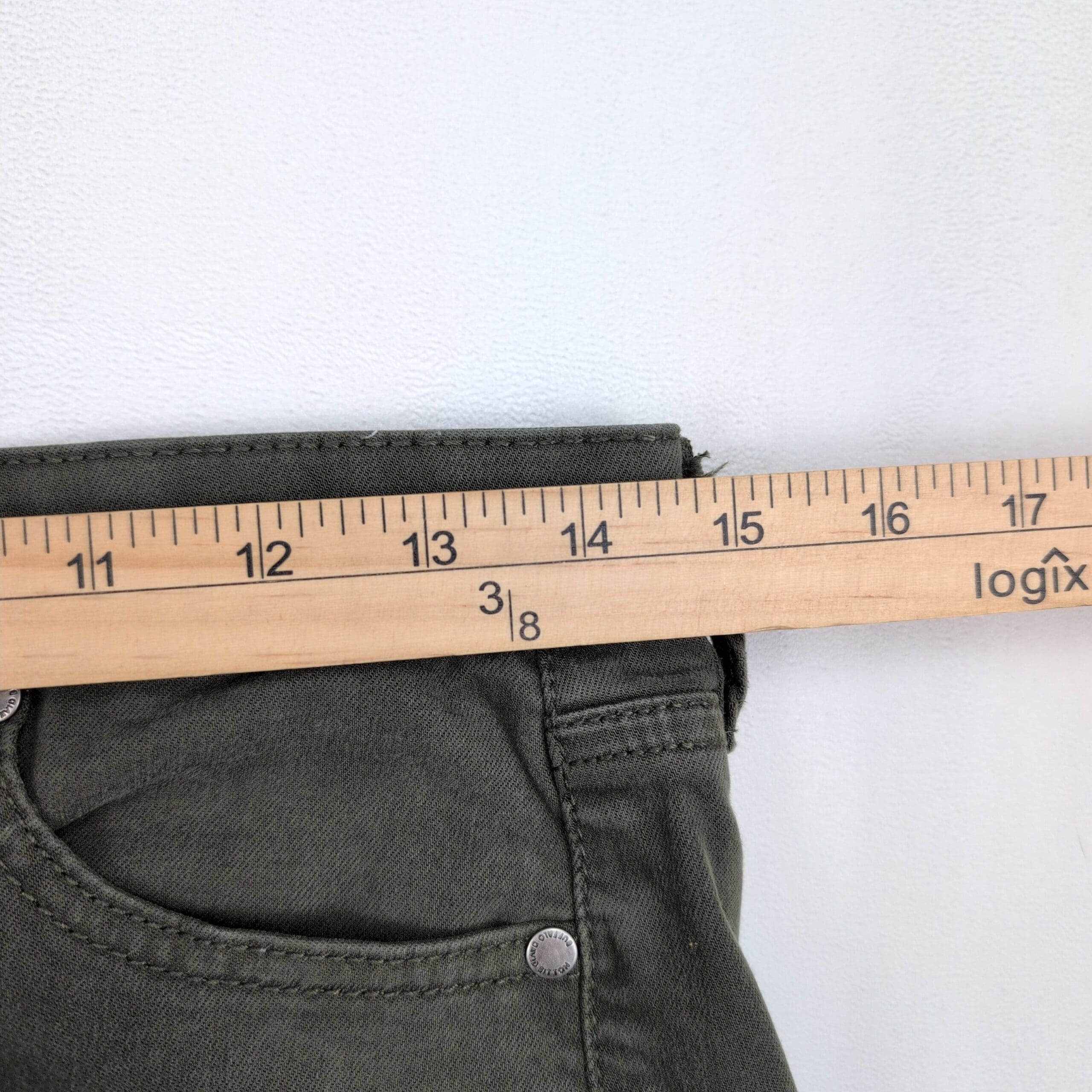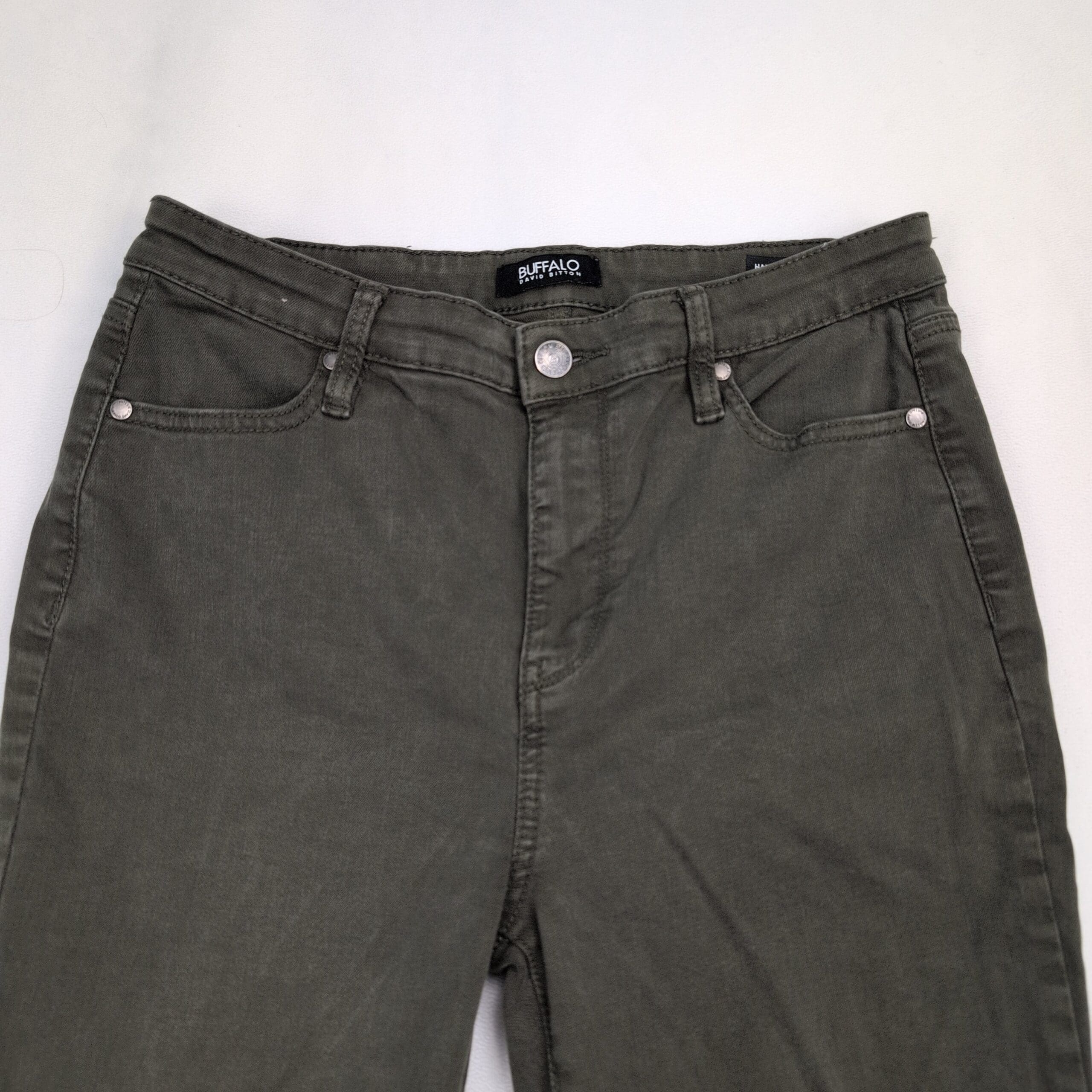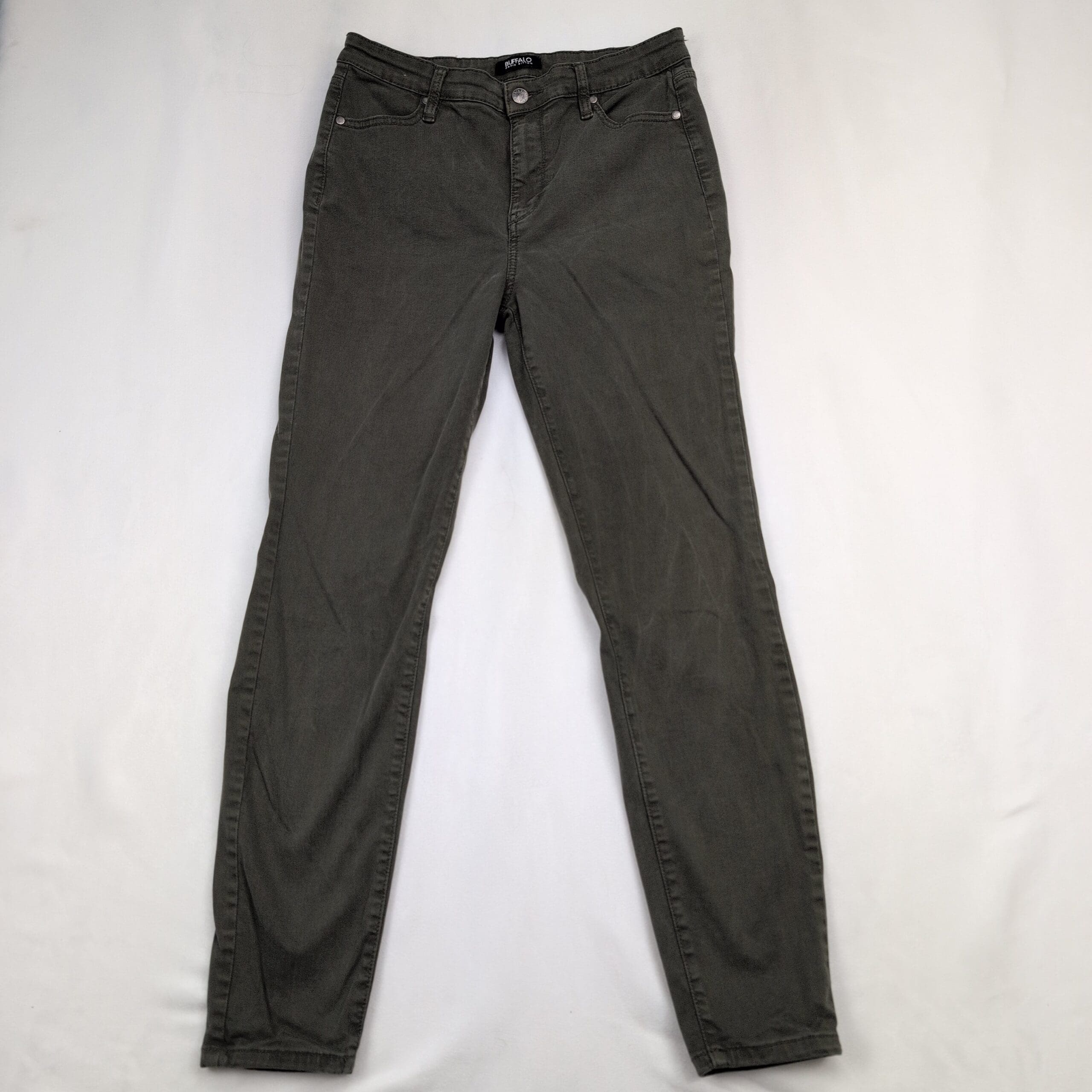 Buffalo David Bitton “Hanna” high-rise soft stretch skinny jeans in olive/army green. Women’s size 8 with a comfortable, figure-flattering high rise and slim leg — perfect for everyday wear. Excellent used condition with normal light wear; one small mark on the back leg as shown in photos. No major rips, tears, or stains. See photos for details and condition.