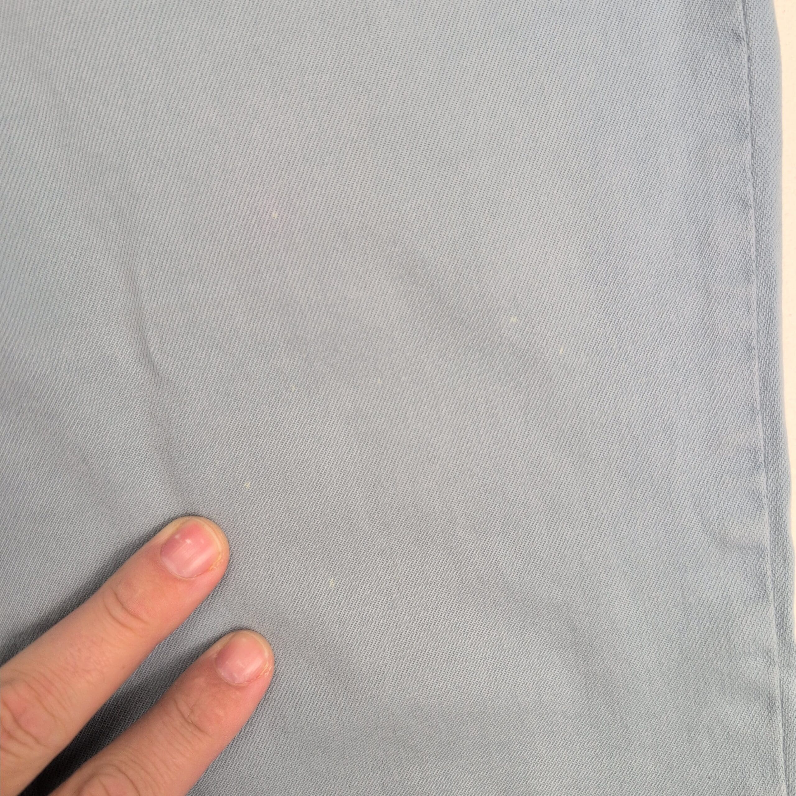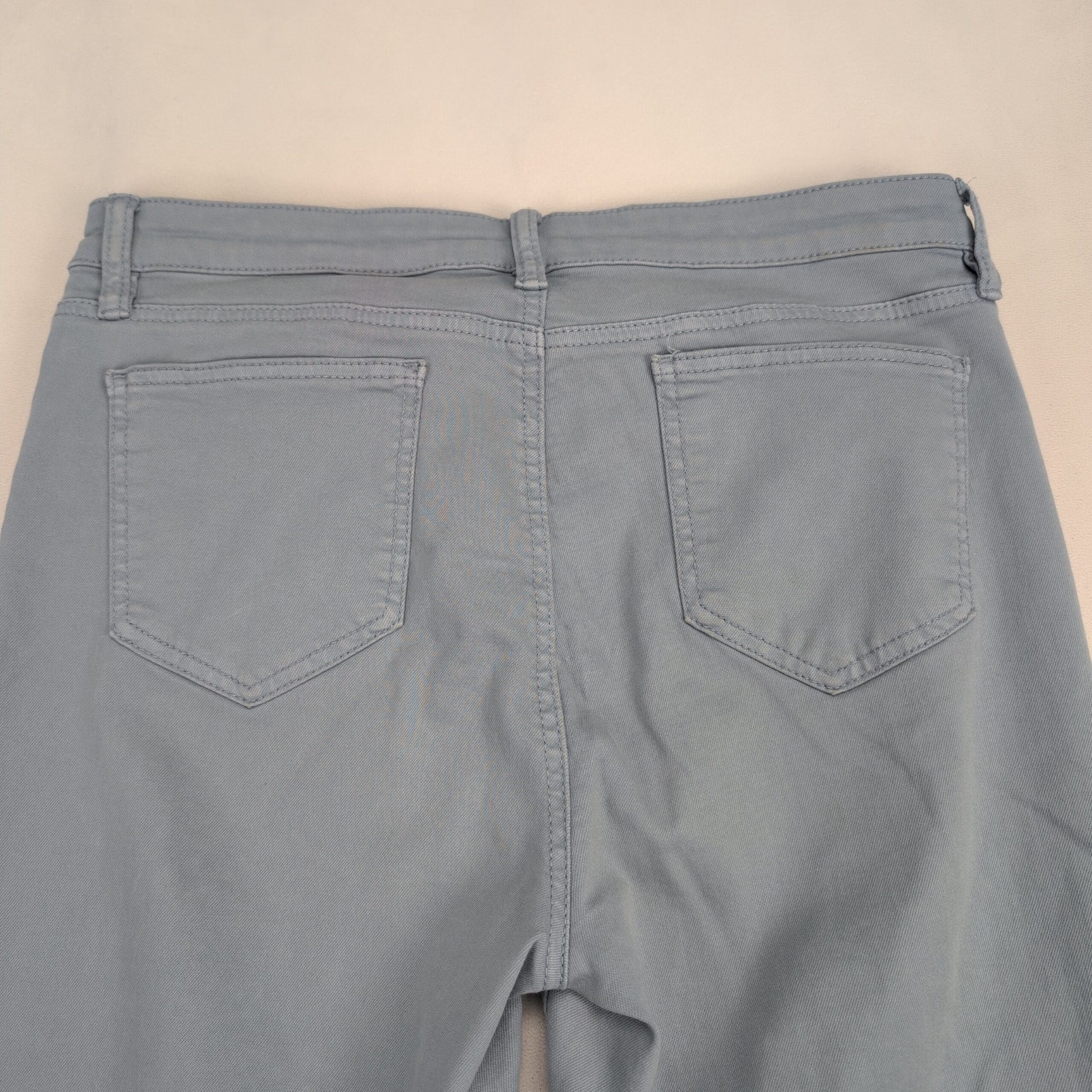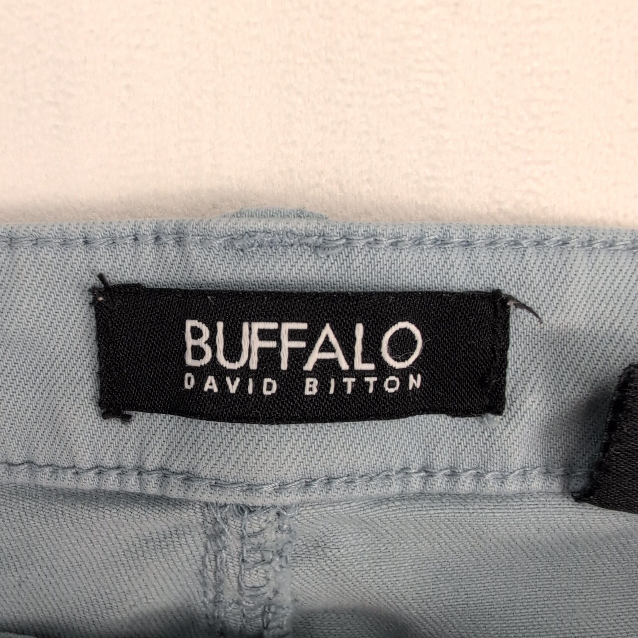 Buffalo David Bitton high-rise women’s jeans in a soft light blue. Size 10. Features a high-rise waist, slim/skinny leg, five-pocket styling and zip-fly with button closure. Overall in good used condition with normal light wear. Small white stains on the left pant are pictured—please review photos for placement and size. No rips, tears, or holes; versatile denim that dresses up or down.
