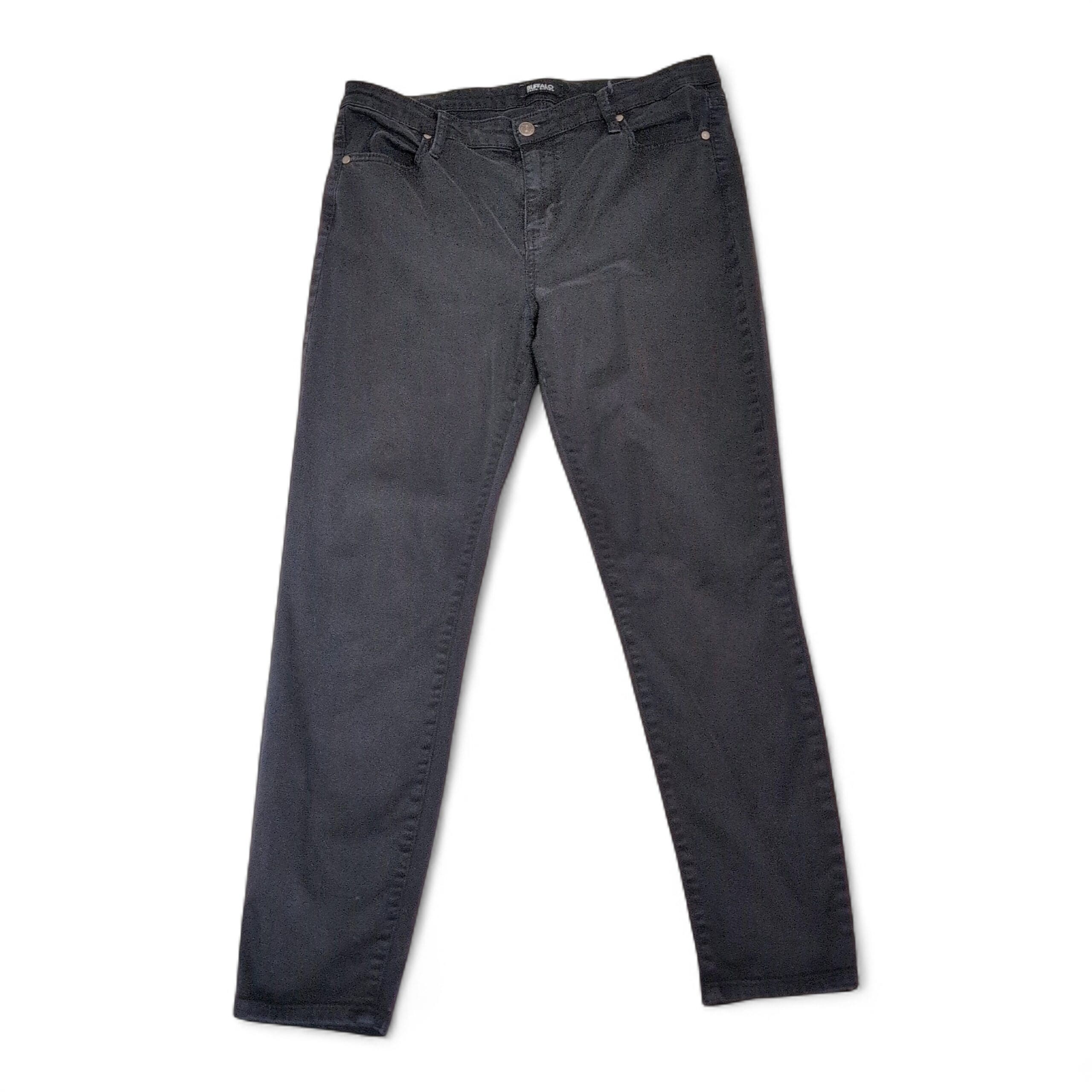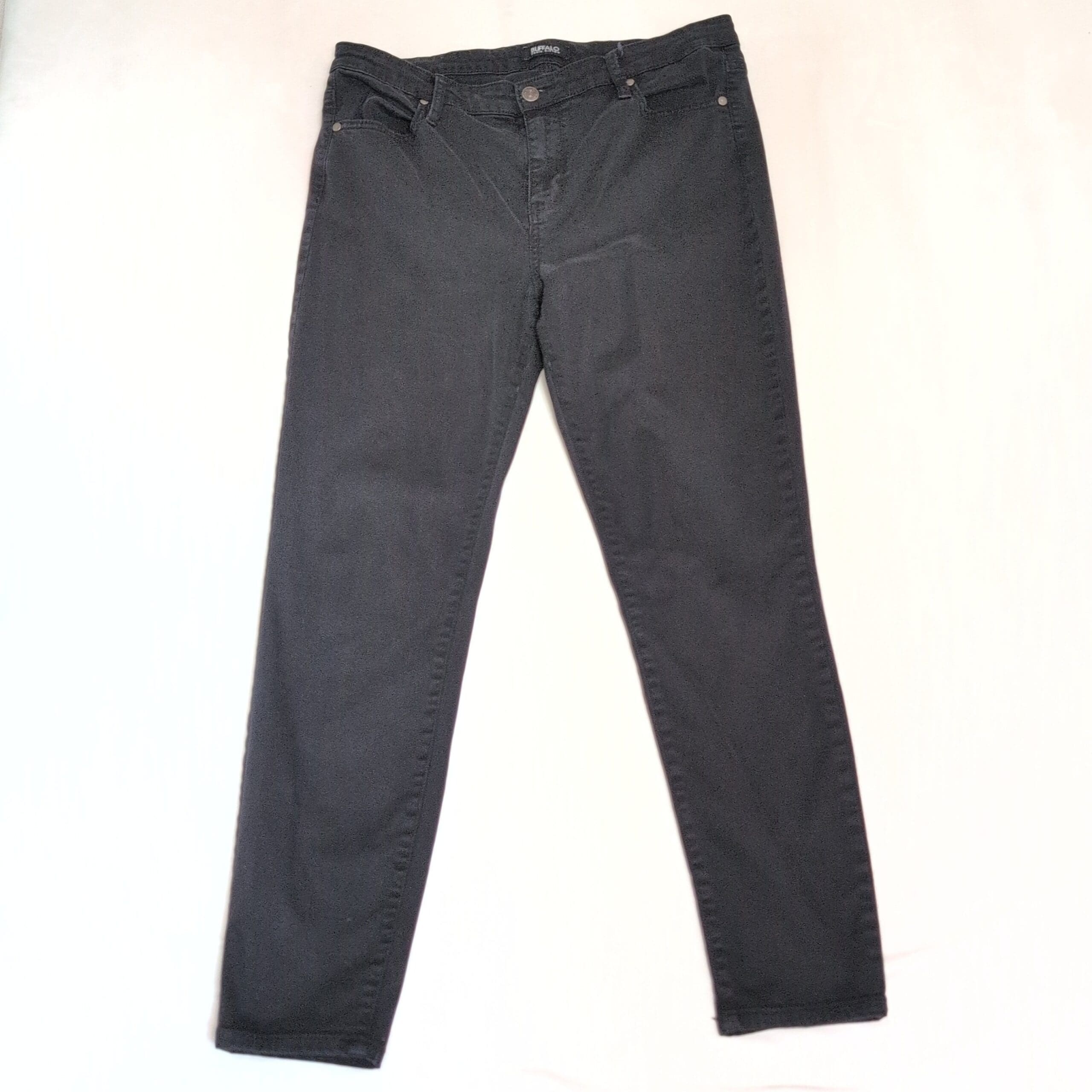 Buffalo David Bitton women’s black straight leg pants in size 12. Classic five-pocket styling with belt loops and a button-and-zip closure. Clean, versatile cut that works for both casual and office looks; made in a mid-weight denim/denim-blend feel typical of the brand.
