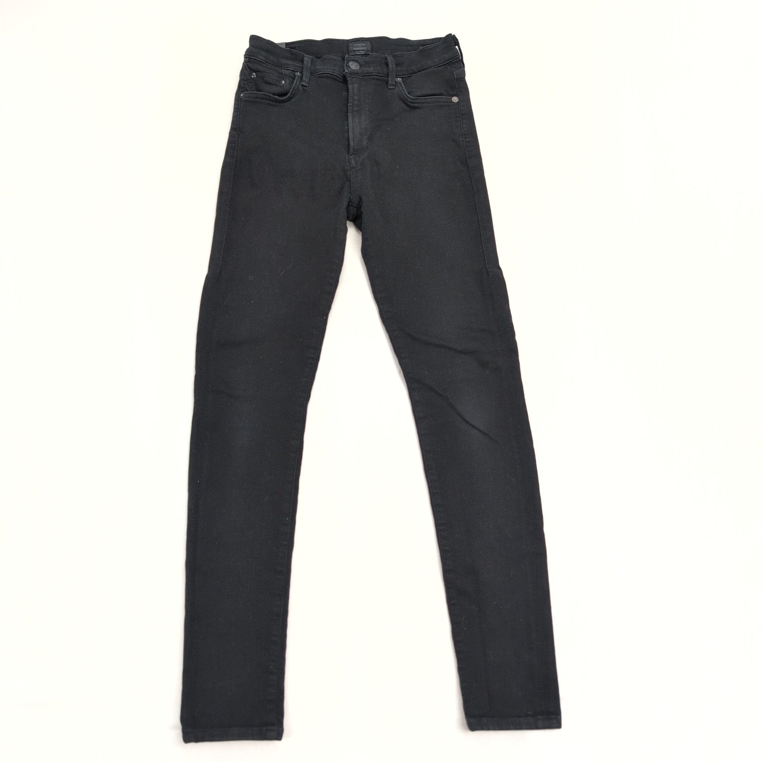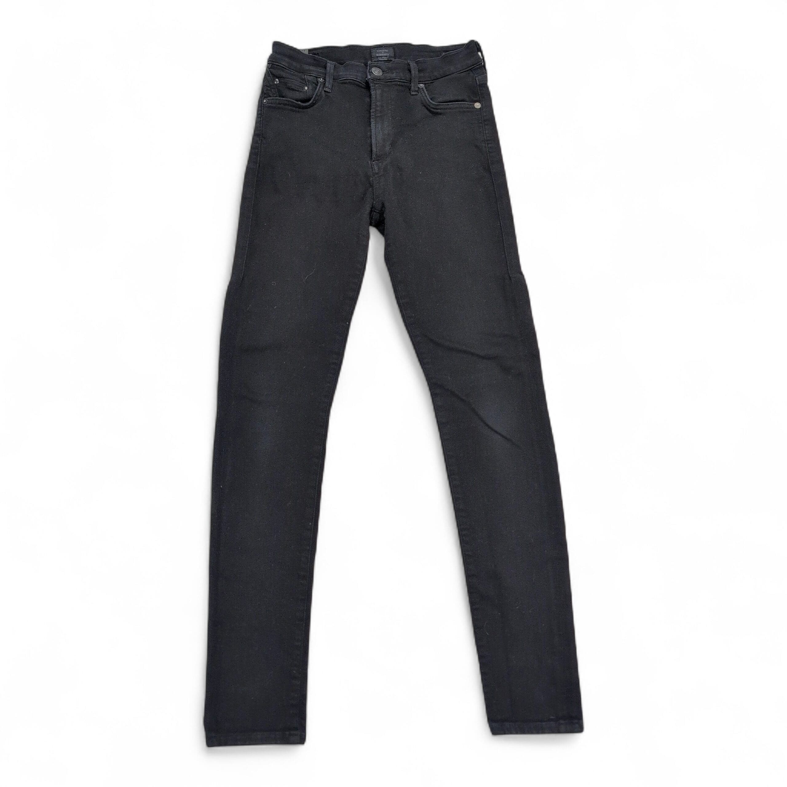 Citizens of Humanity high-rise skinny jeans in black. Women’s size 27 (standard). Sleek, tapered leg and high-rise waist create a streamlined silhouette—great for everyday wear or dressing up. Classic five-pocket styling with clean finish.