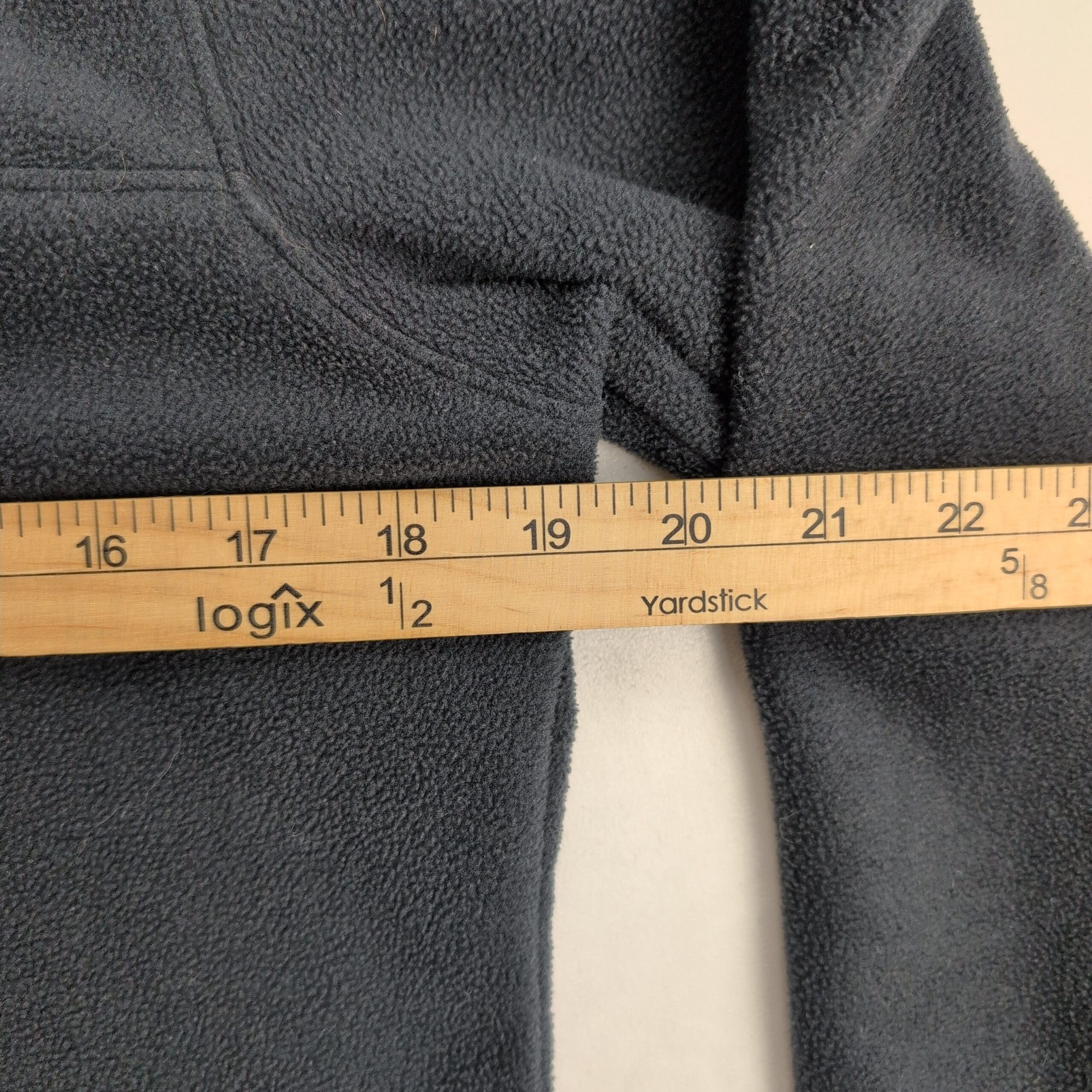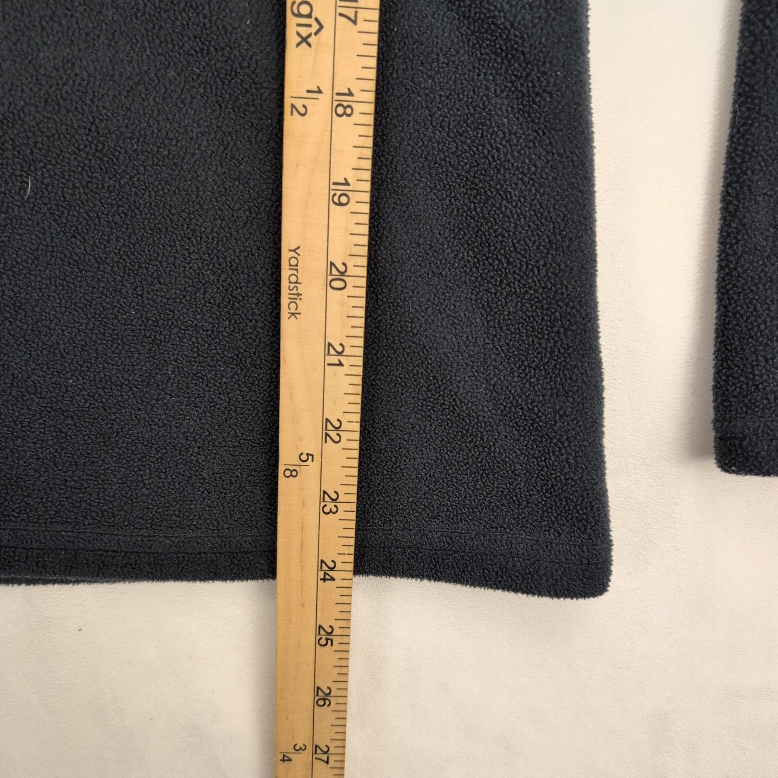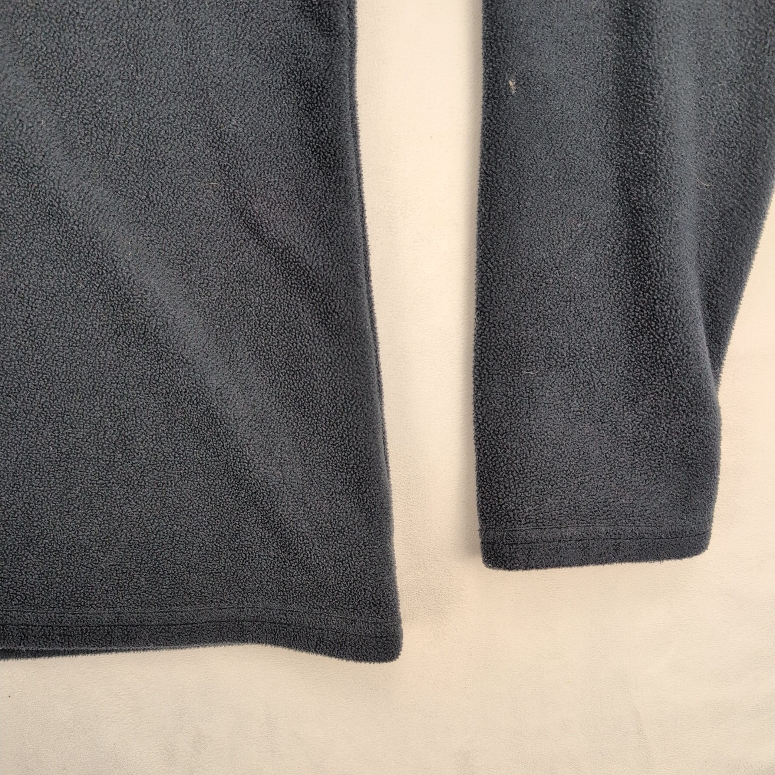 Columbia men’s quarter-zip fleece pullover in size M. Dark navy/black midweight fleece with light gray zip trim and embroidered Columbia logo at chest. Stand collar and long sleeves — great for layering and everyday outdoor wear. Excellent used condition: free of major rips, tears, stains, or flaws; shows typical light wear consistent with gentle use. Tagged size: M (men).