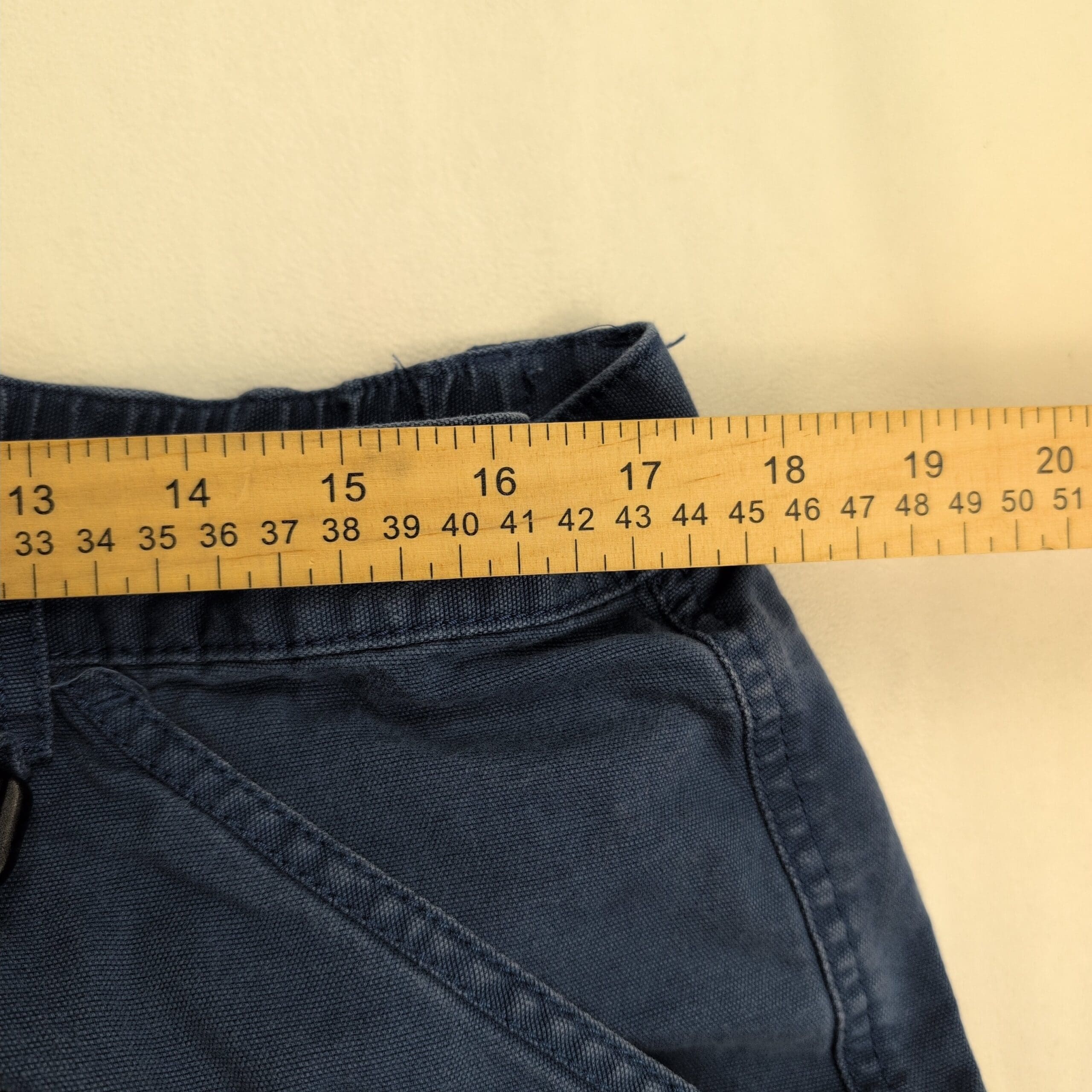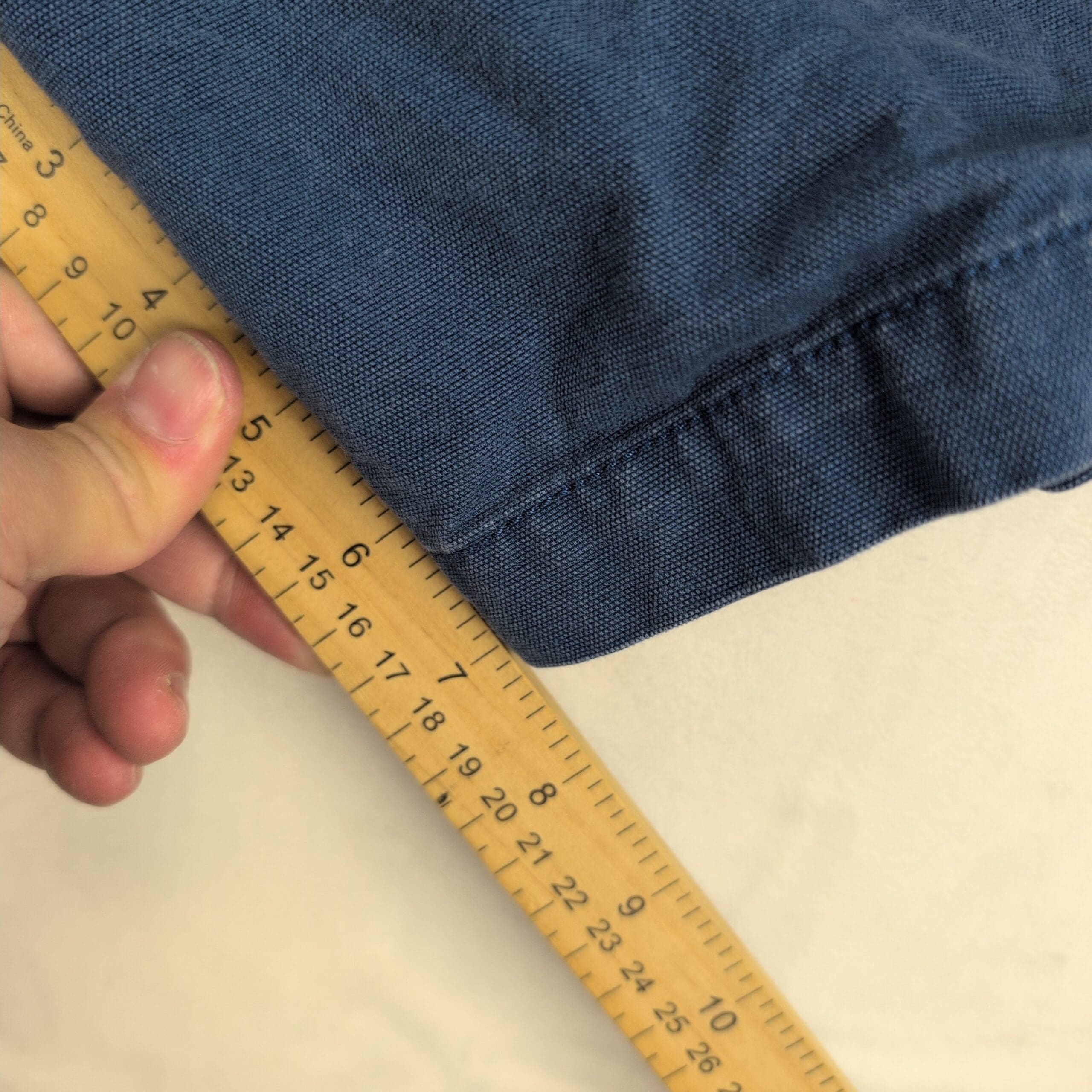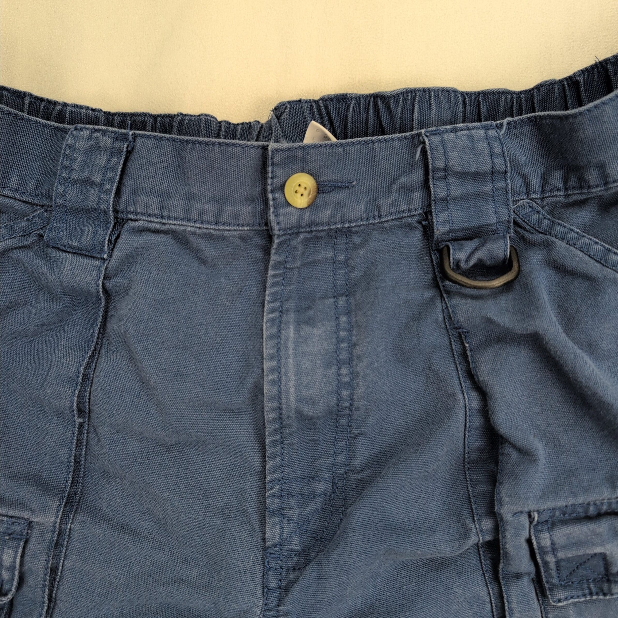 Condition: Good used condition with normal wear and light fading consistent with use. No major stains or holes; there is a small fray at the left hem (see photos). Typical, functional wear only.