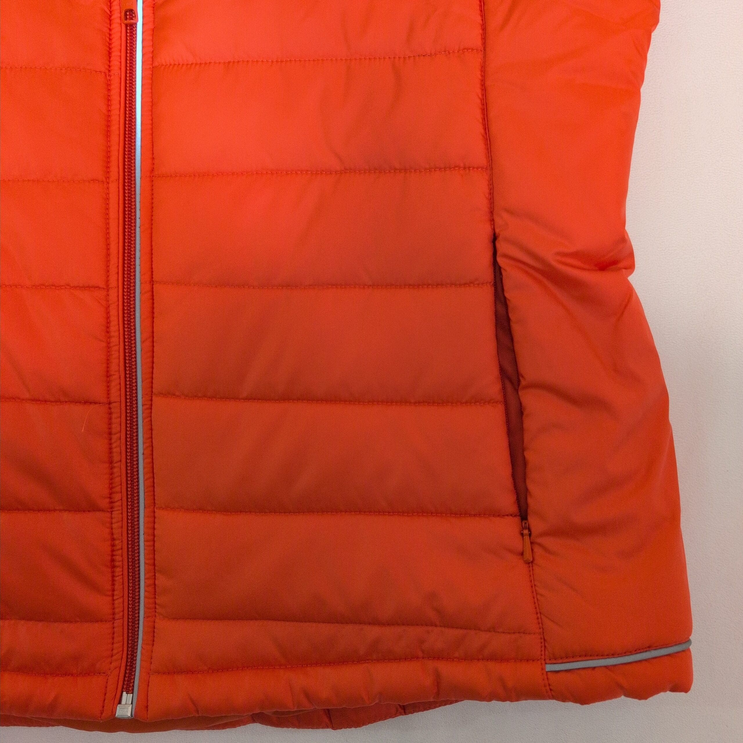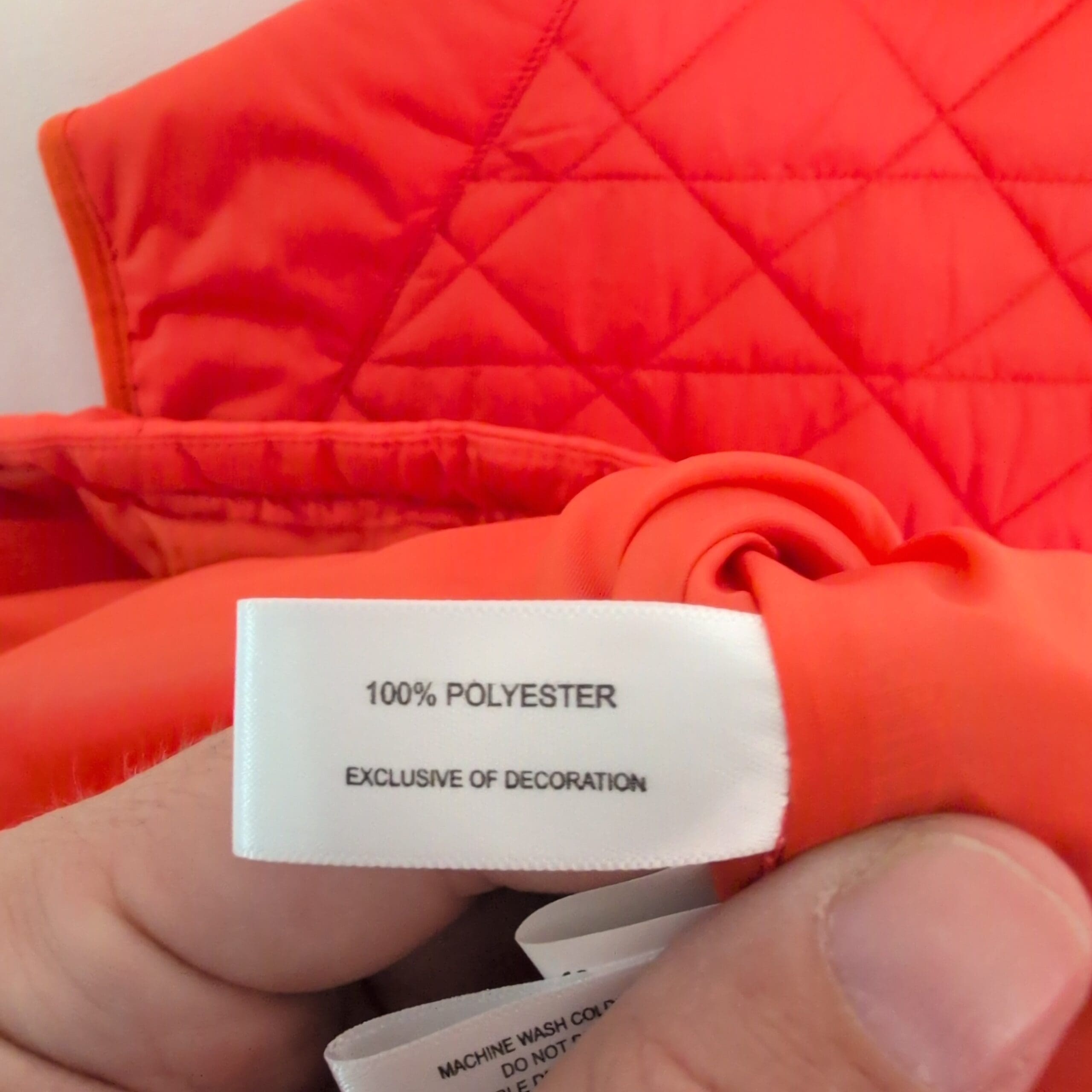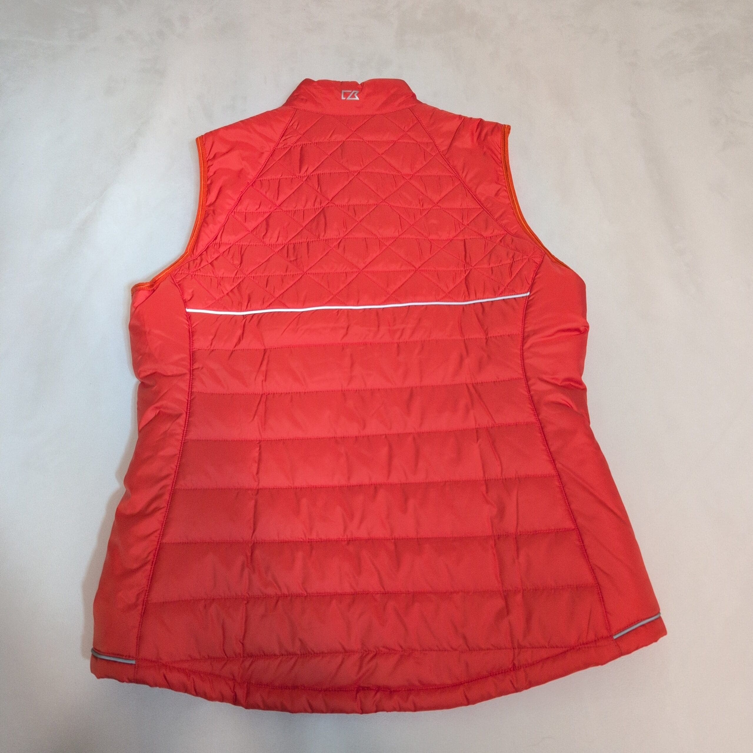 Cutter & Buck quilted puffer vest in bright Cleveland Browns orange. Official licensed NFL gear with embroidered Browns logo at the chest (reads “BROWNS Women’s Organization”). Size XL (standard). New with tags. Features a full zip front, stand collar, zippered hand pockets, and lightweight insulated quilting for comfortable layering on game day or around town.