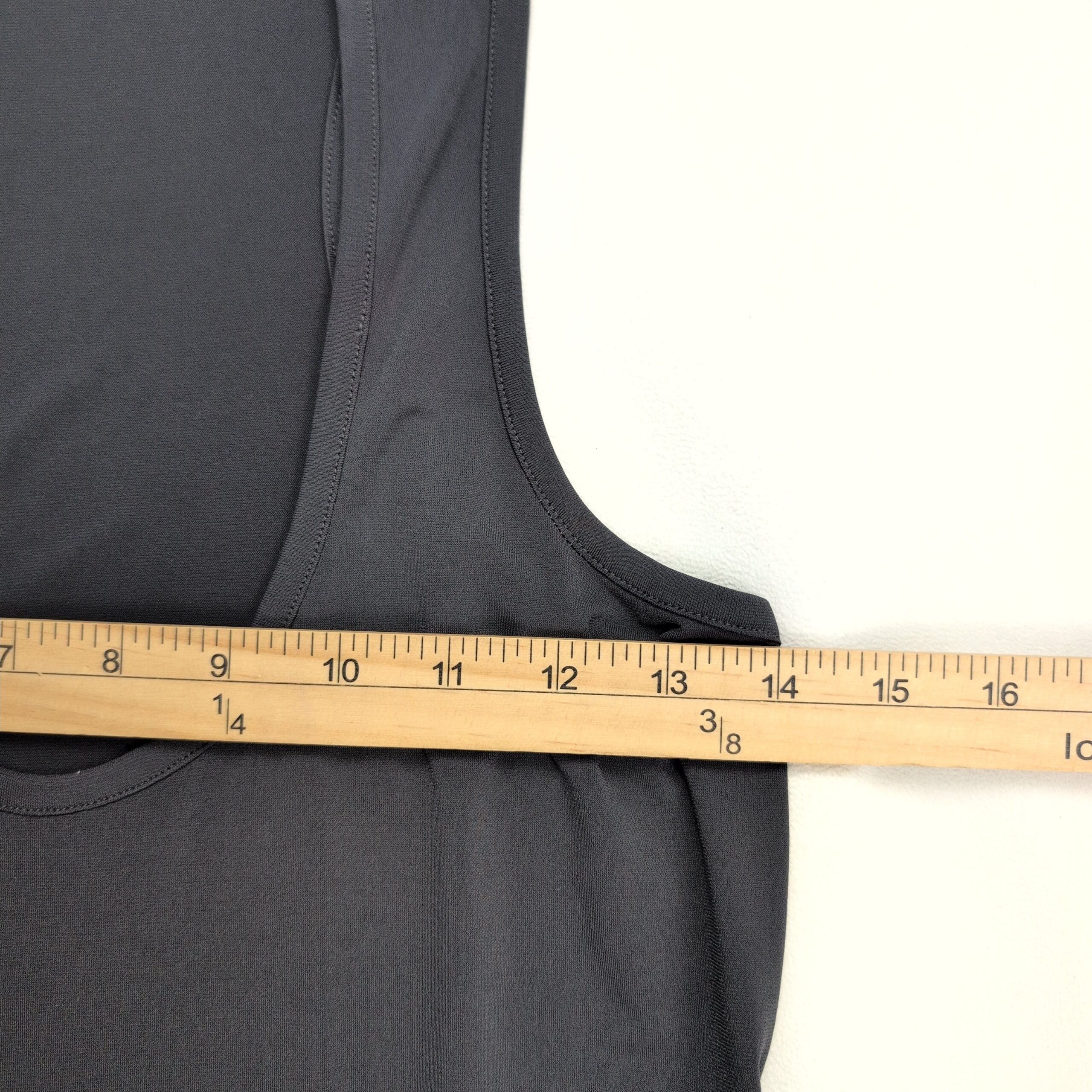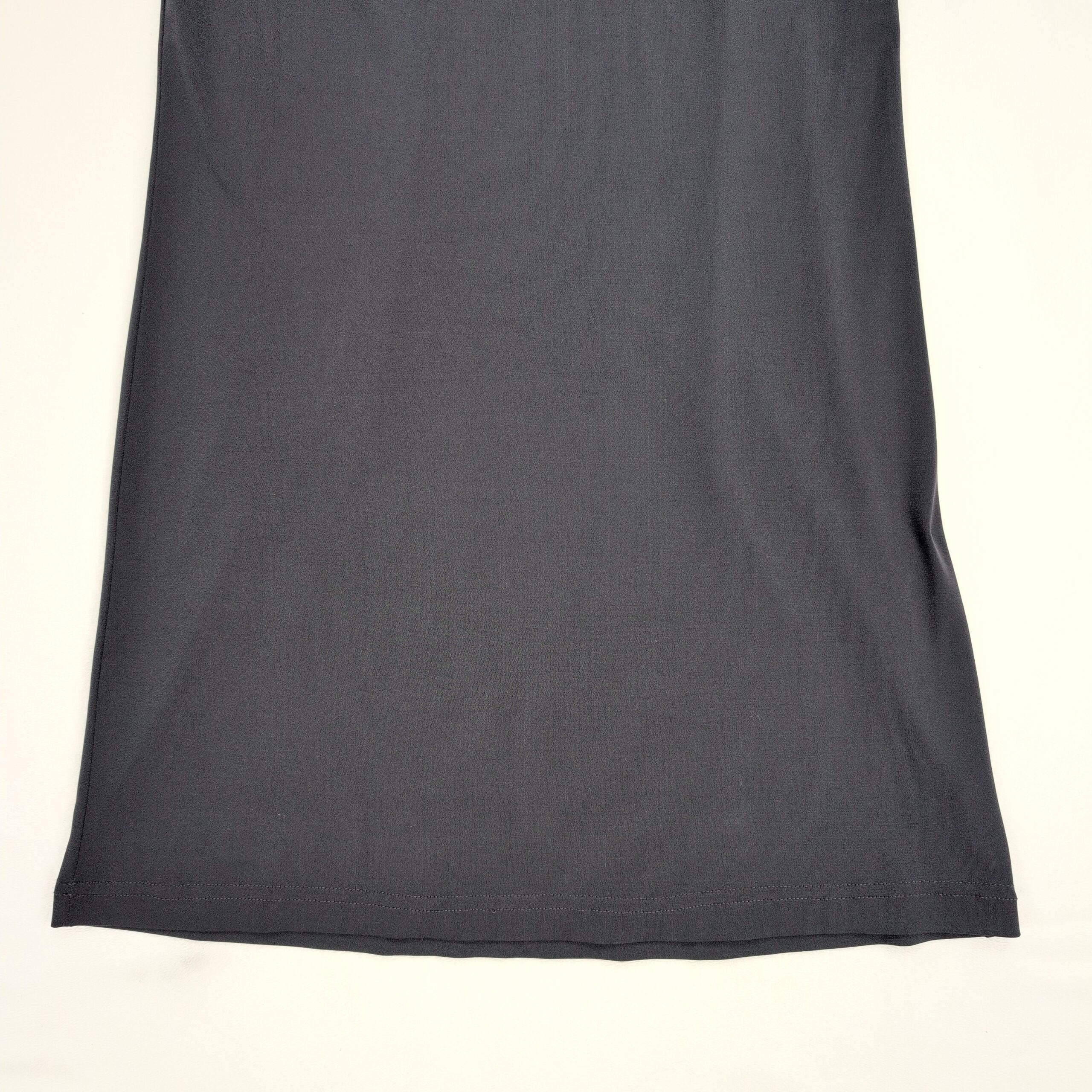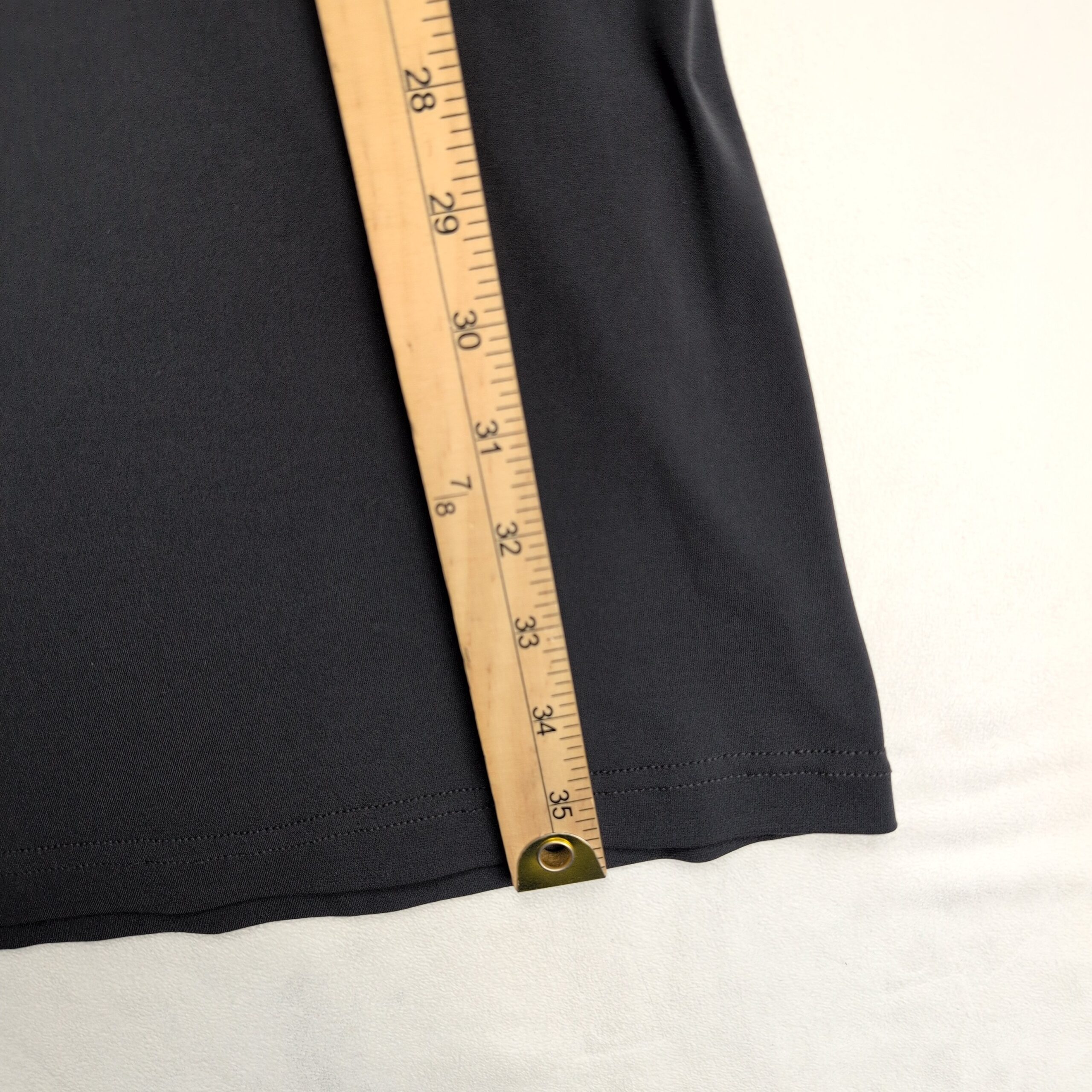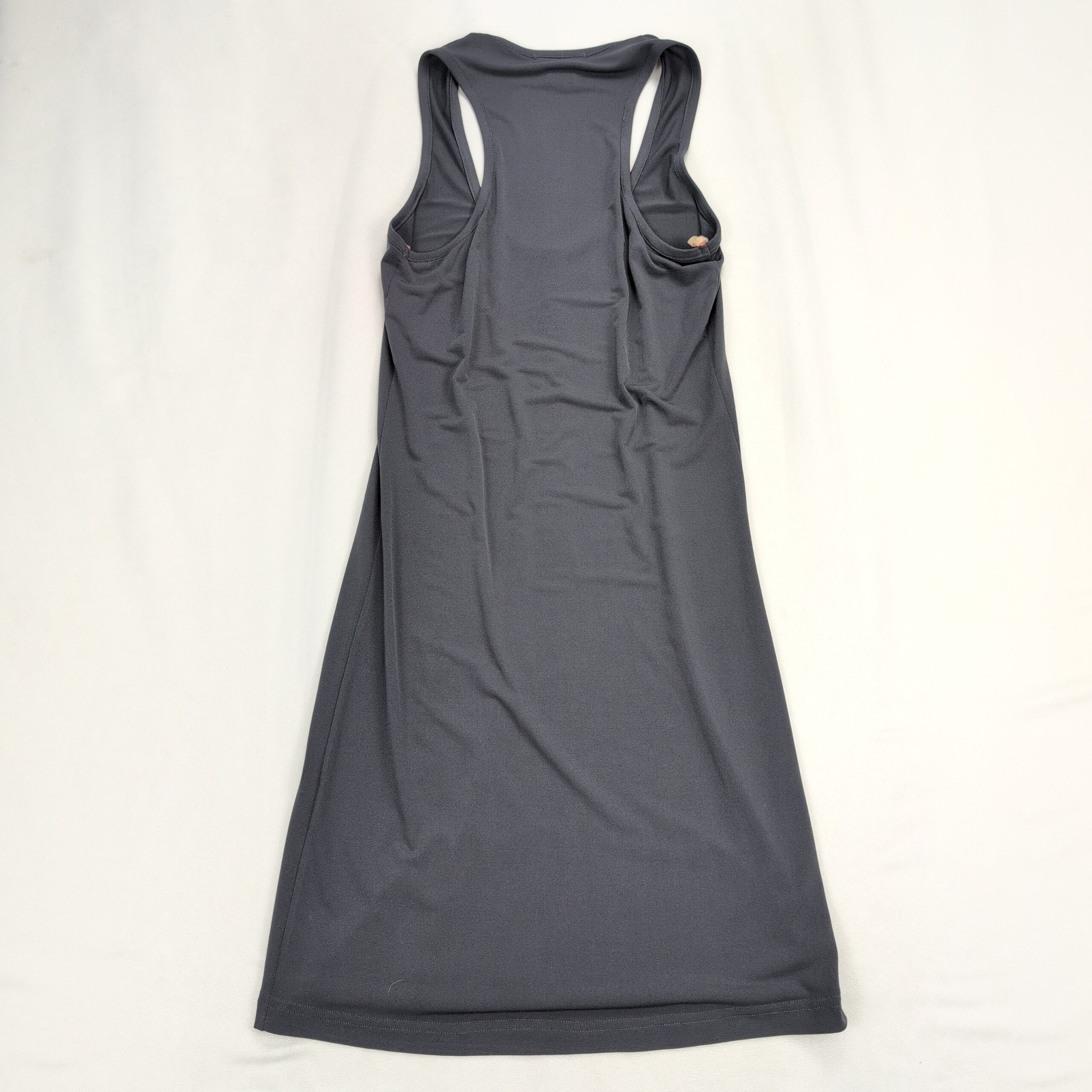 Daniela Corte women’s black sleeveless tank dress in size S. Scoop neckline with a slim, slightly A-line silhouette in a soft, stretchy knit — simple and versatile for layering or wearing on its own. Clean finish at hem and neckline; classic minimalist style that transitions easily from casual to dressier looks.