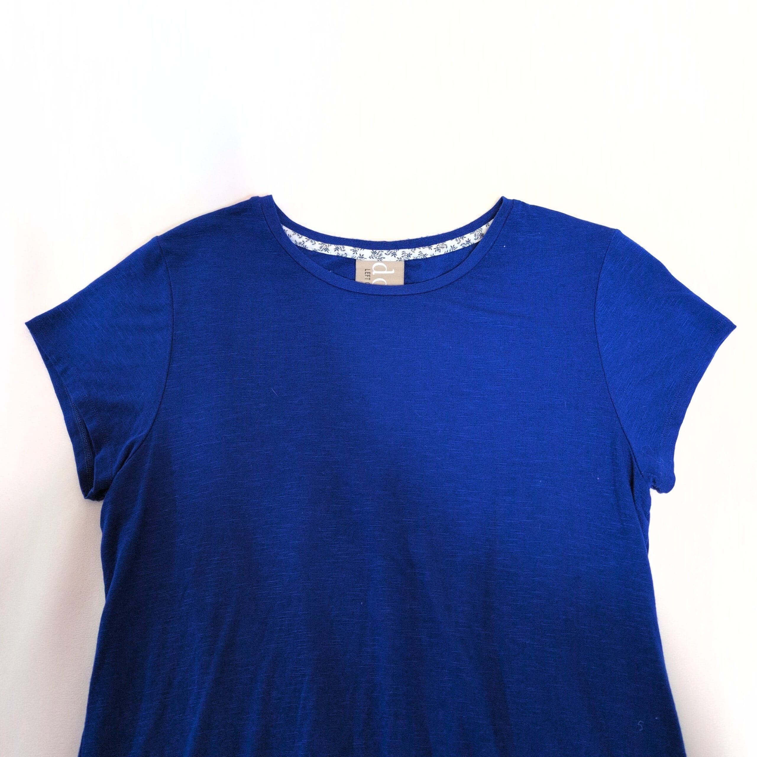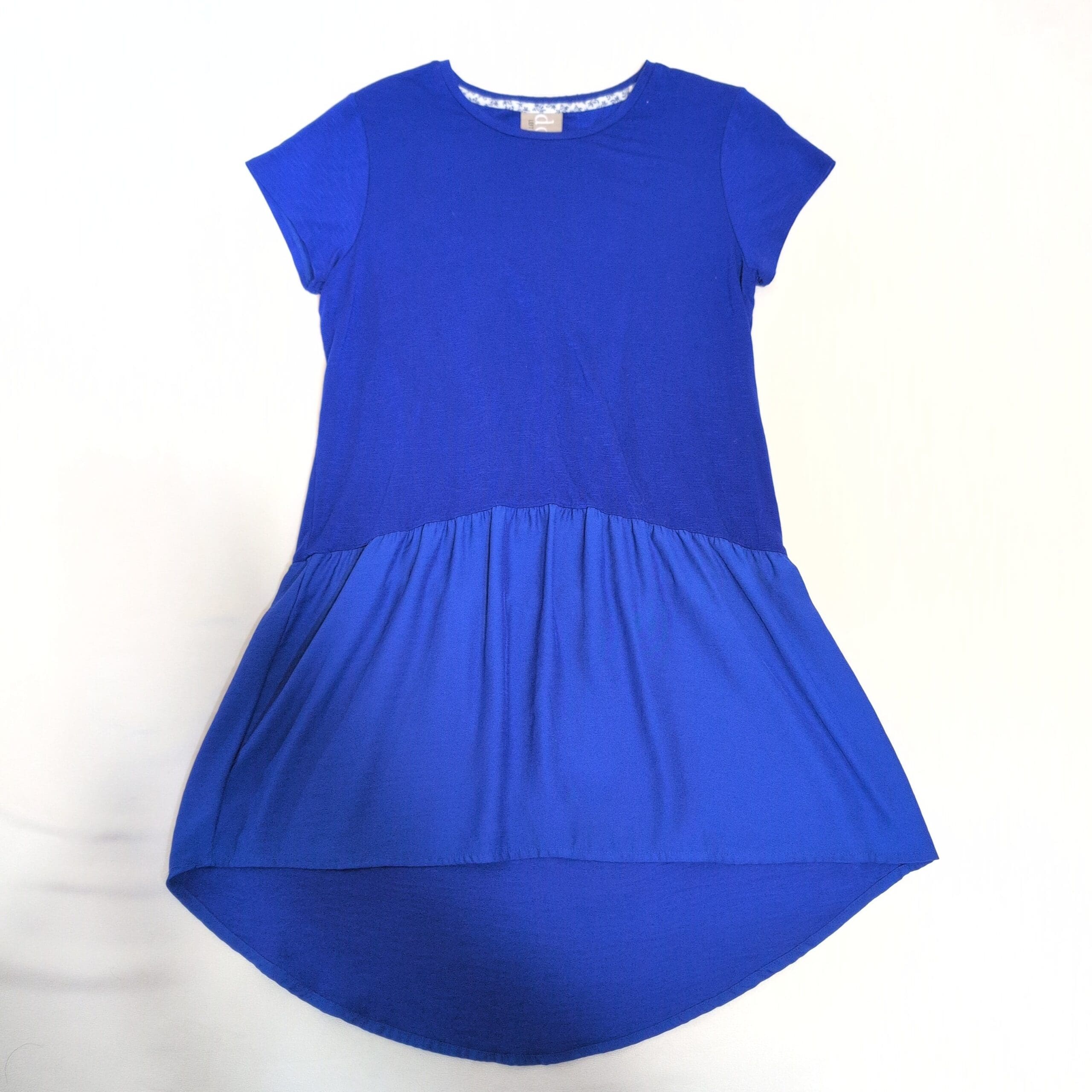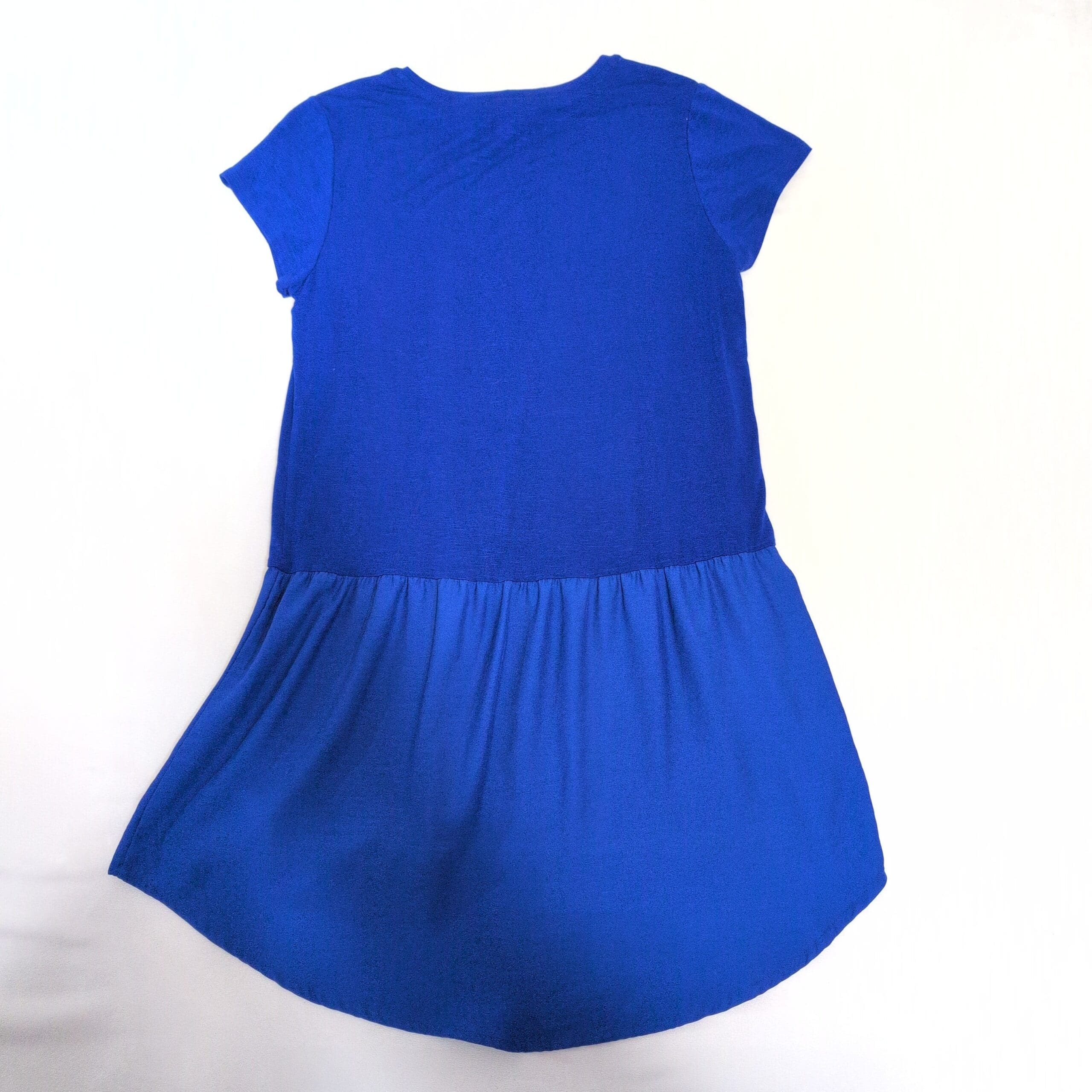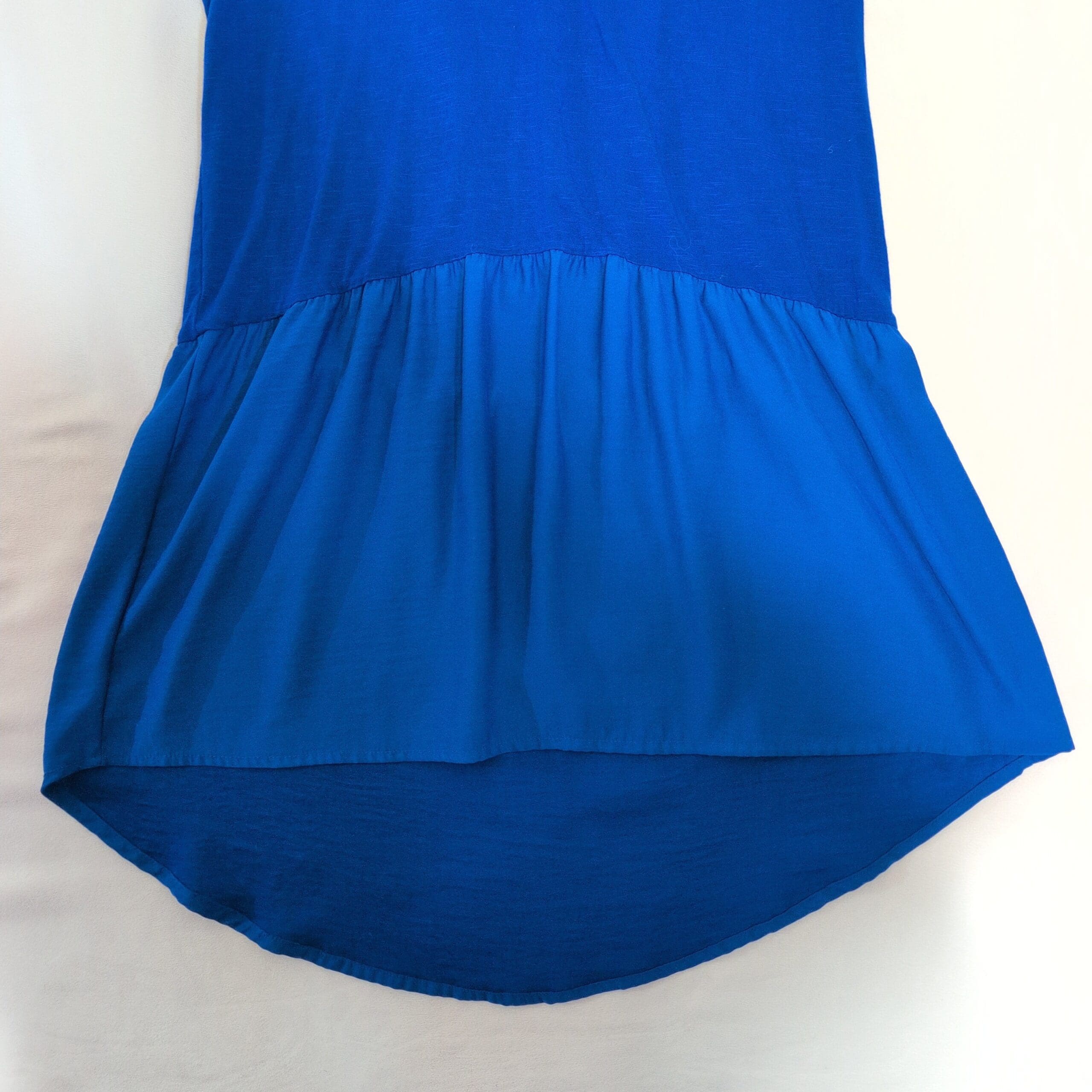 Dolan women’s tunic in a vibrant cobalt blue. Size S. Short sleeves with a soft knit bodice and a gathered, flowy tiered lower skirt that creates a flattering hi-low silhouette. Versatile — wear as a tunic over leggings or jeans, or style as a short dress with boots or sandals. Lightweight, breathable feel and easy to layer for casual or dressed-up looks. Gently pre-owned and in excellent condition with no visible stains, snags, or odors. Please see photos for details.