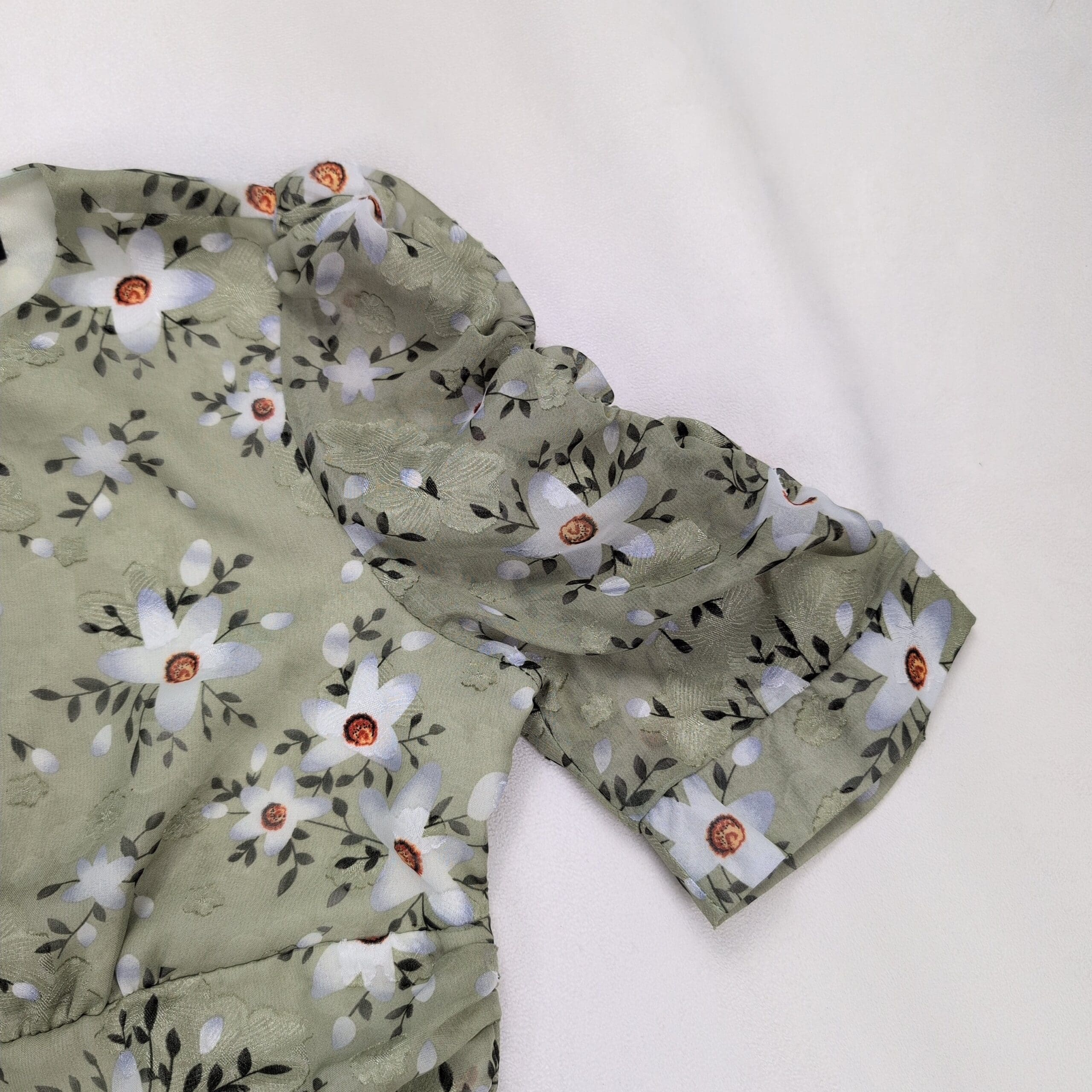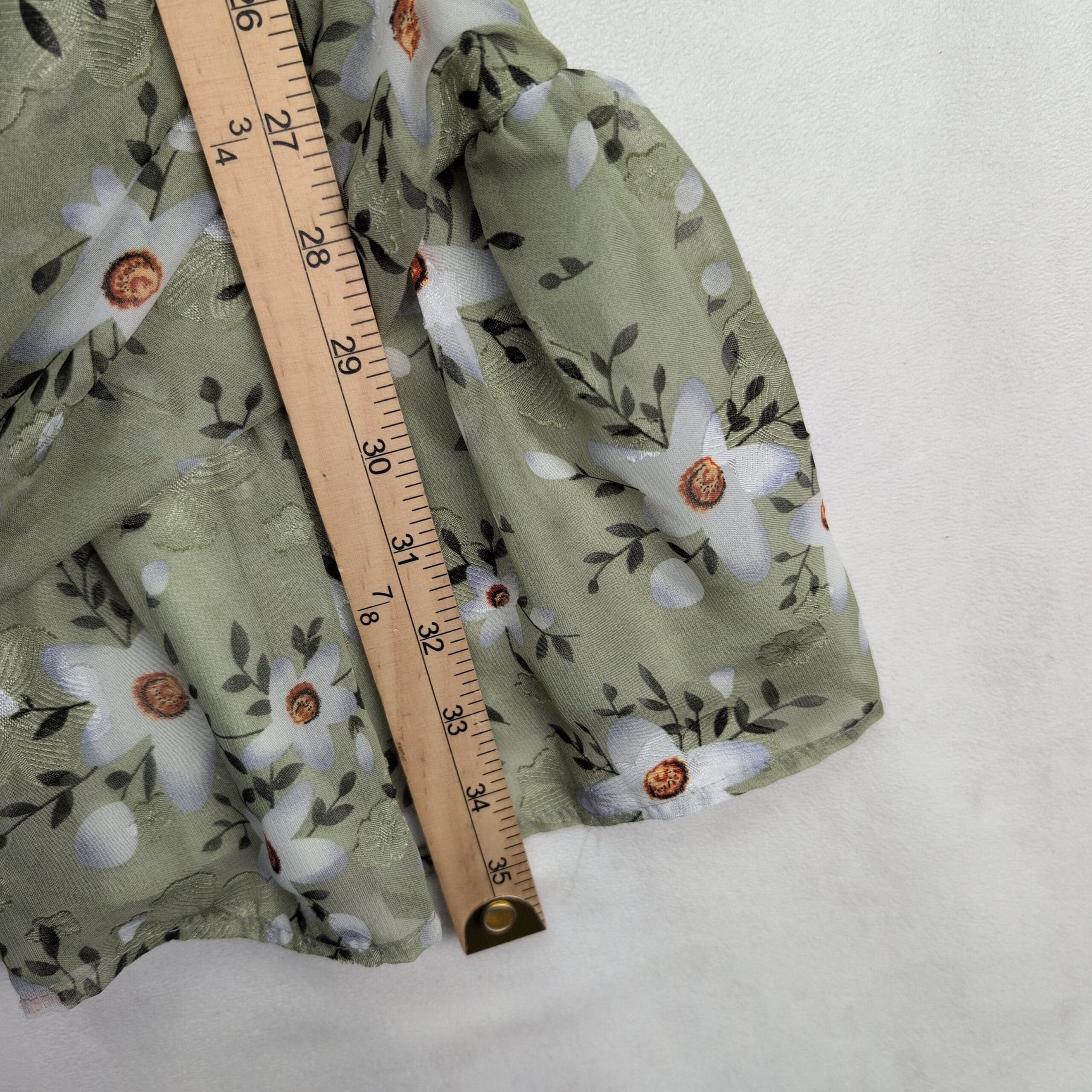 Dolce Vita Sage Floral Ruffle Dress Sz L — Puff Sleeve Ruched