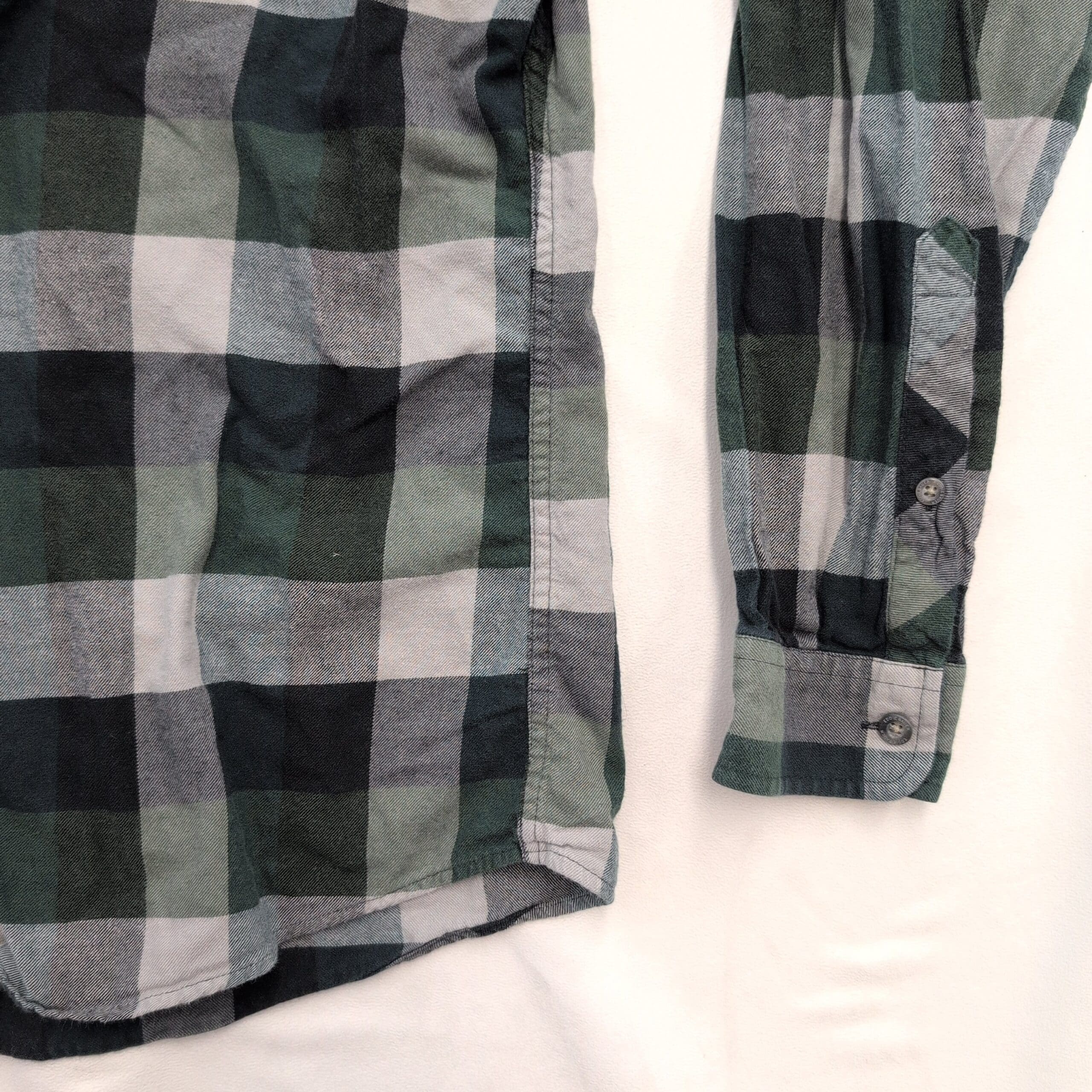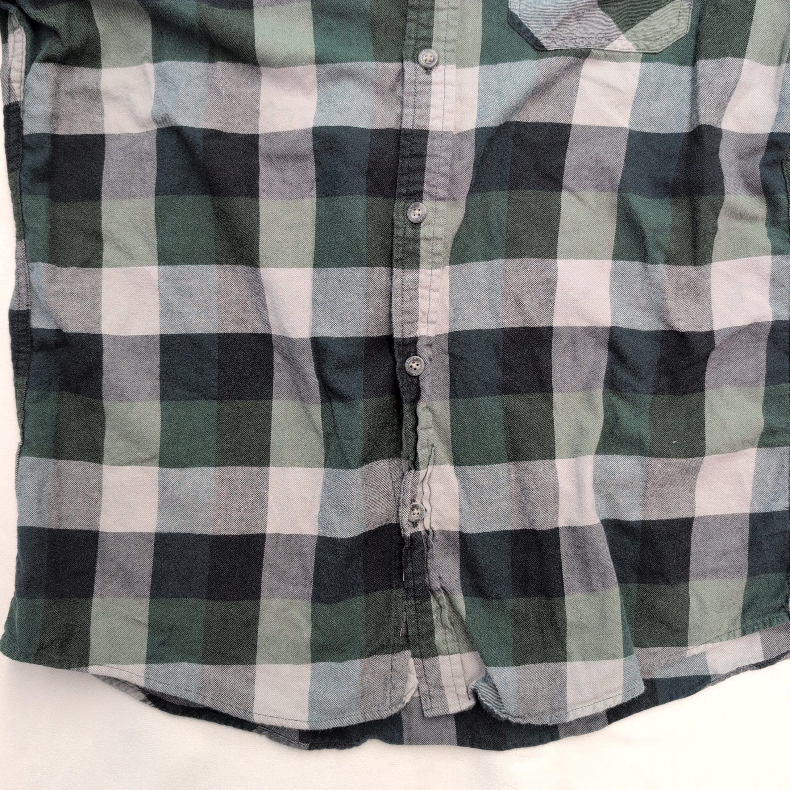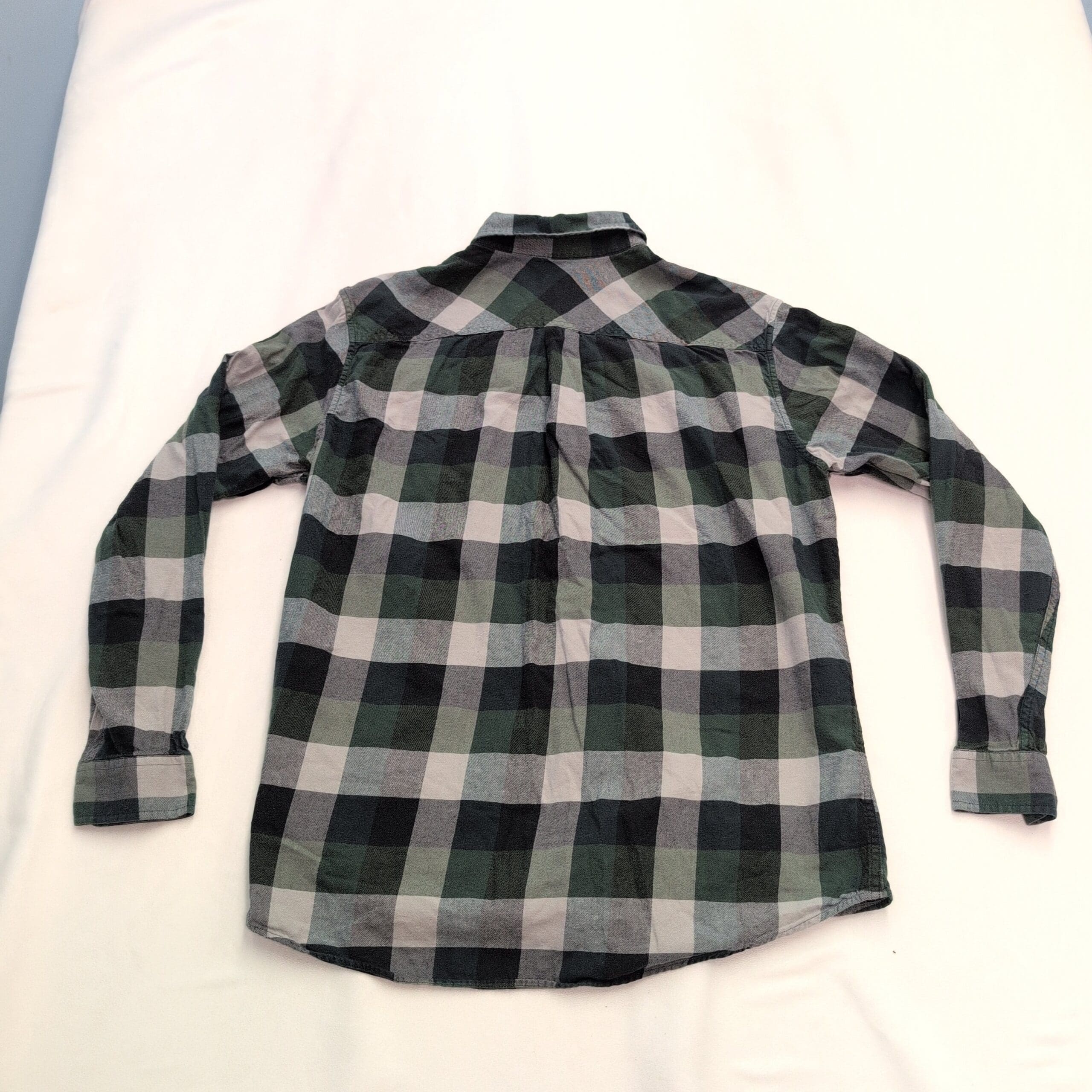 Condition: Gently used and free of major rips, tears, or stains. Shows typical wear including slight color fading and softening of the fabric, with minor wear at cuffs and collar consistent with normal use. All buttons are present and secure. Please review photos for details.