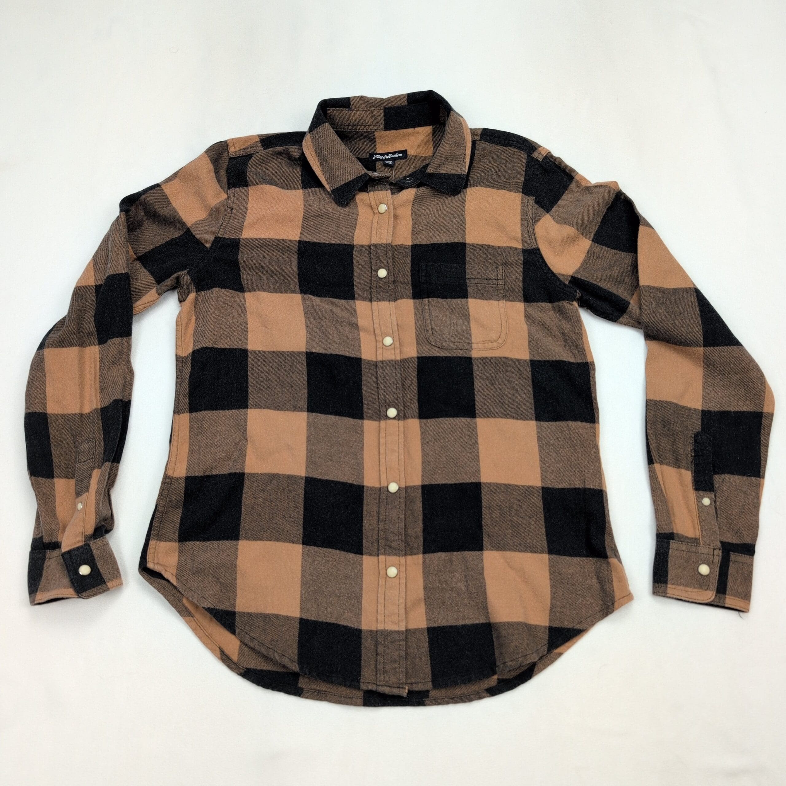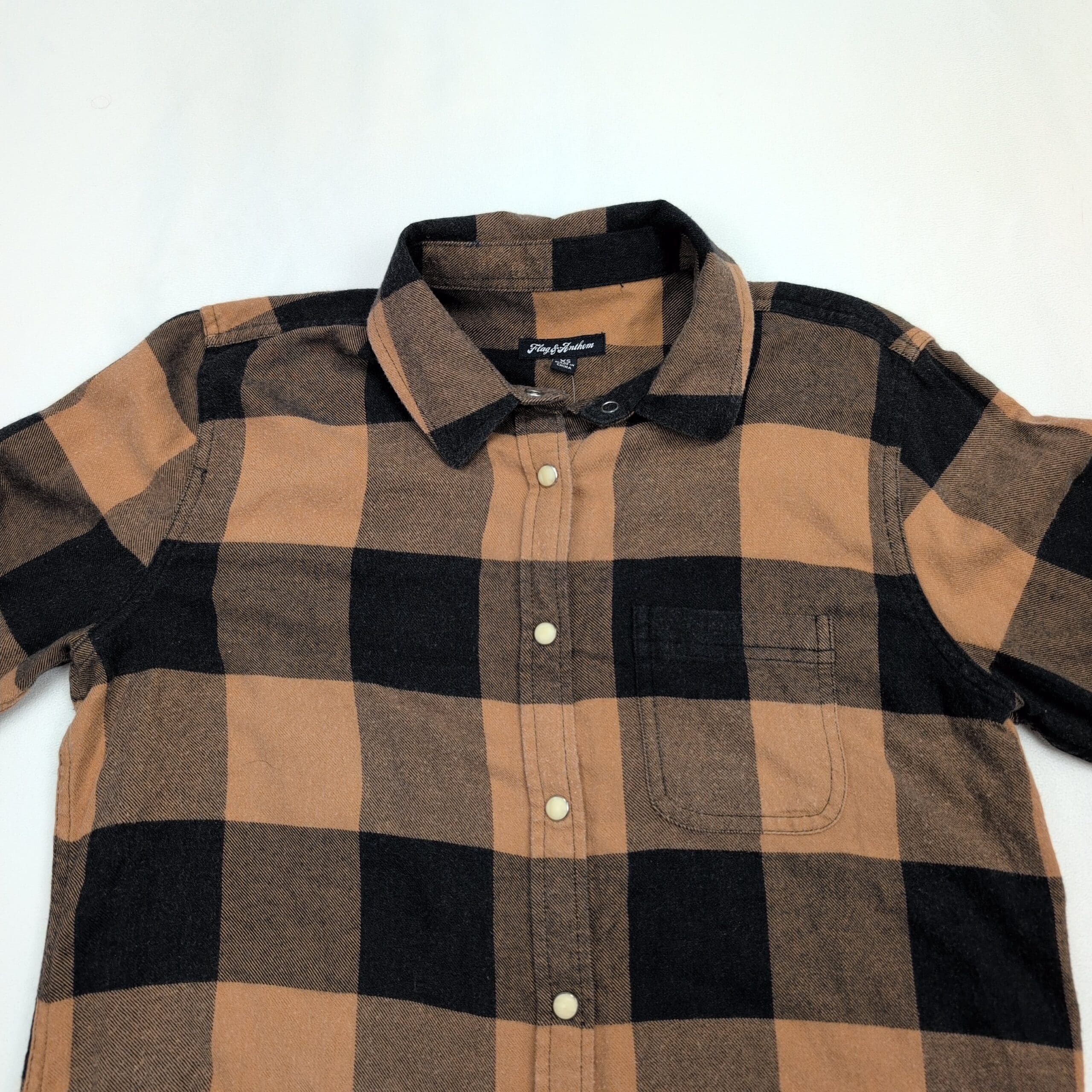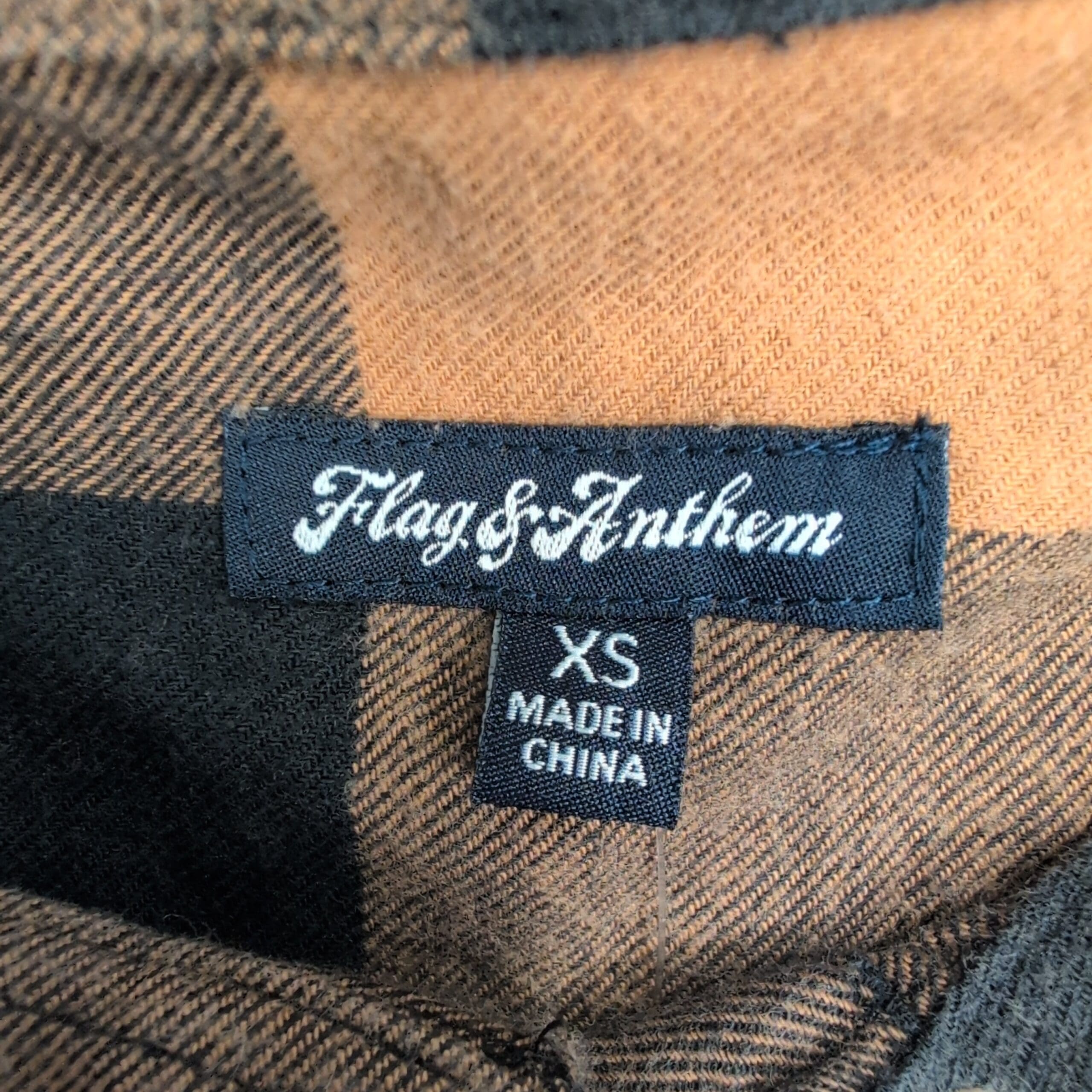 Flag & Anthem men’s XS buffalo plaid button-down shirt. New with tags — unworn. Tan and black check pattern, long sleeves, single chest pocket, button-front closure and classic curved hem. Casual, versatile style perfect for layering or everyday wear. Original tags attached and free of rips, stains, or flaws.