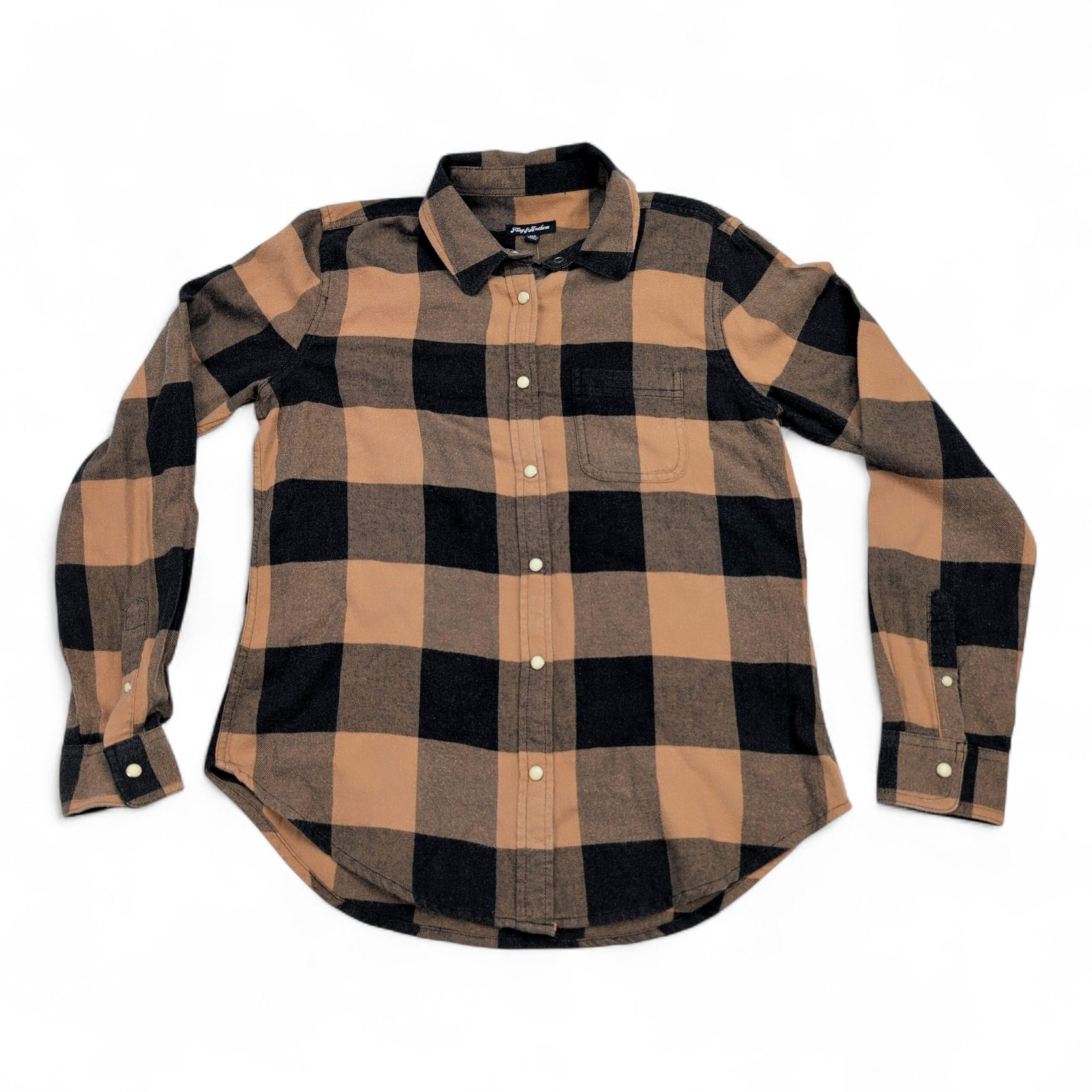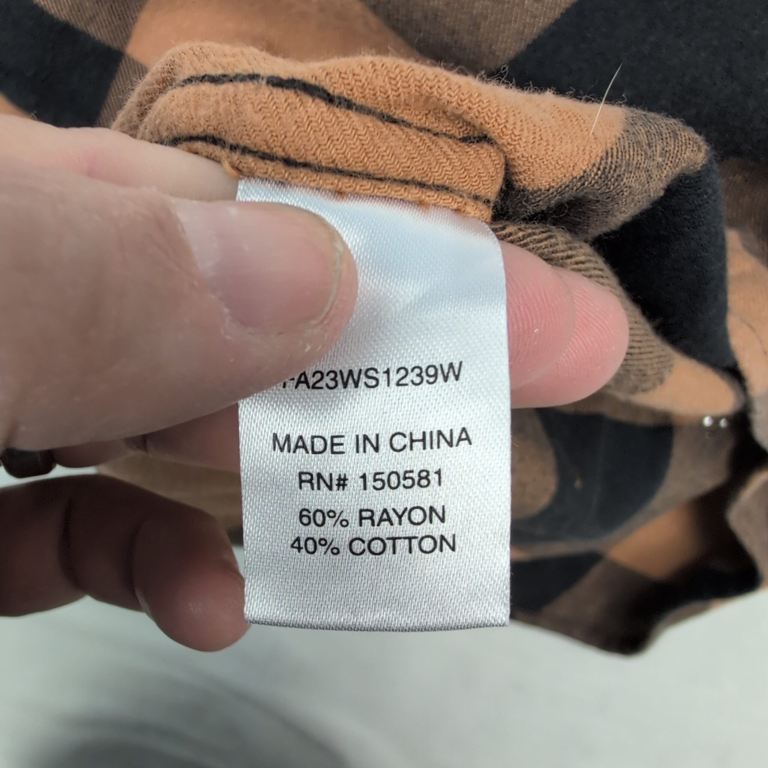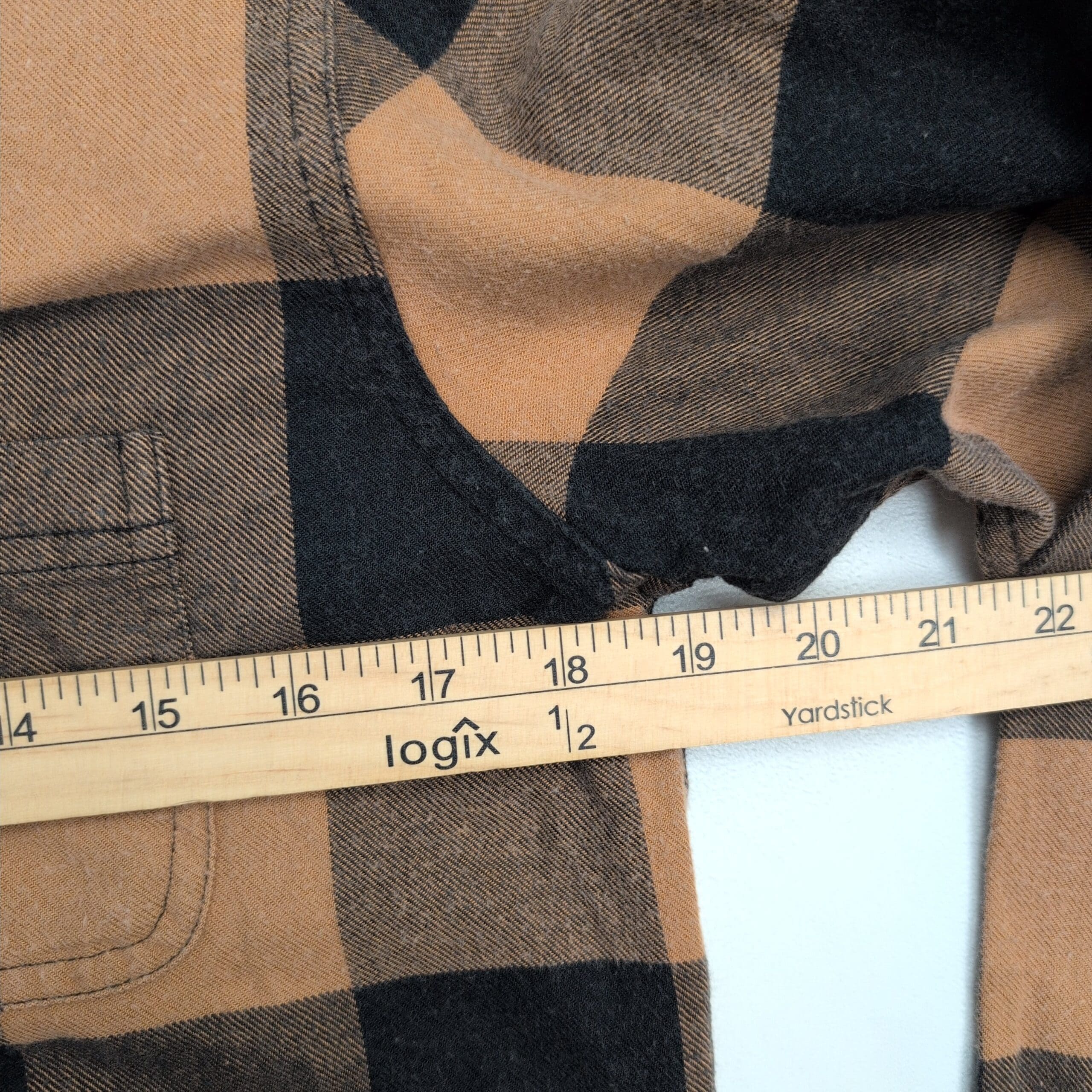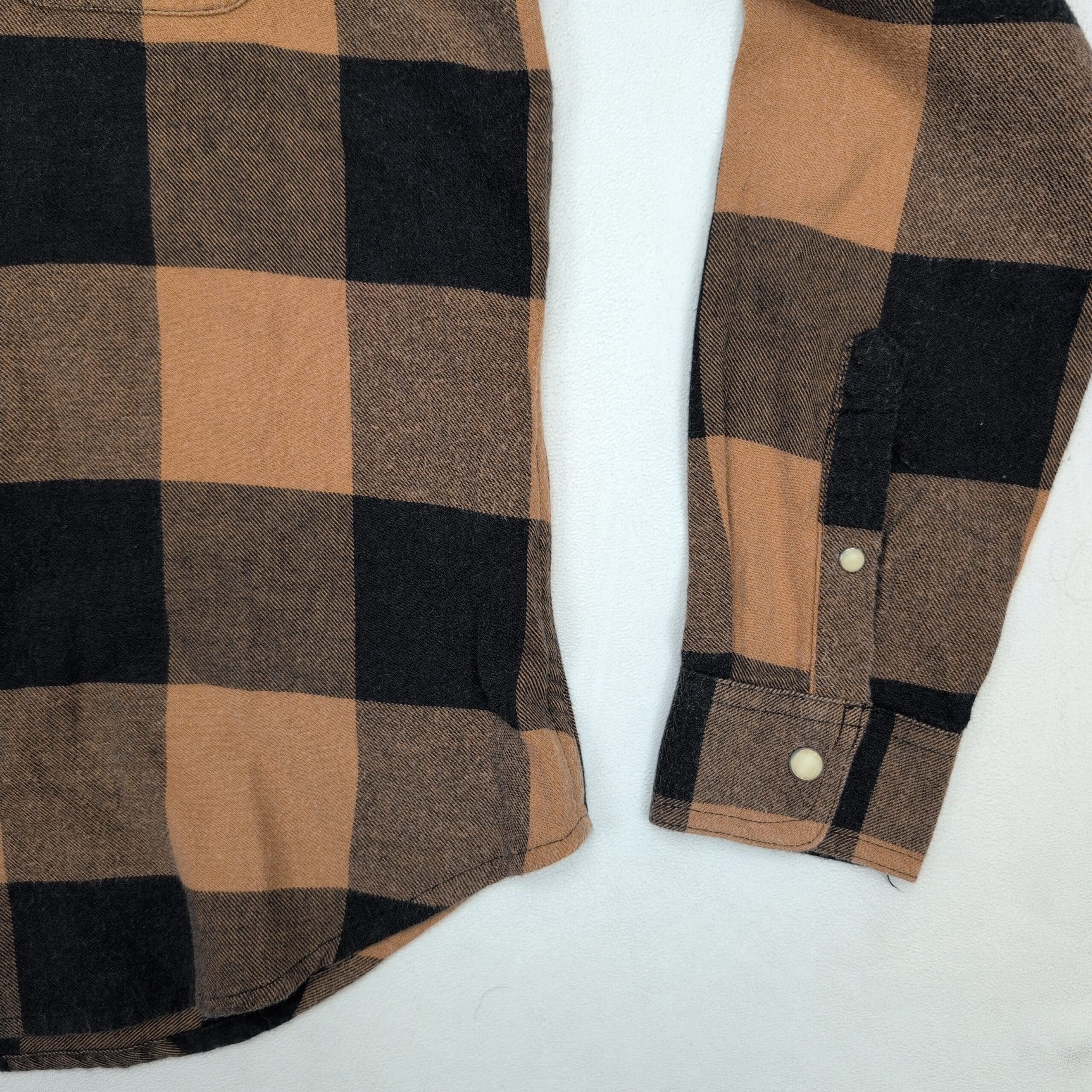 Flag & Anthem men’s XS buffalo plaid button-down shirt. New with tags — unworn. Tan and black check pattern, long sleeves, single chest pocket, button-front closure and classic curved hem. Casual, versatile style perfect for layering or everyday wear. Original tags attached and free of rips, stains, or flaws.