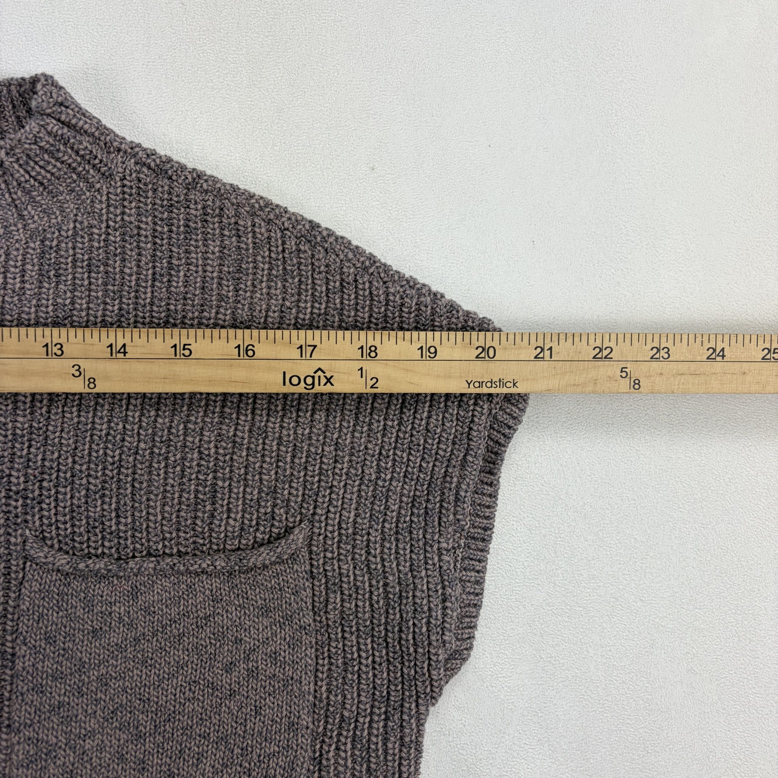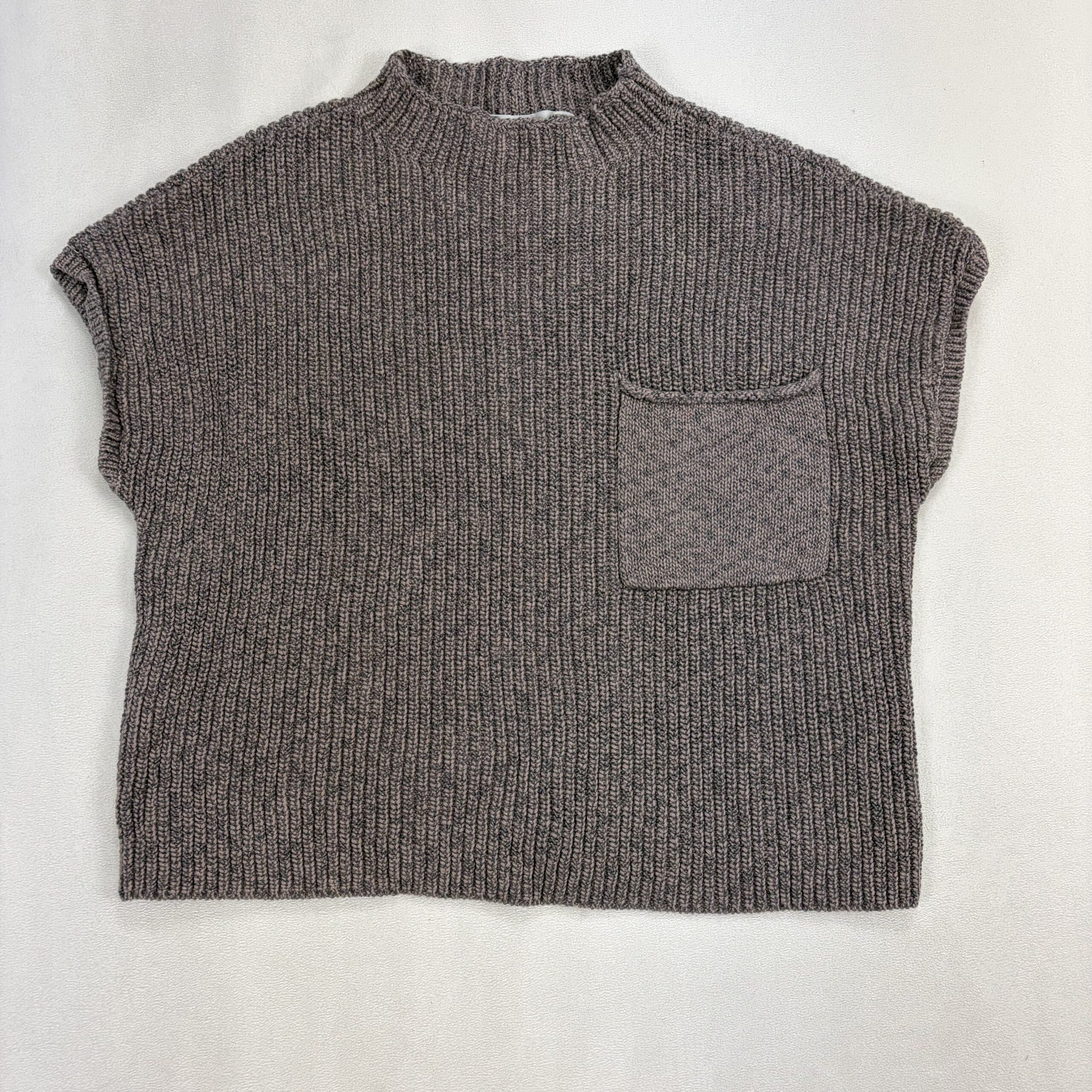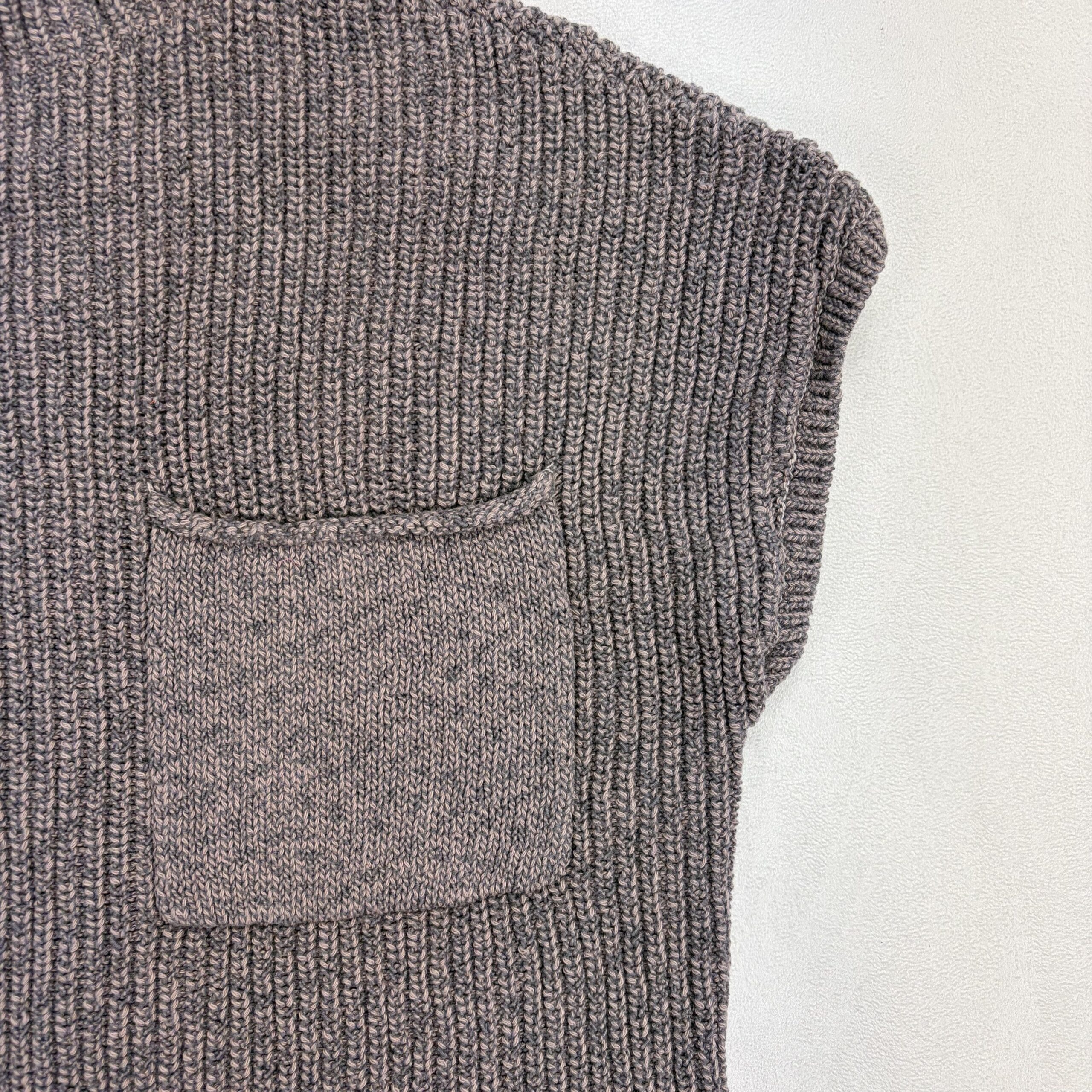 FP Beach sleeveless ribbed sweater vest in a muted weathered purple with a single front patch pocket. Features a crew neckline and relaxed, boxy silhouette that layers nicely over tees and dresses. Size: XS (standard).