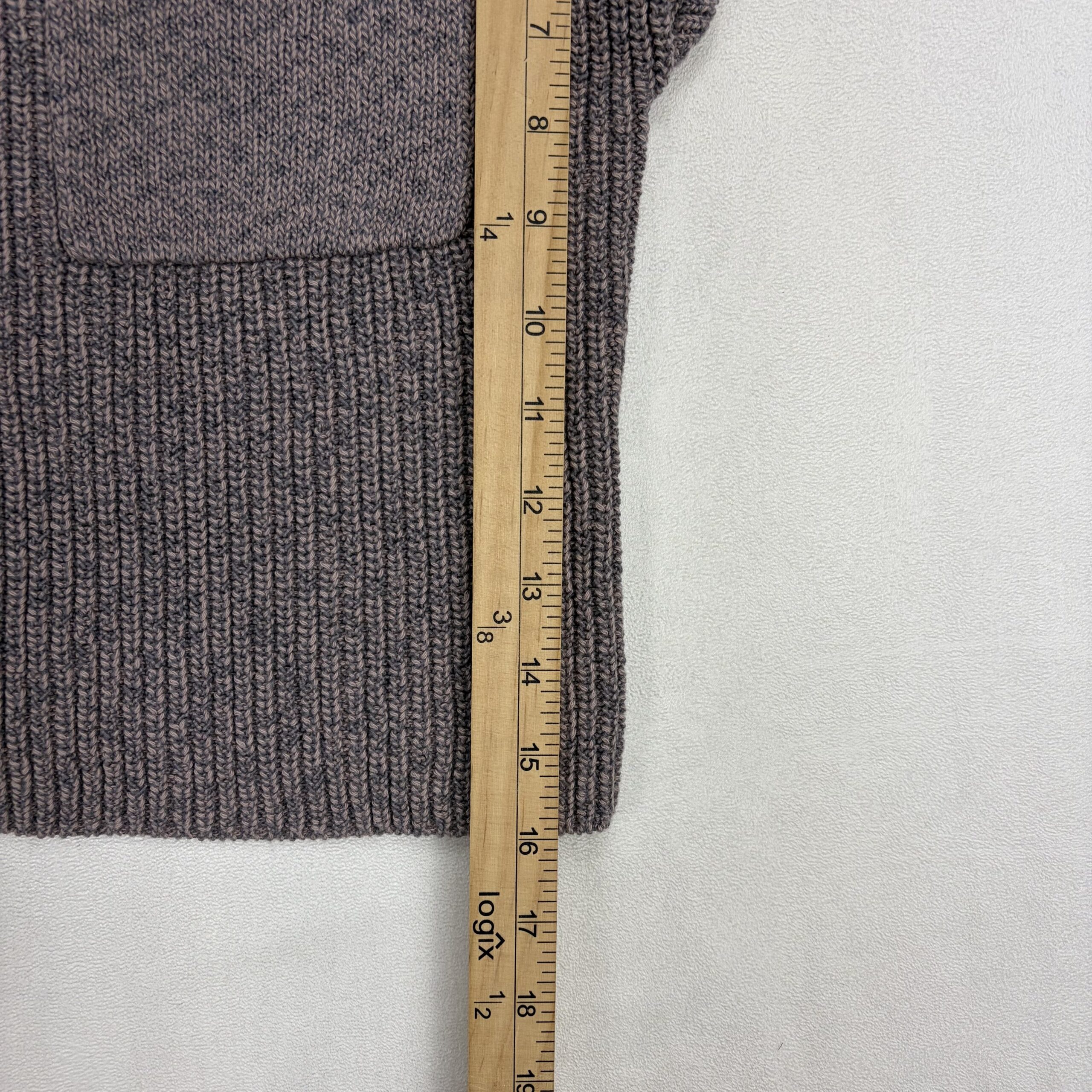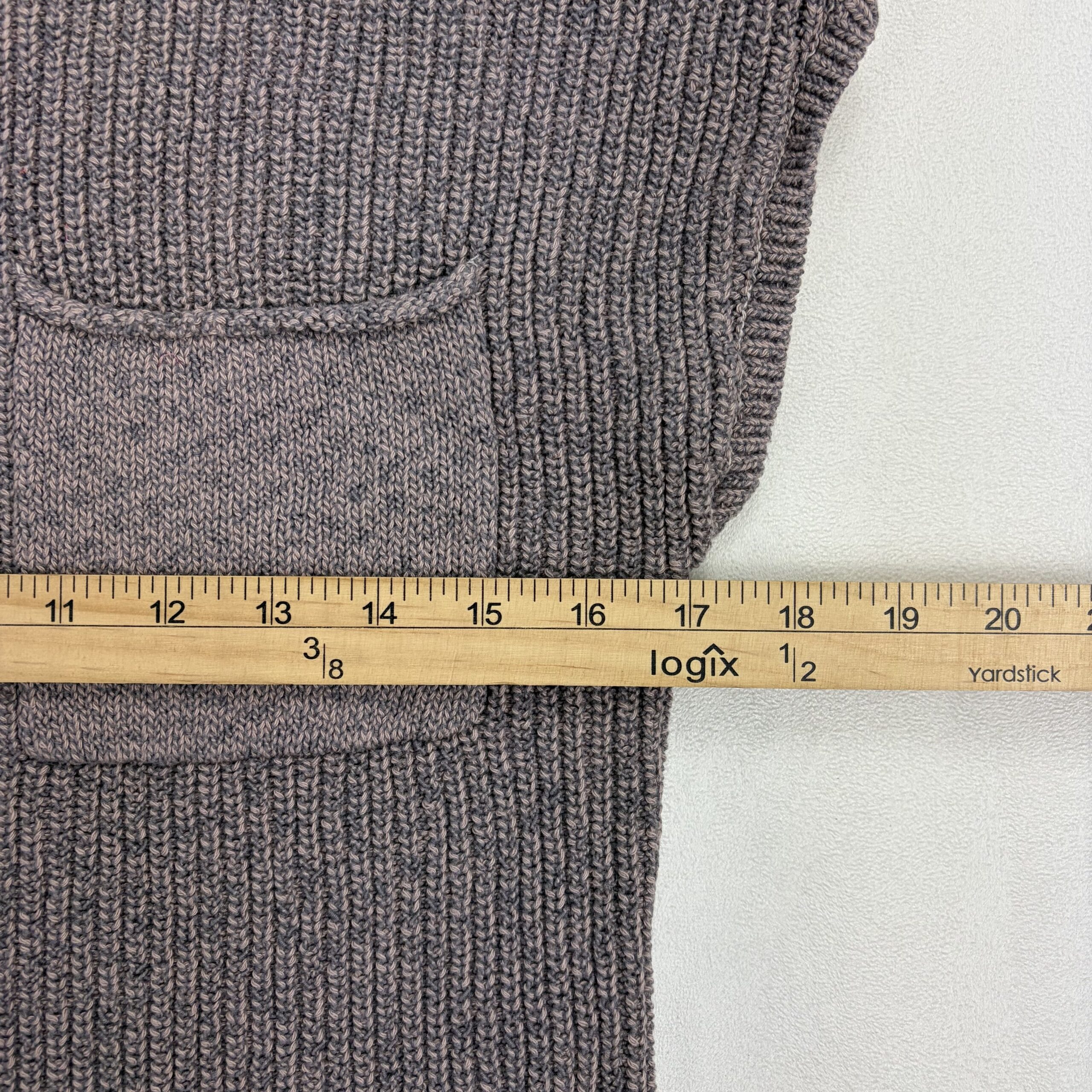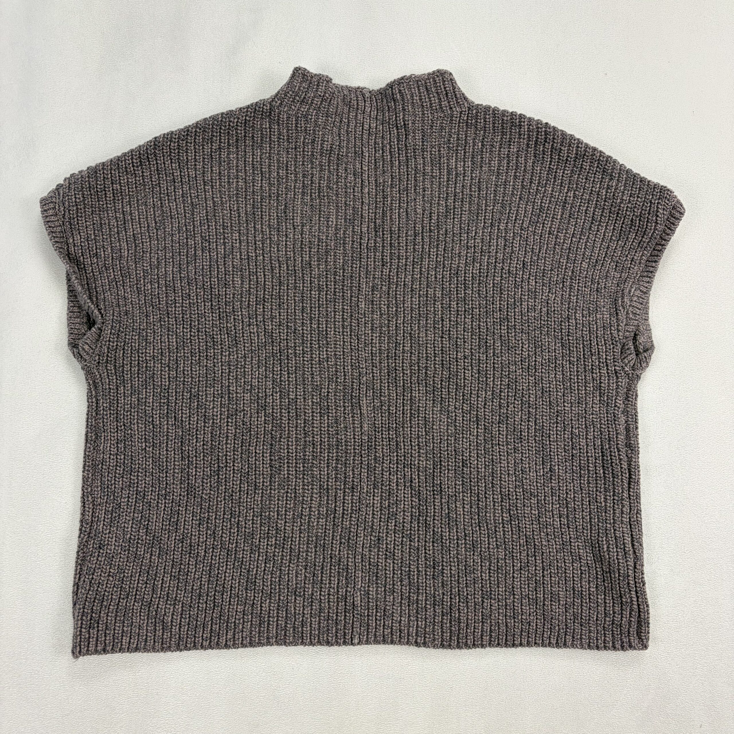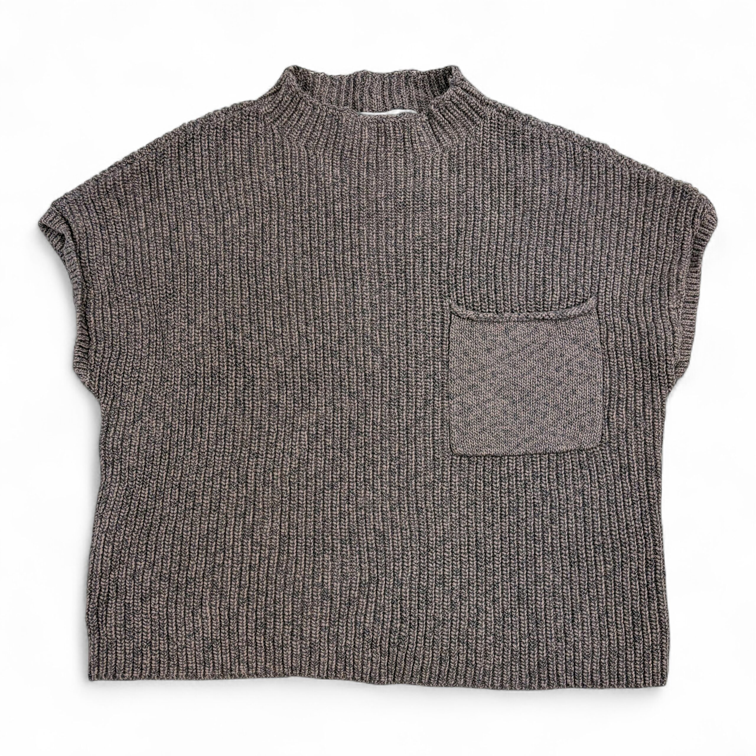 FP Beach sleeveless ribbed sweater vest in a muted weathered purple with a single front patch pocket. Features a crew neckline and relaxed, boxy silhouette that layers nicely over tees and dresses. Size: XS (standard).