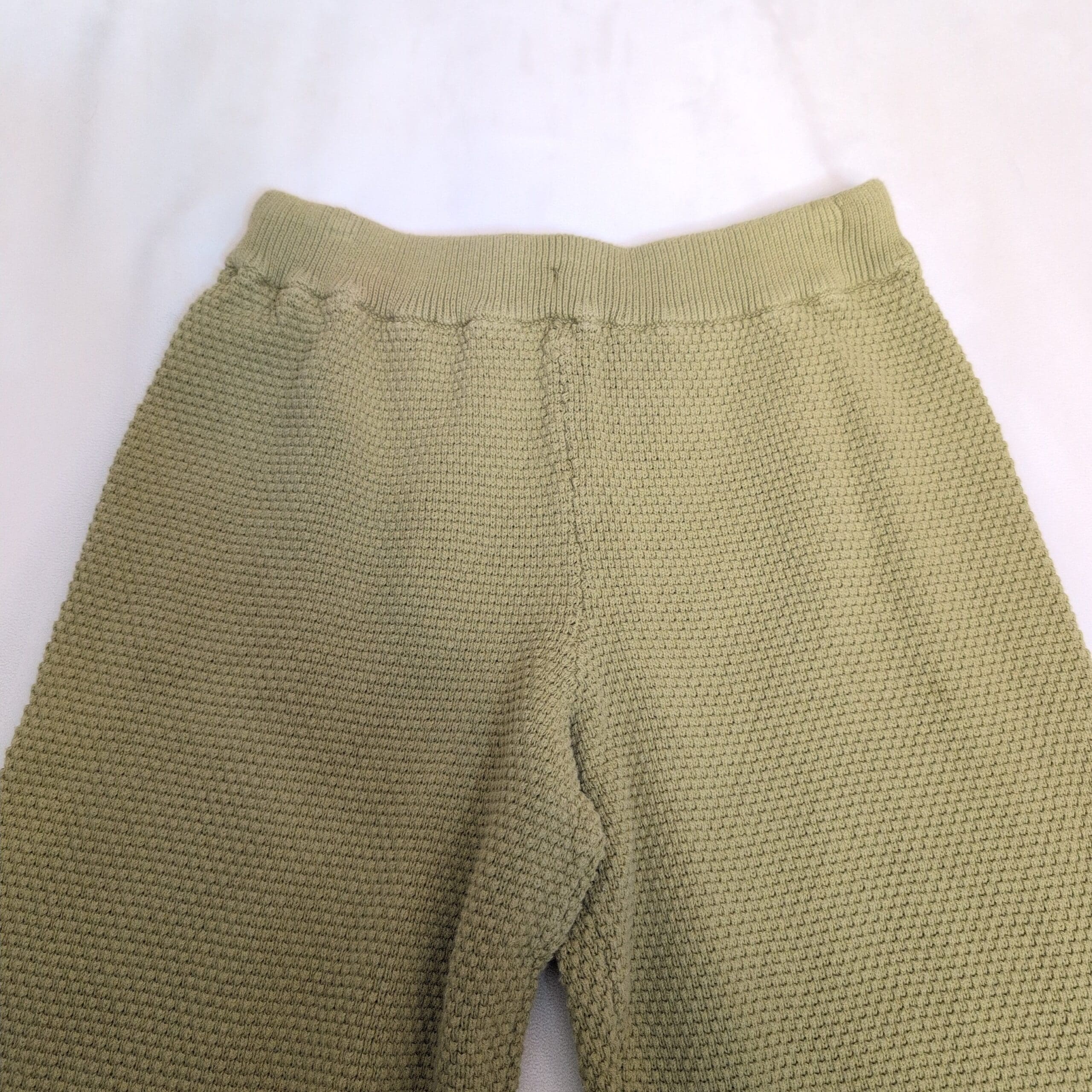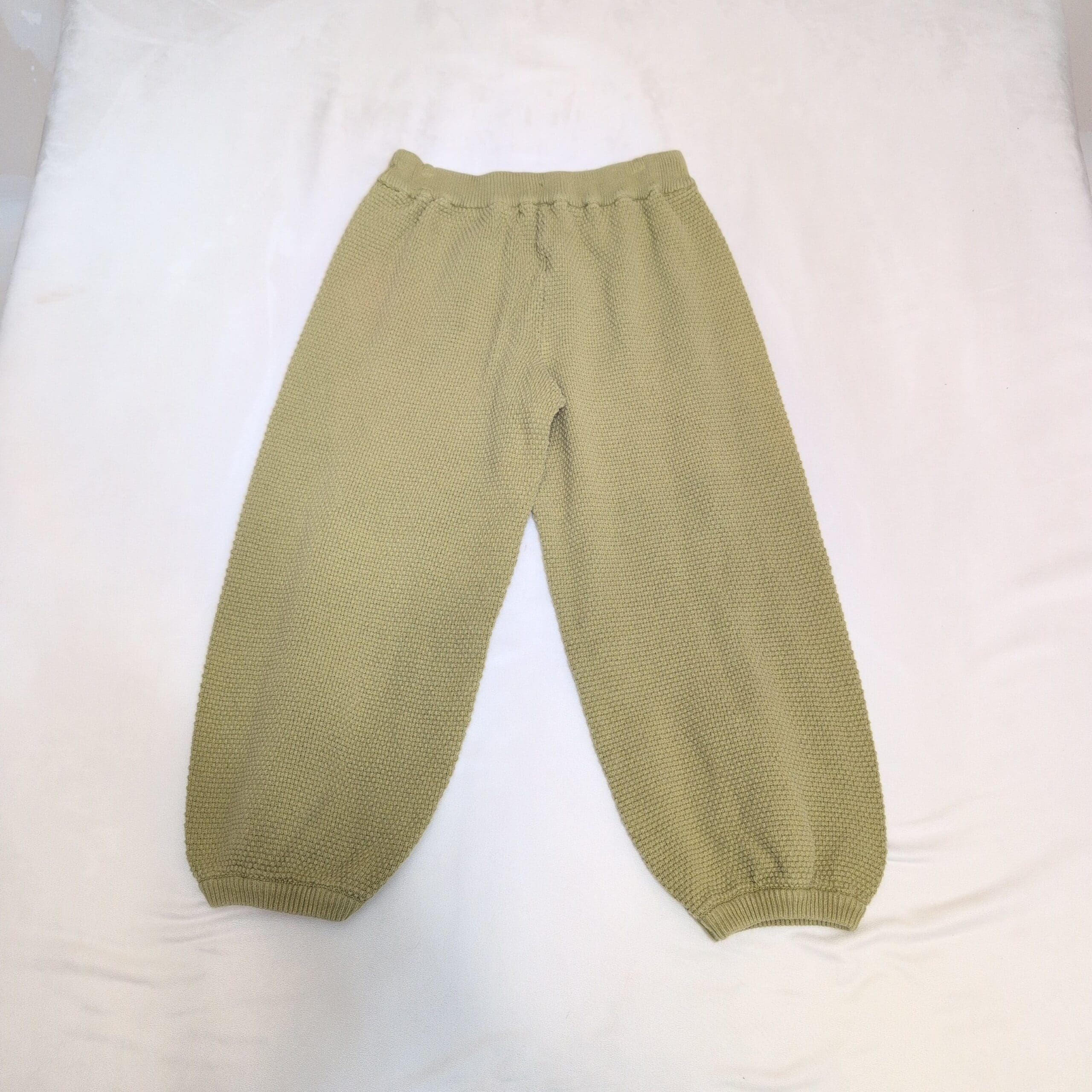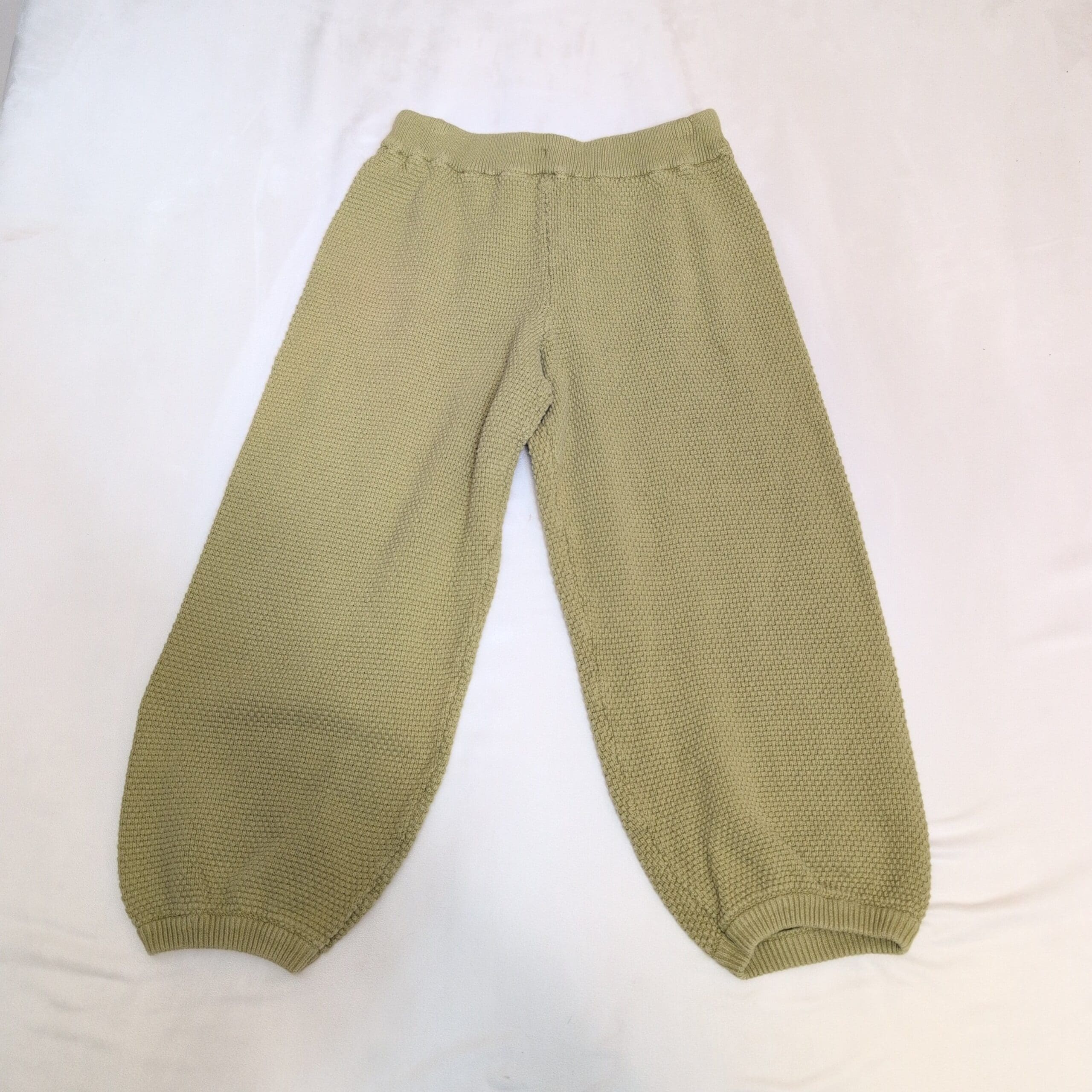 Free People Beach green knit sweater joggers in size S. Soft, textured sweater-knit fabric with an elastic waistband and ribbed cuffs creating a relaxed, slightly balloon silhouette. Cozy and casual—perfect for lounging at home or styling for an effortless street look.
