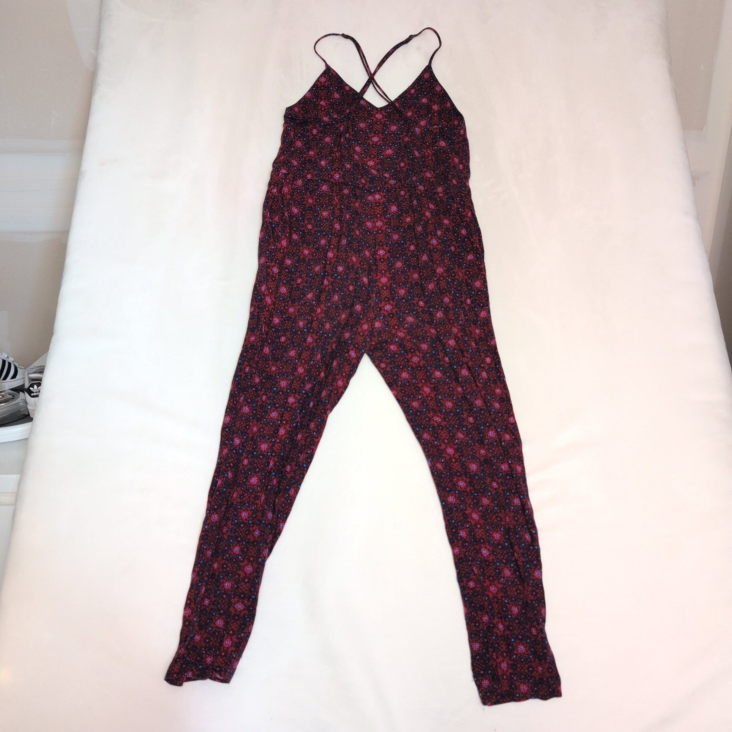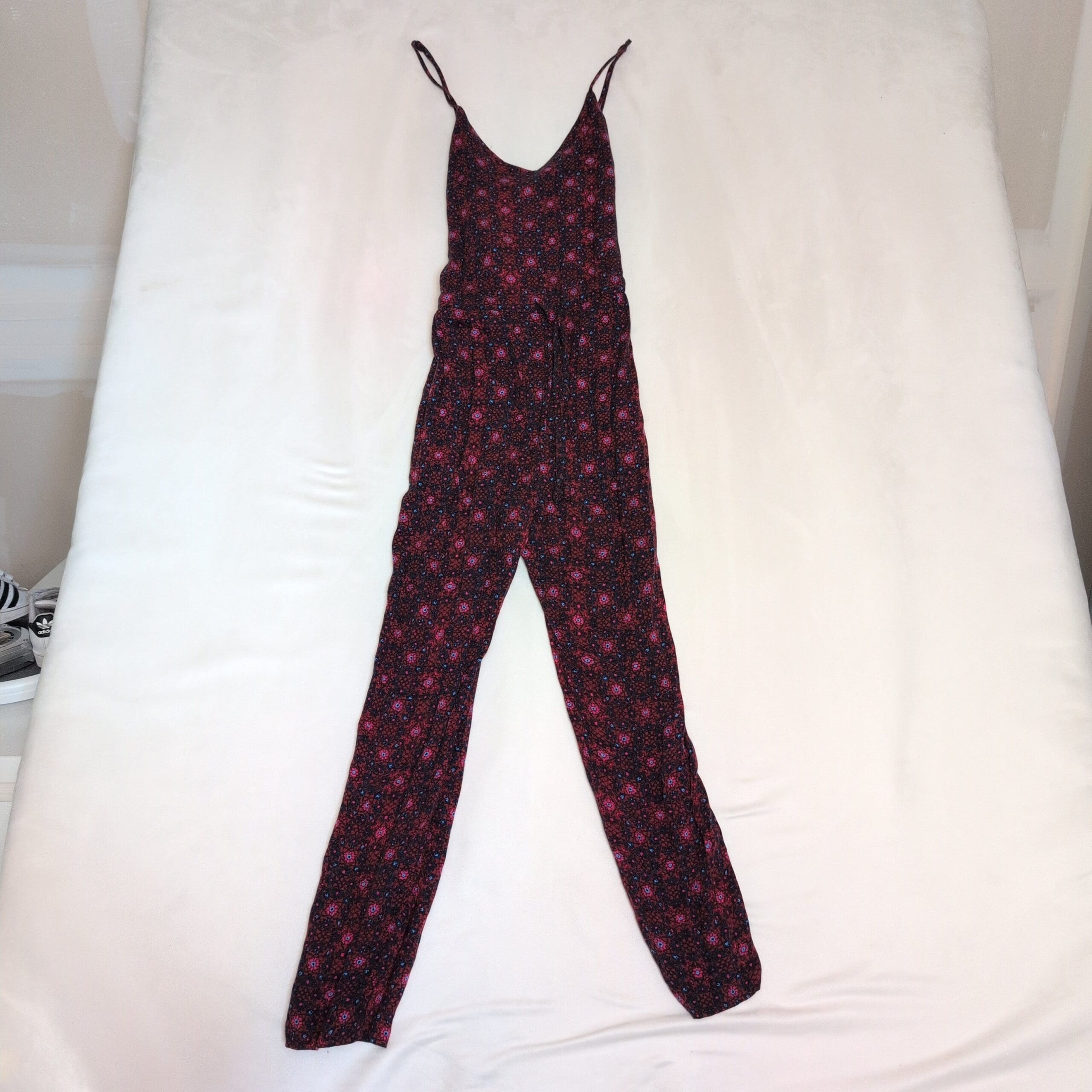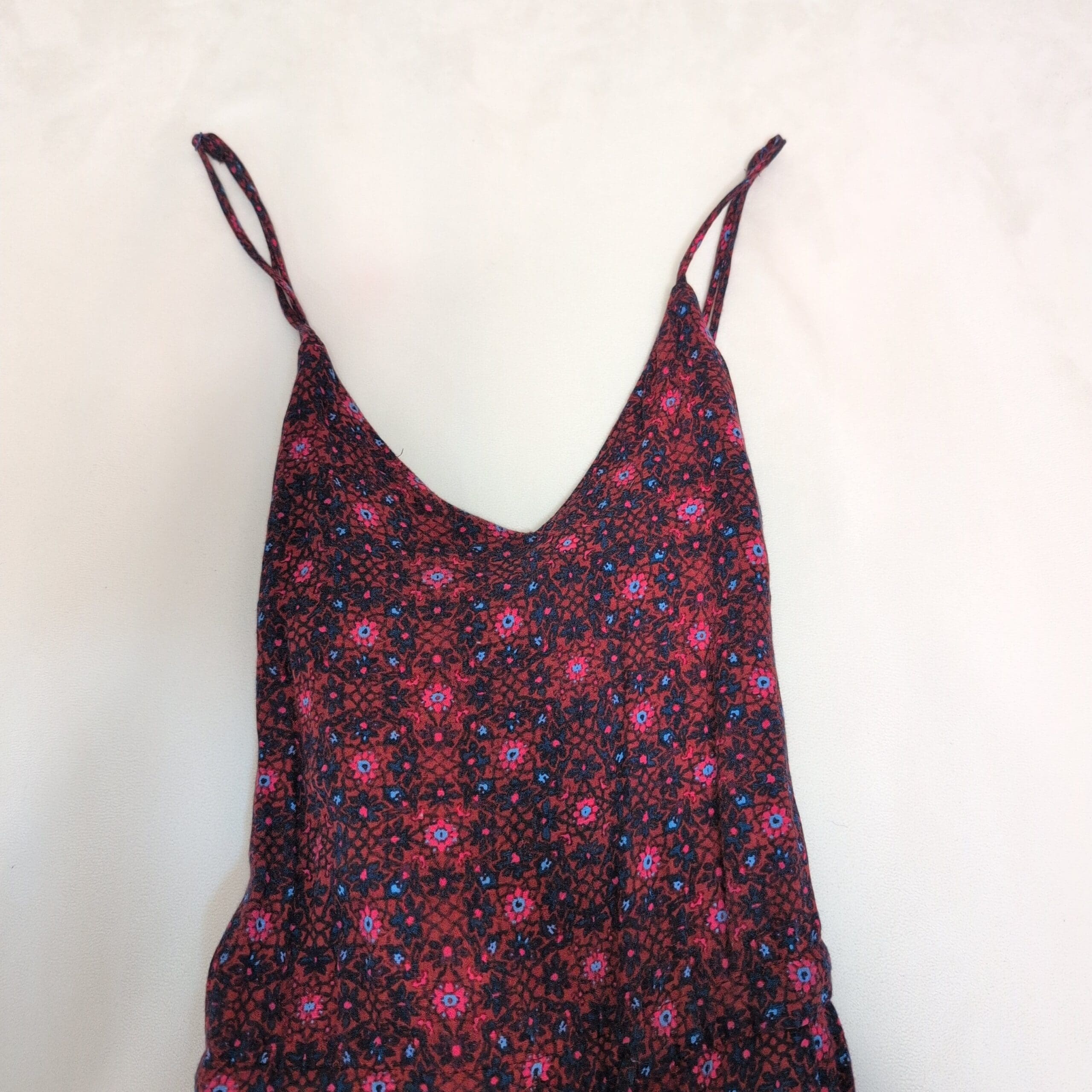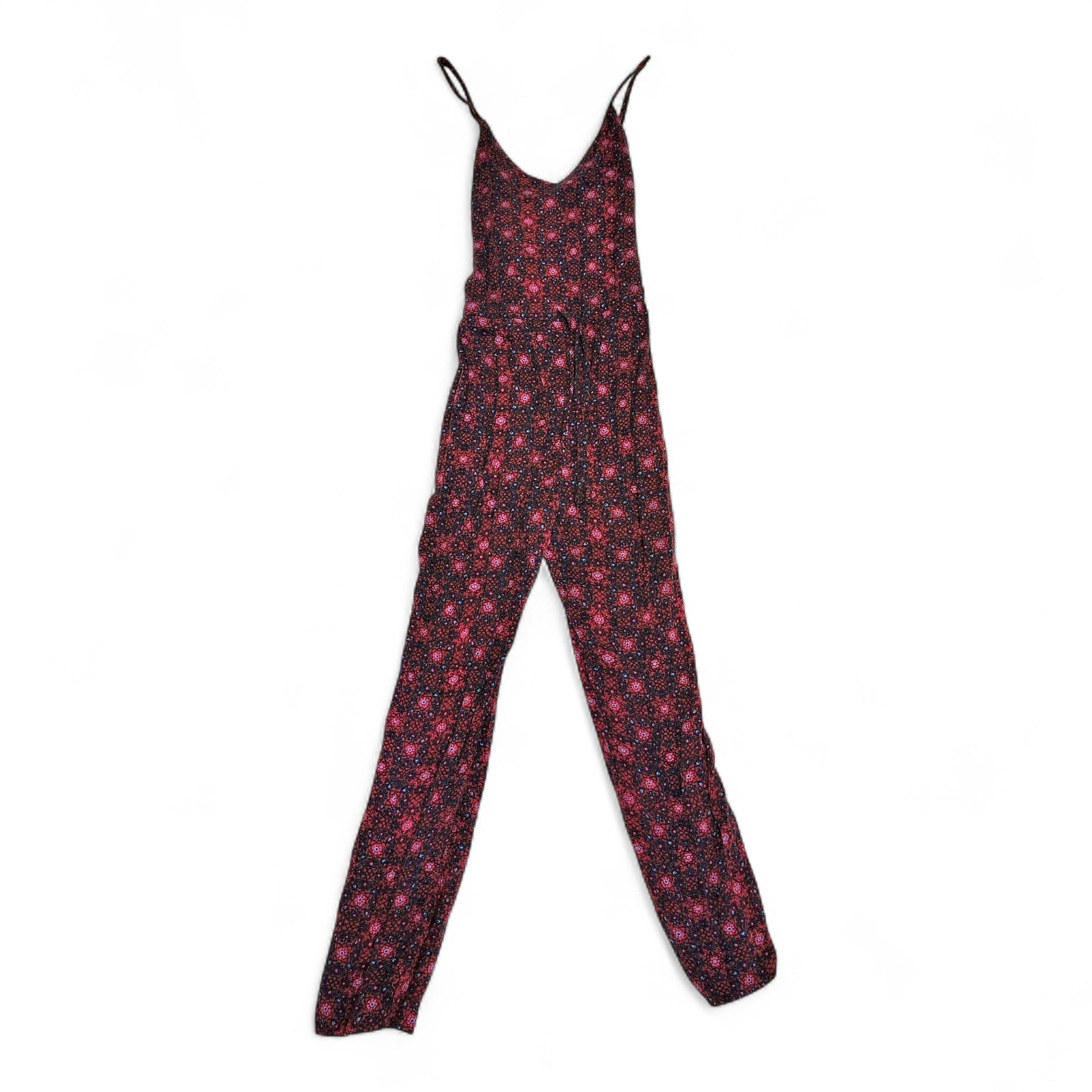 Free People Floral V-Neck Jumpsuit XS — Burgundy & Blue