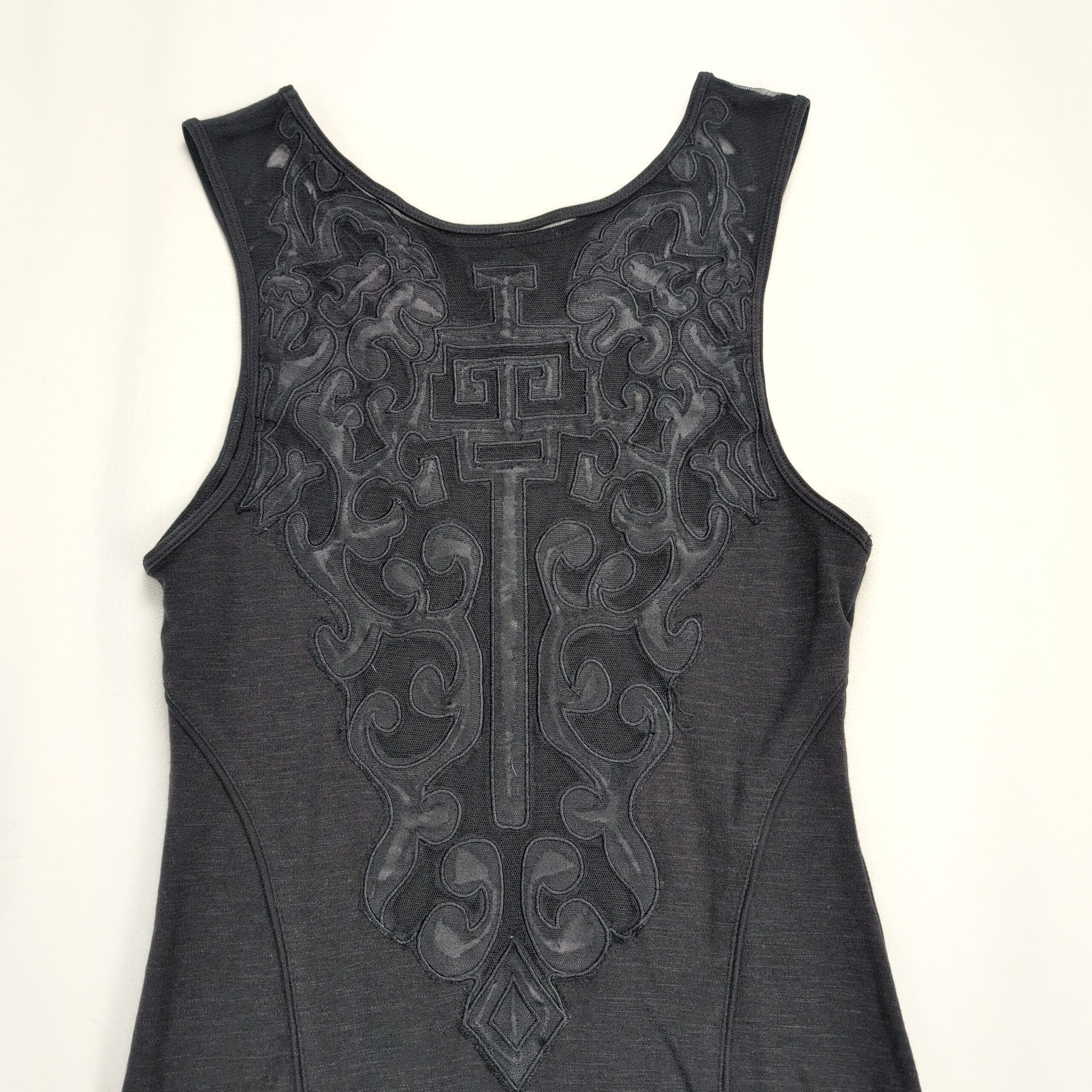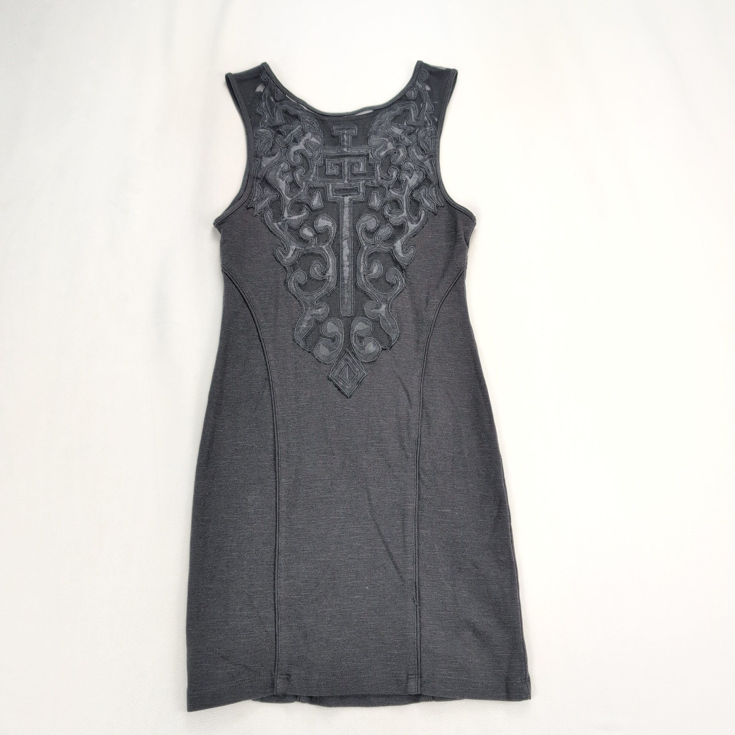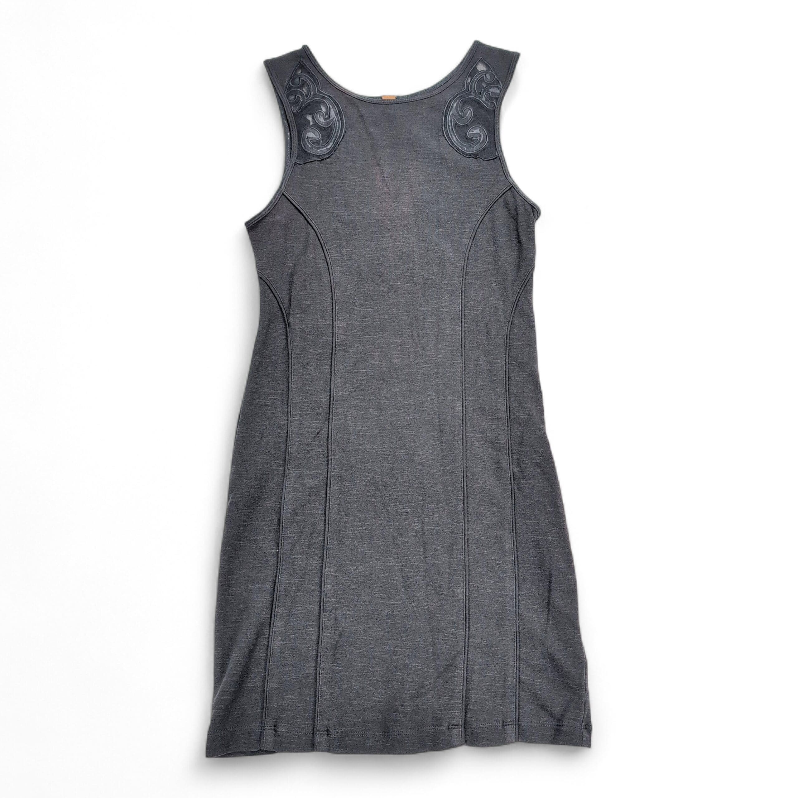 Free People Gray Fitted Tank Mini Dress Embroidered Shoulders S