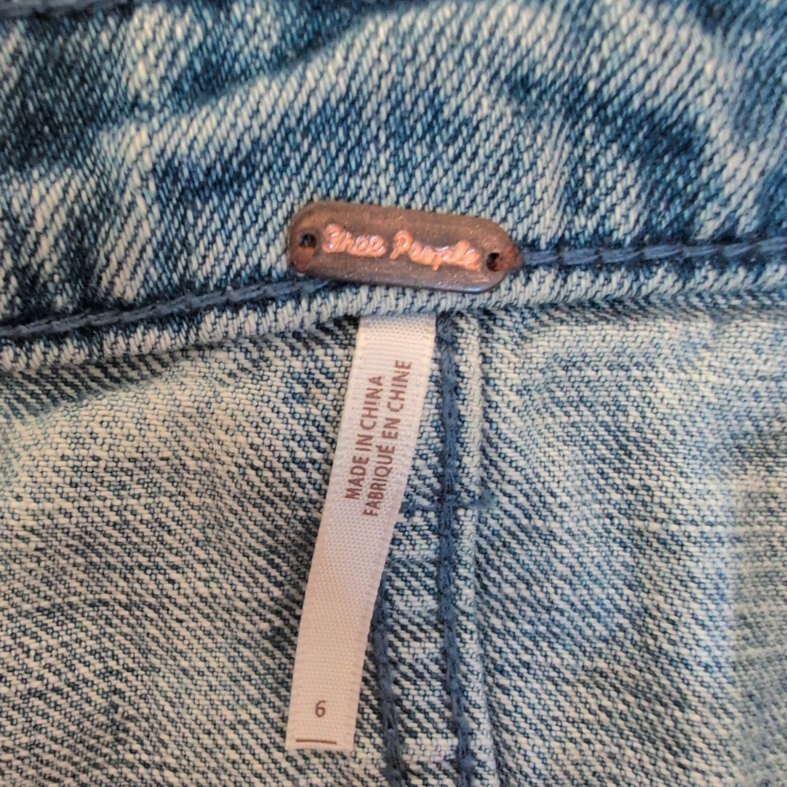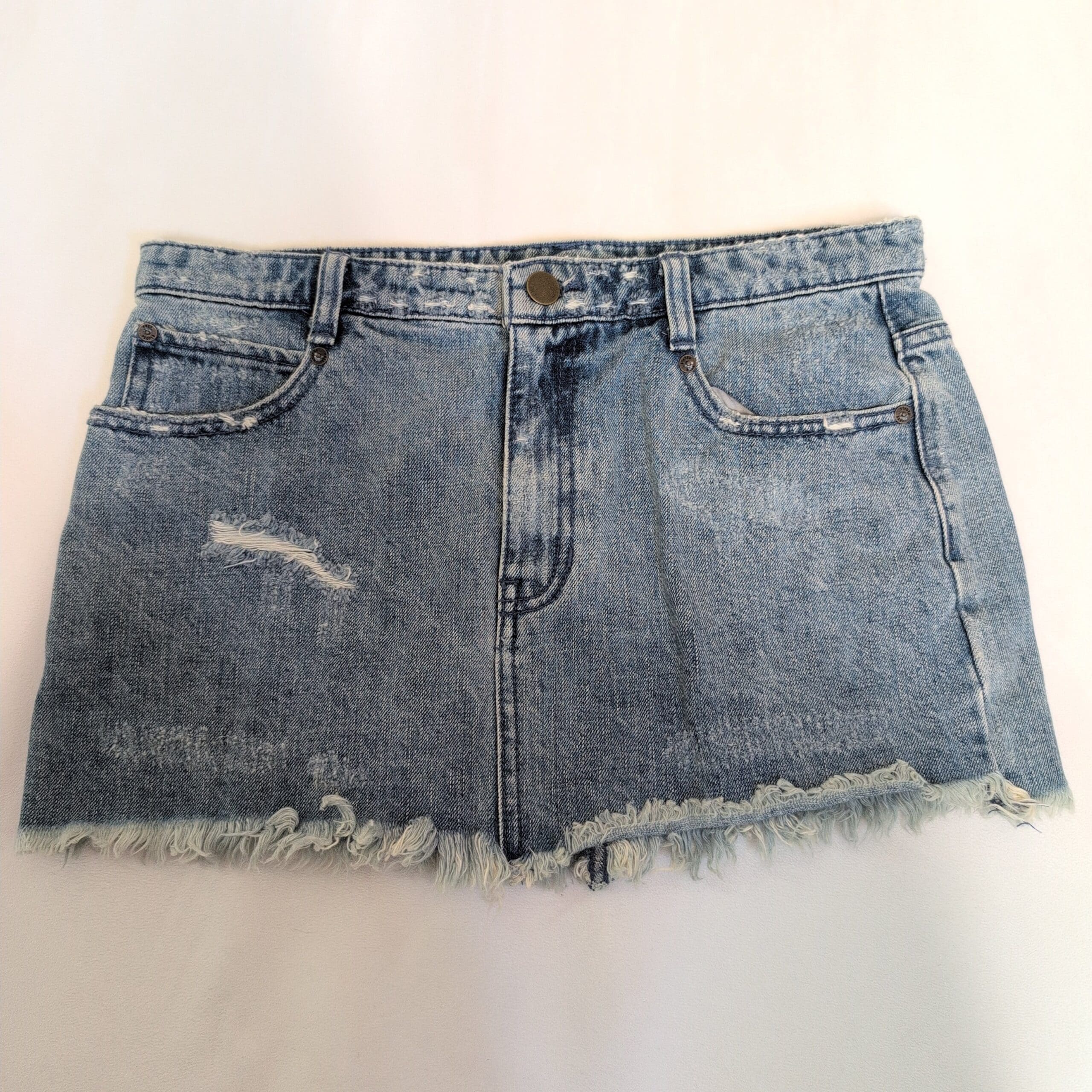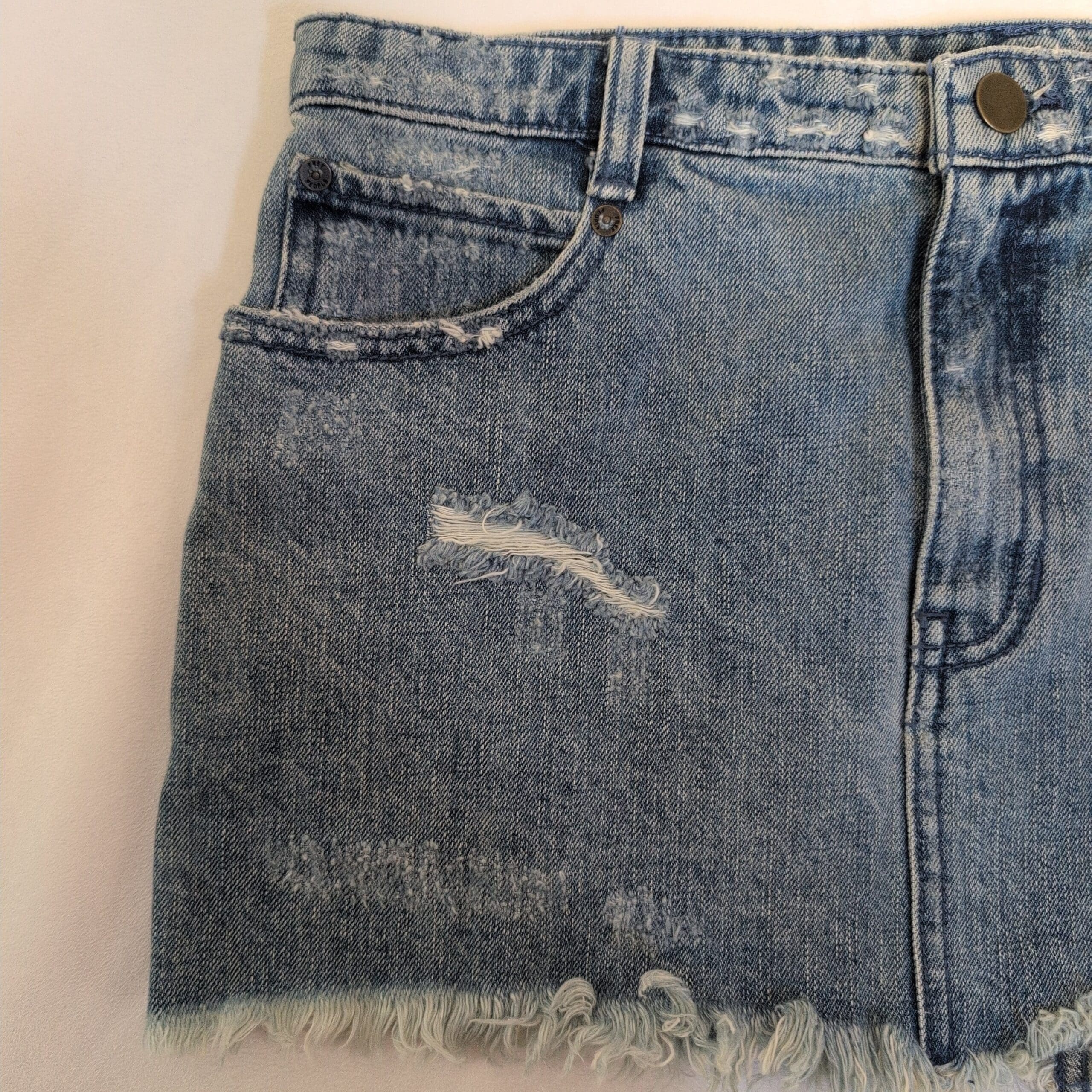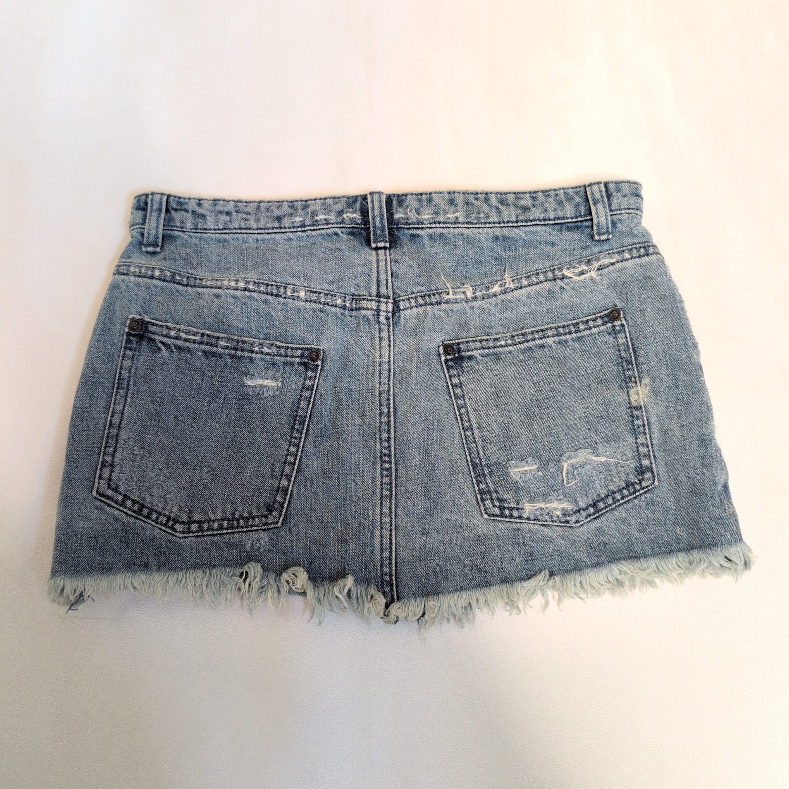 Free People Light Wash Distressed Denim Mini Skirt – Size 6