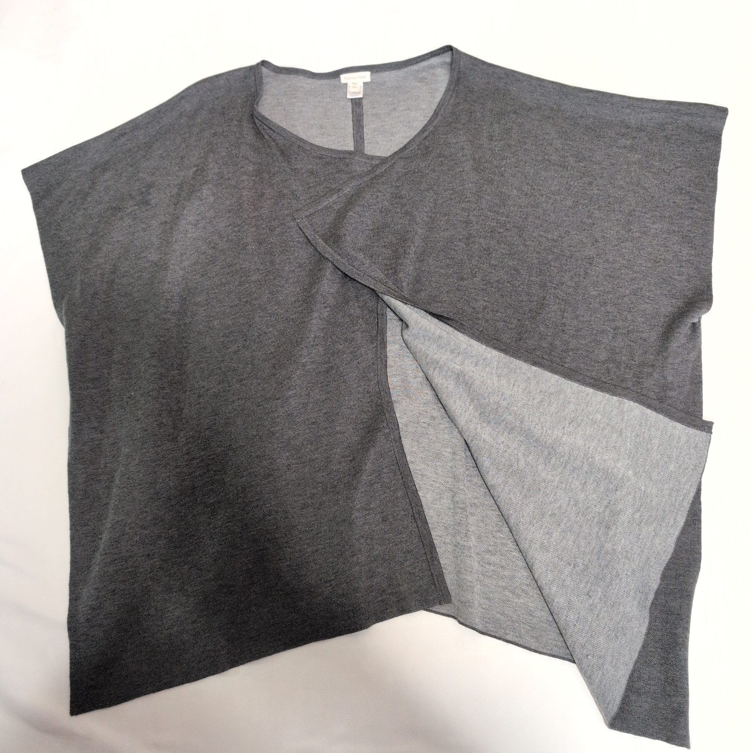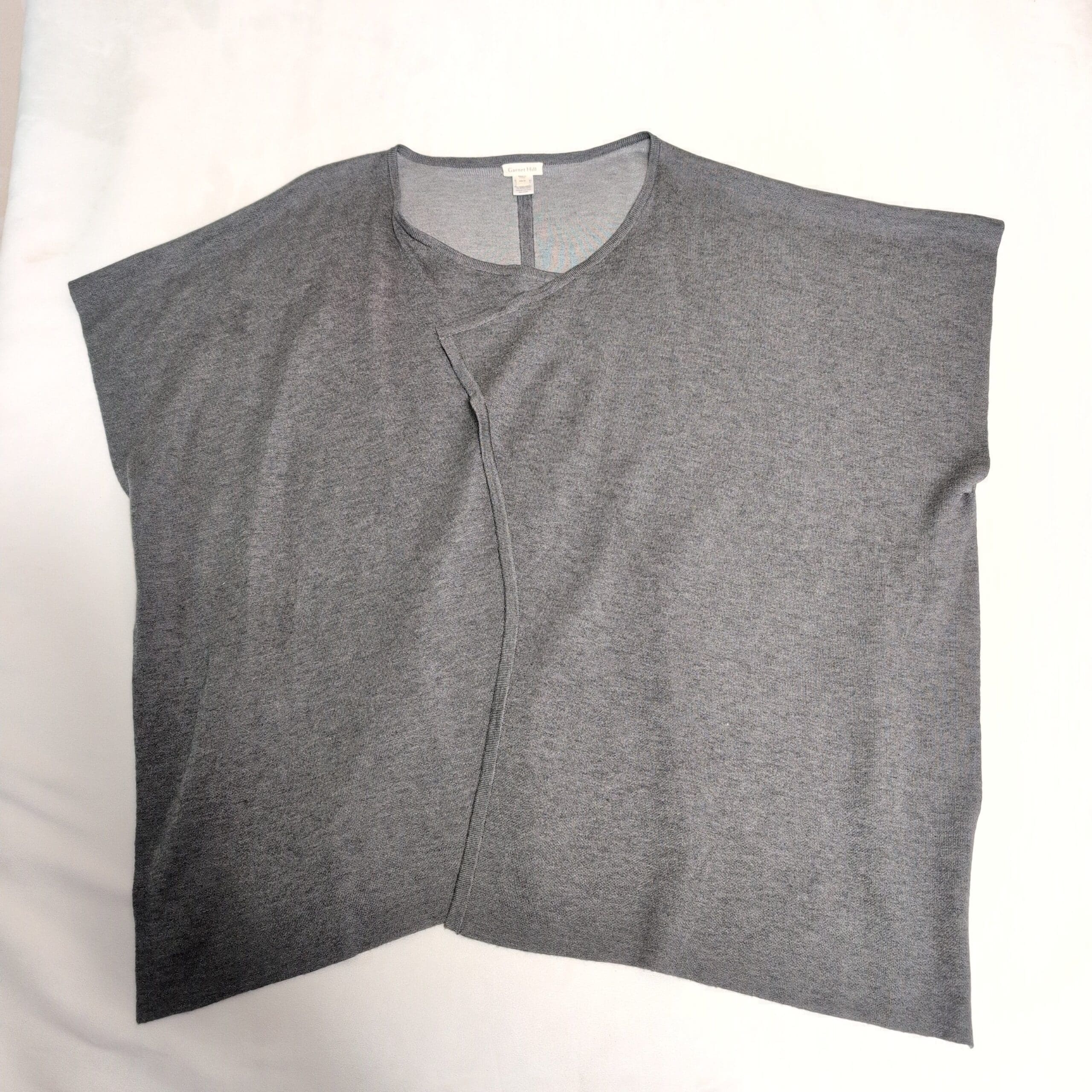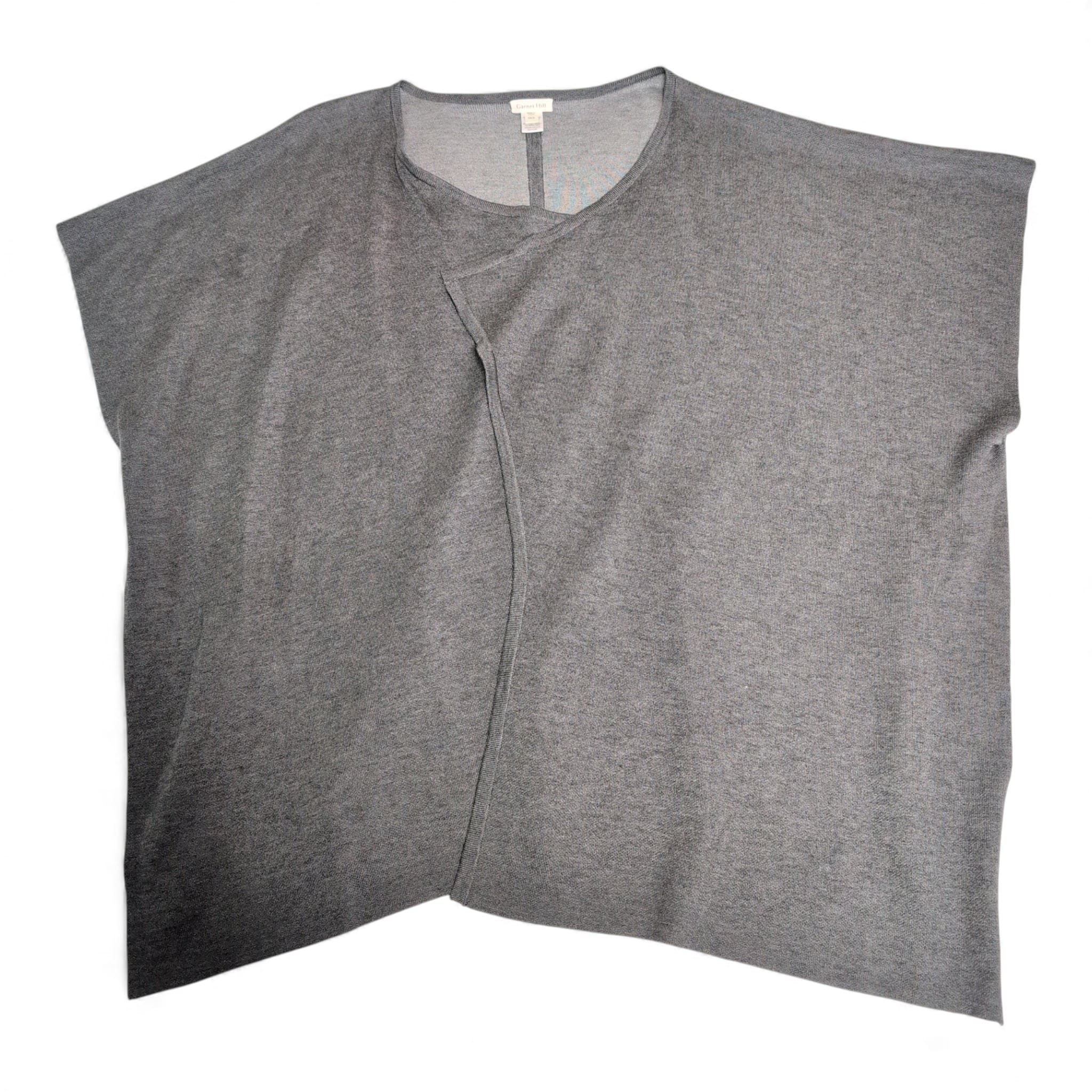 Lightweight Garnet Hill gray open-front cardigan in size XS. Features an asymmetrical drape and relaxed short sleeves for effortless layering. Soft knit silhouette pairs easily with jeans, skirts, or dresses — a versatile closet staple. Please see photos for details and condition.