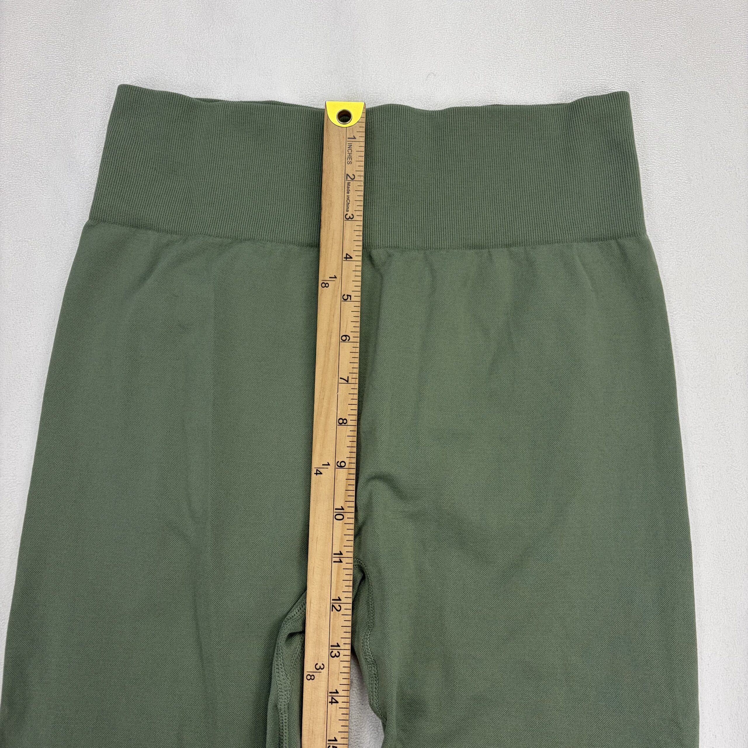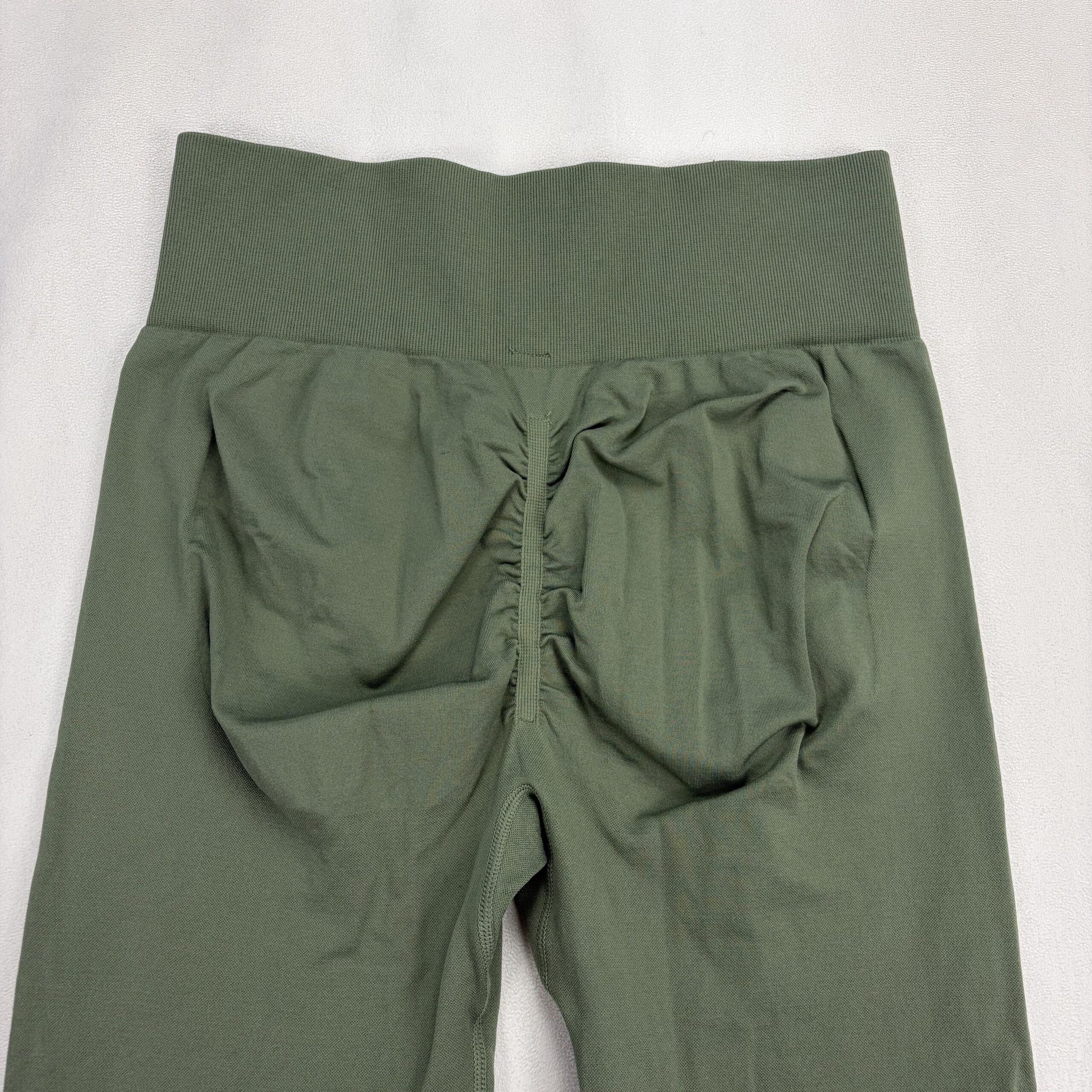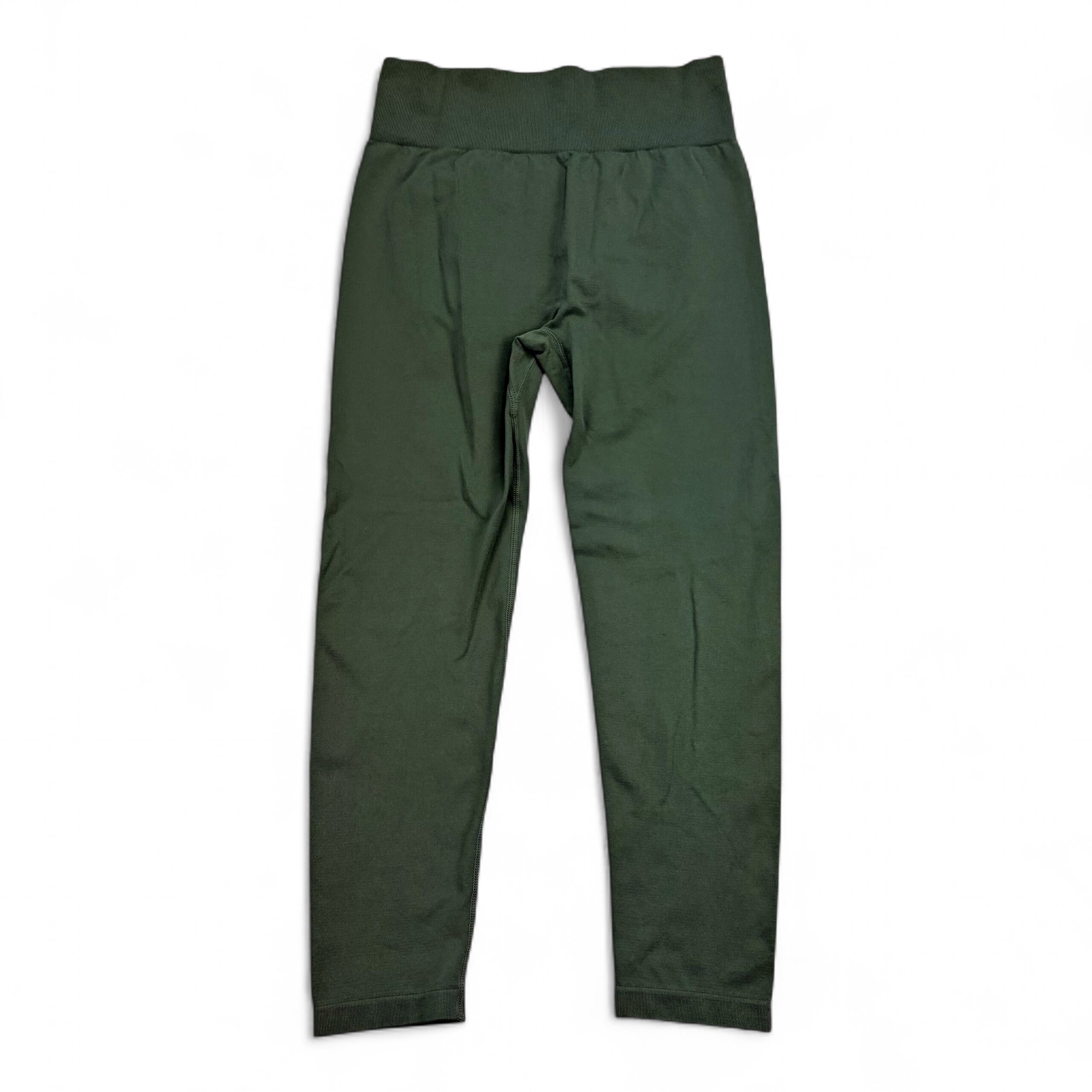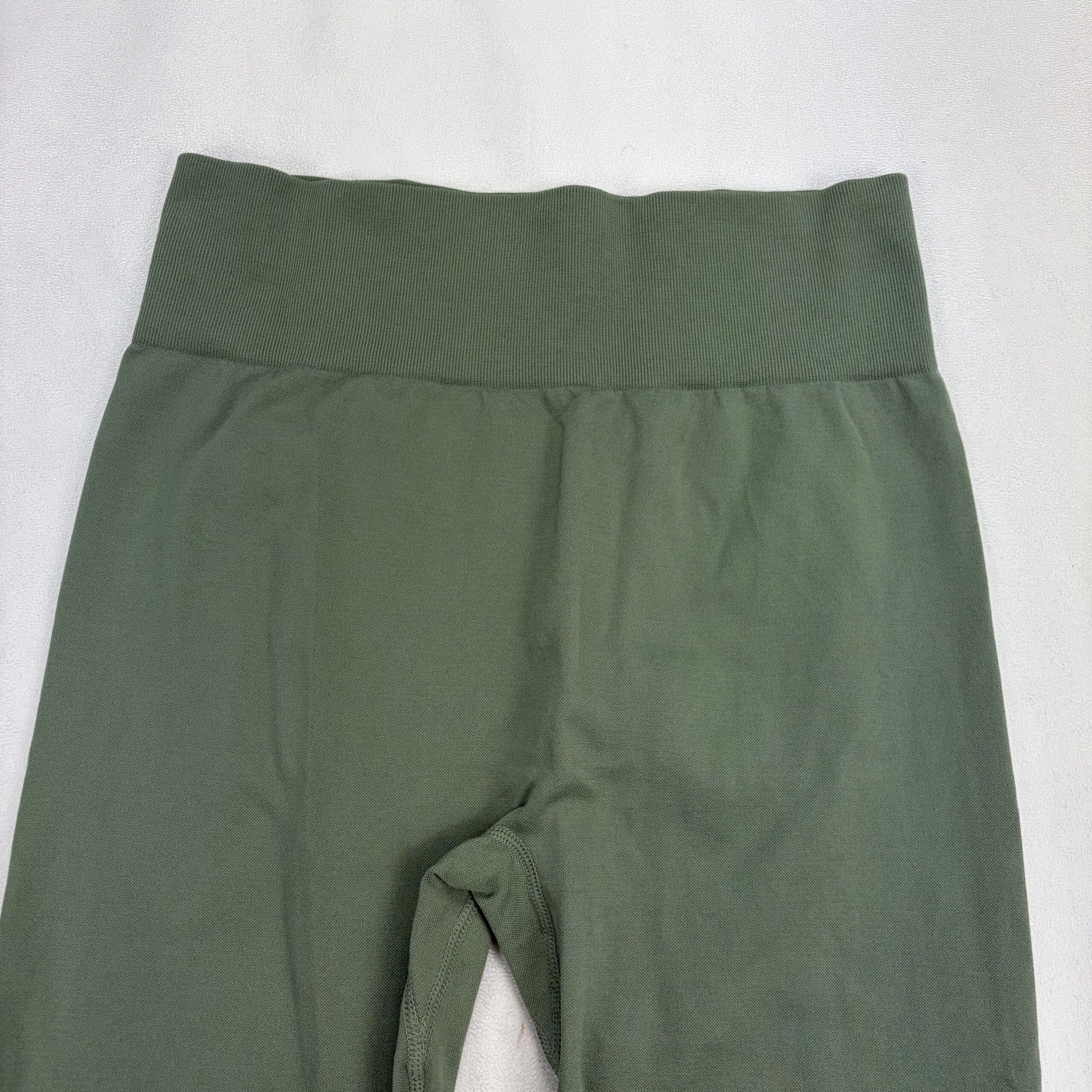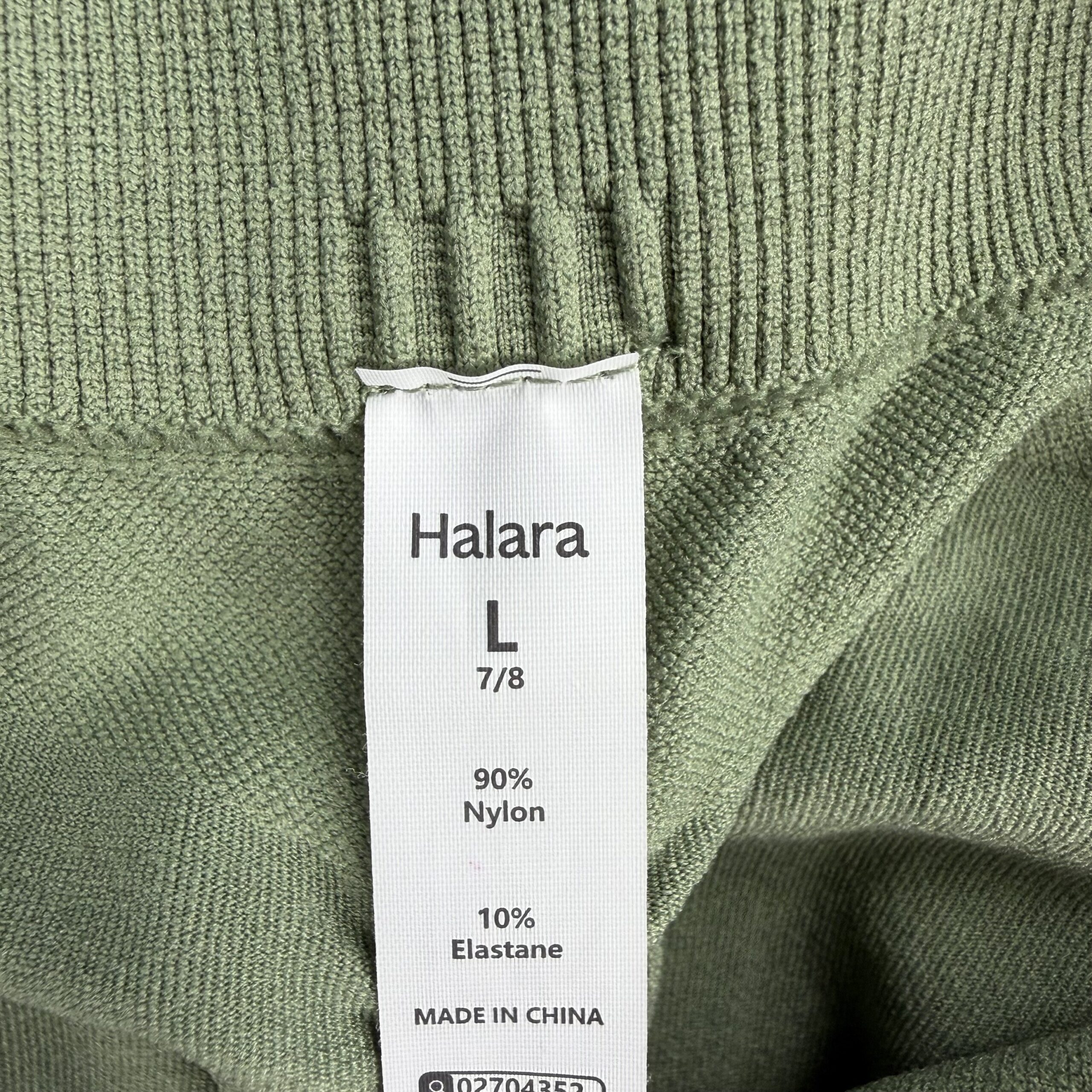Halara high-waist full-length leggings in olive green. Size L. Wide supportive waistband with a soft, stretchy knit for comfortable movement—ideal for yoga, workouts, or everyday athleisure. Clean overall and free of major rips, tears, stains, or flaws; excellent used condition. Typical light wear may be present. Please review photos for color and details.