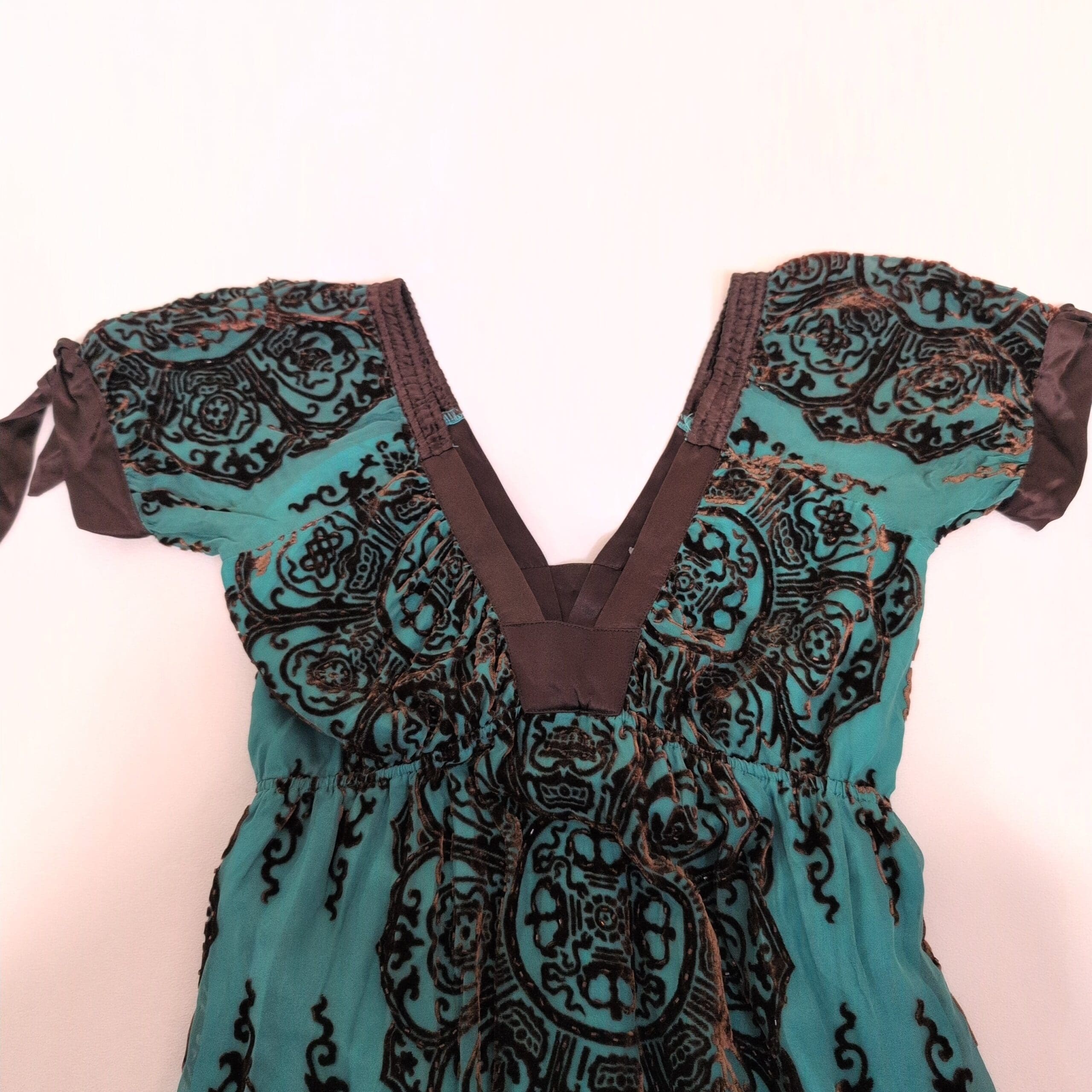 #HaleBob #BohoStyle #WomensDress #SizeS #EmpireWaist #TieSleeves #BurnoutPrint