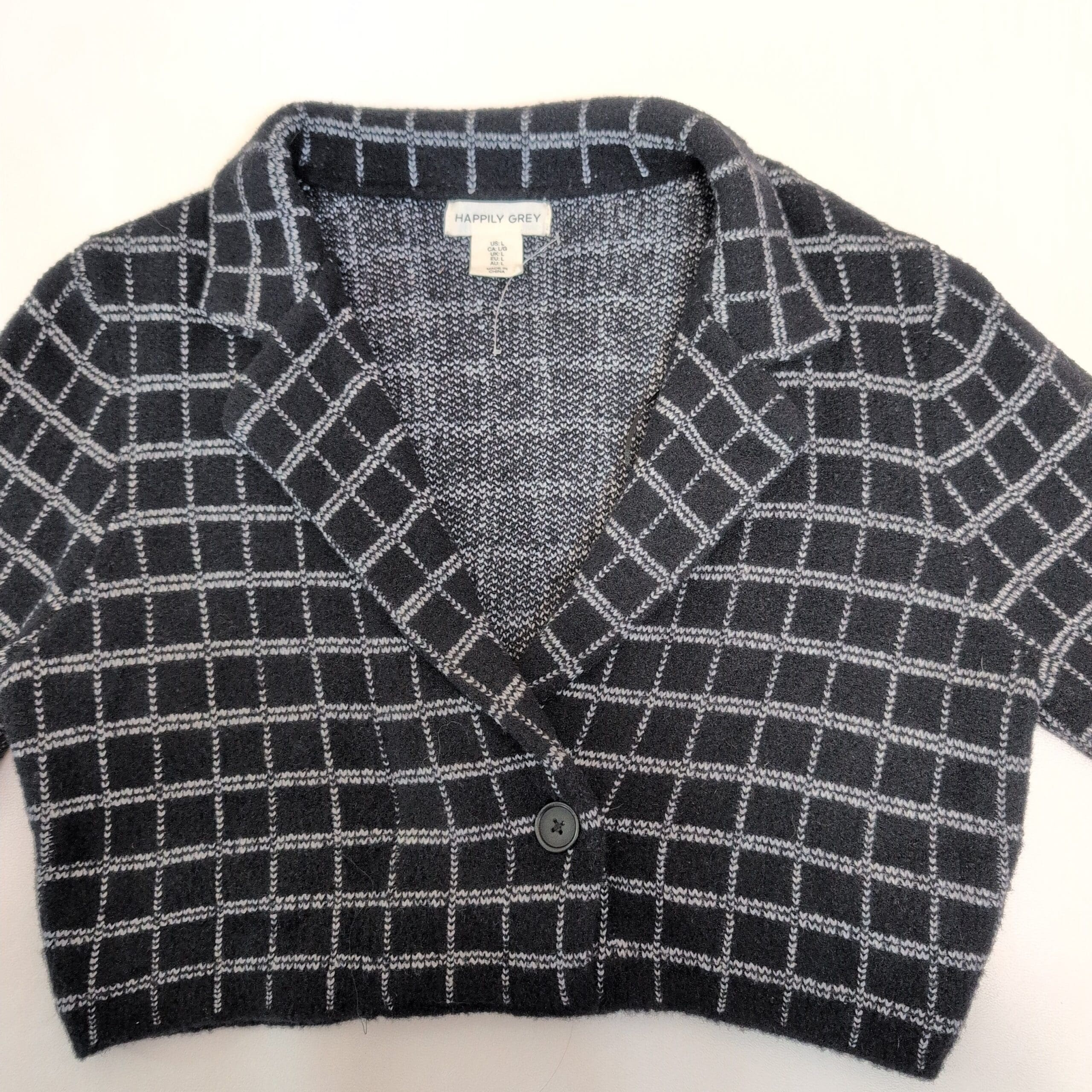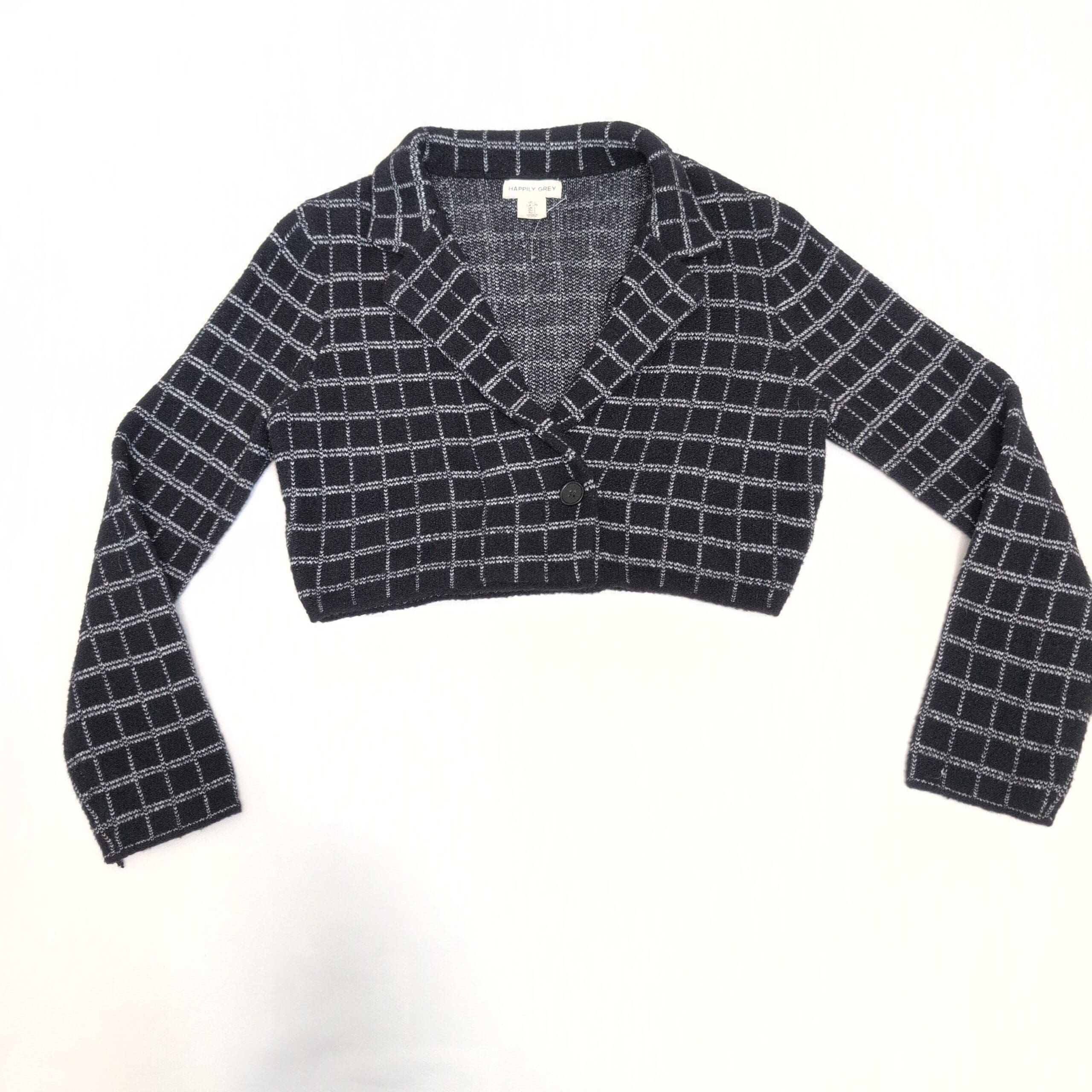 #HappilyGrey #CroppedCardigan #VNeck #BlackCardigan #Windowpane #SizeL #Women