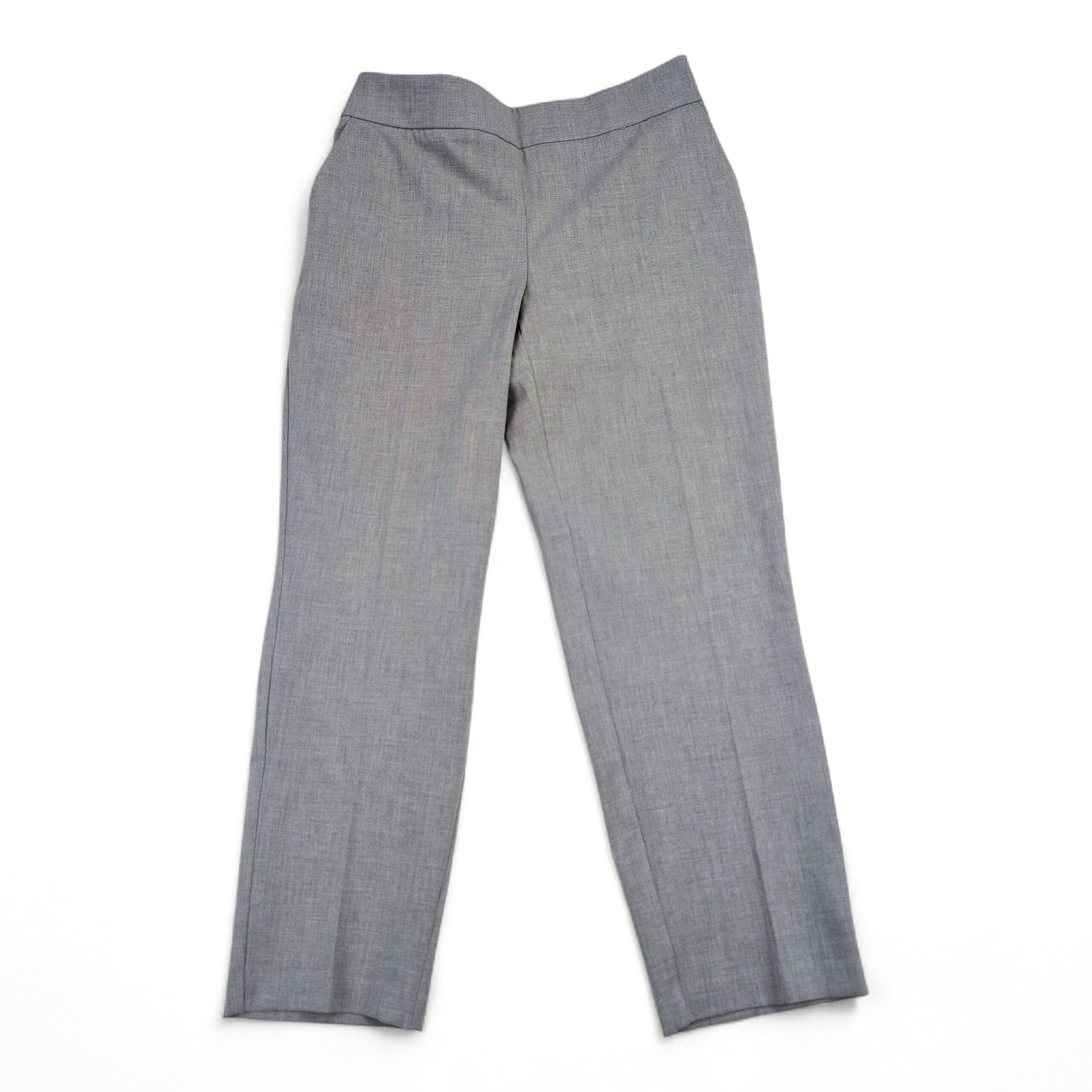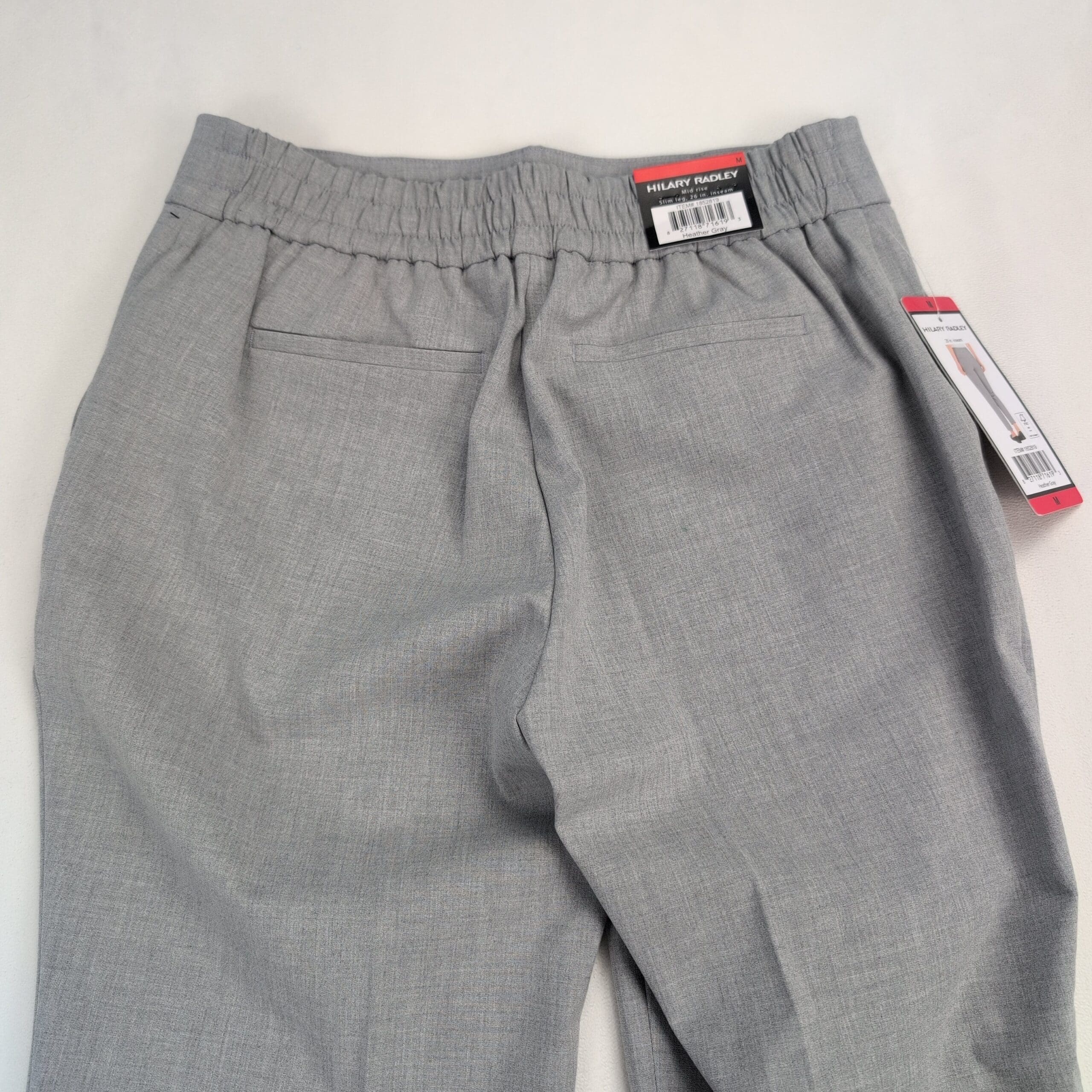 Excellent used condition. Hilary Radley women’s mid-rise trousers in heather gray, size M. Slim leg silhouette provides a streamlined, professional look perfect for office or dressing up. Free of major rips, tears, stains, or flaws; typical light wear may be present. Fabric content and exact measurements not provided — see photos for color and condition.