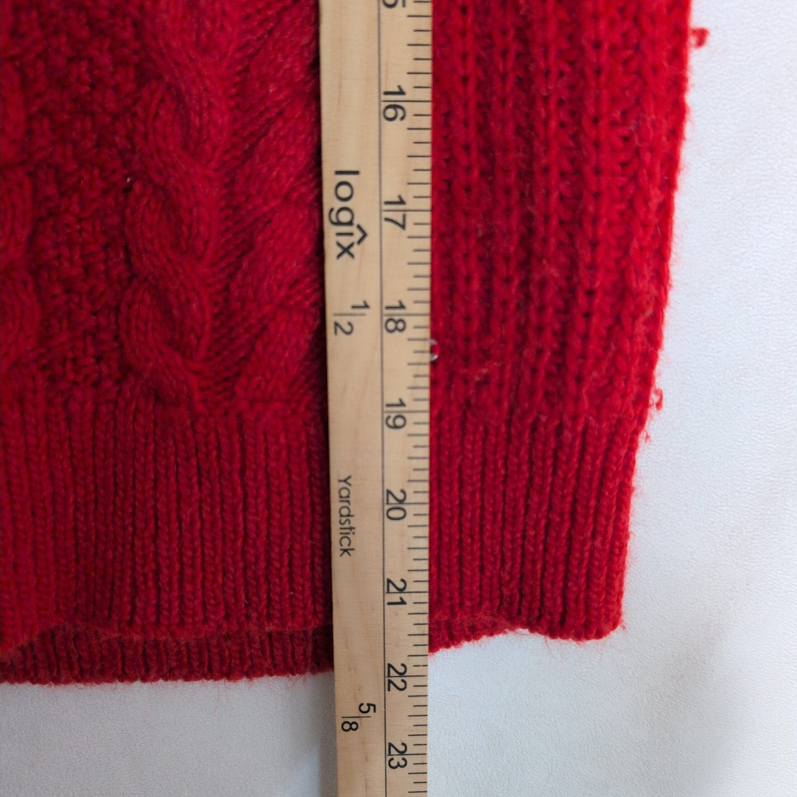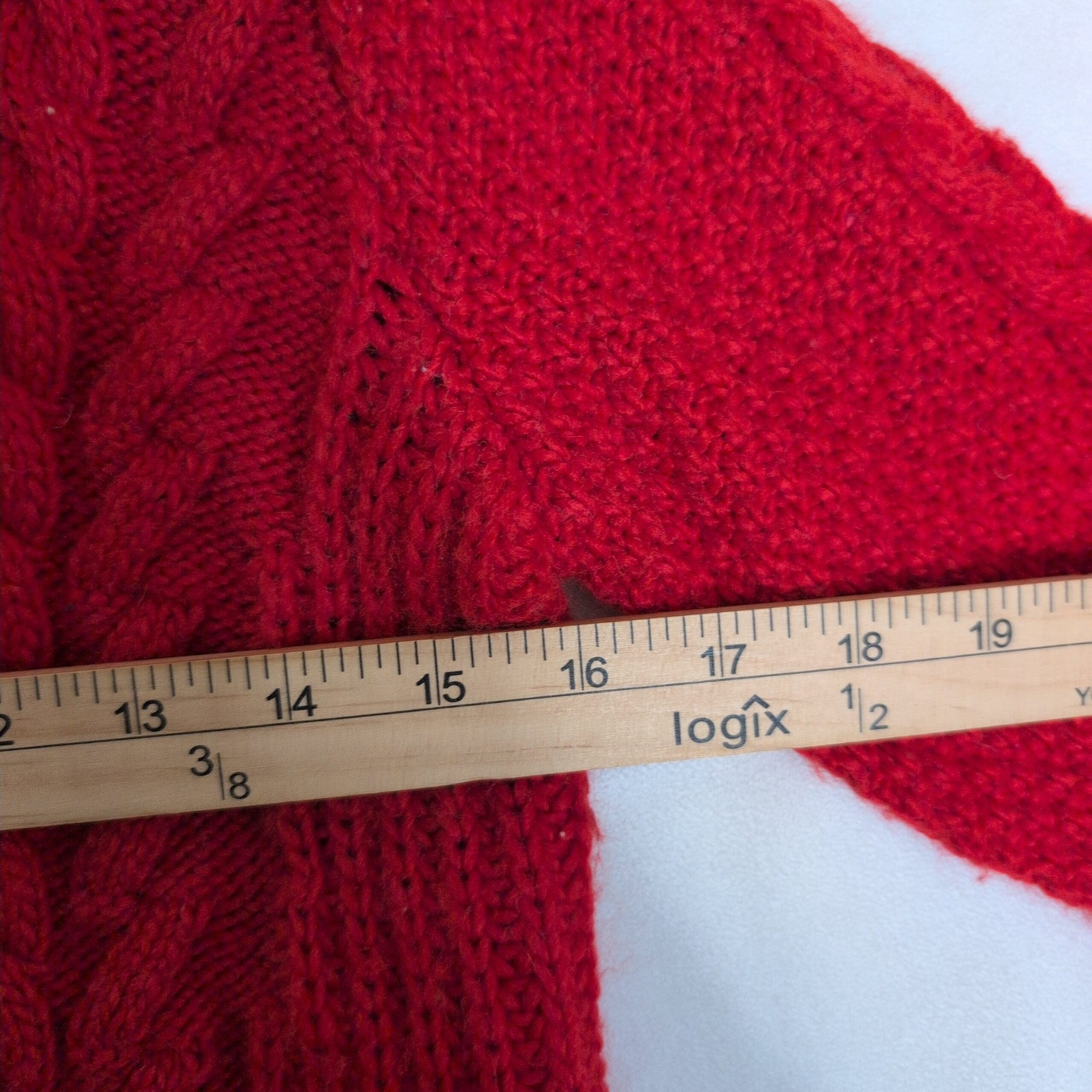 Condition: Gently used and free of major rips, tears, stains, or flaws. Shows light pilling and a few loose yarns at the hem and cuffs consistent with normal wear; see photos for details.