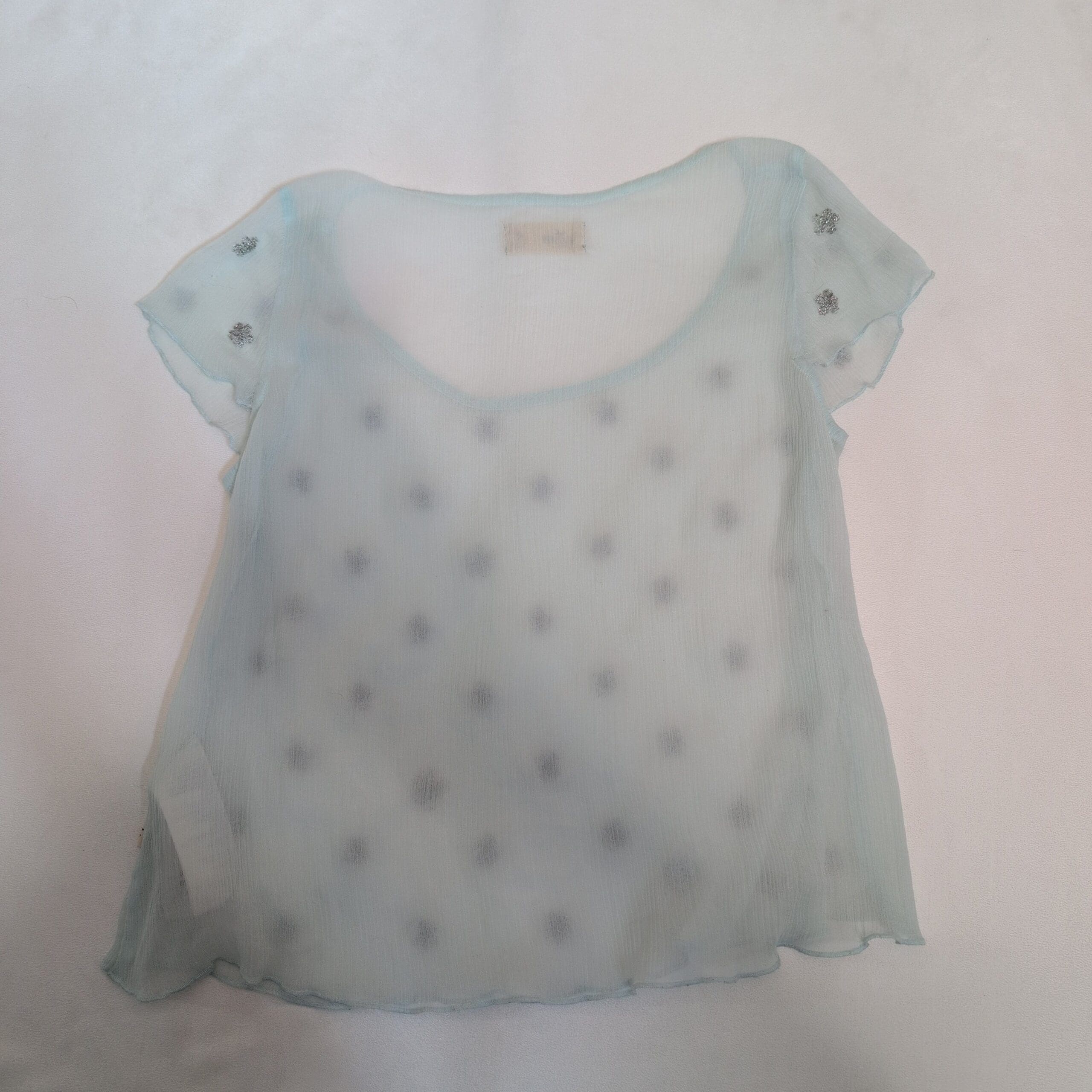 #Hollister #SheerTop #BlueBlouse #WomensTop #SizeM #FlutterSleeves #Embellished