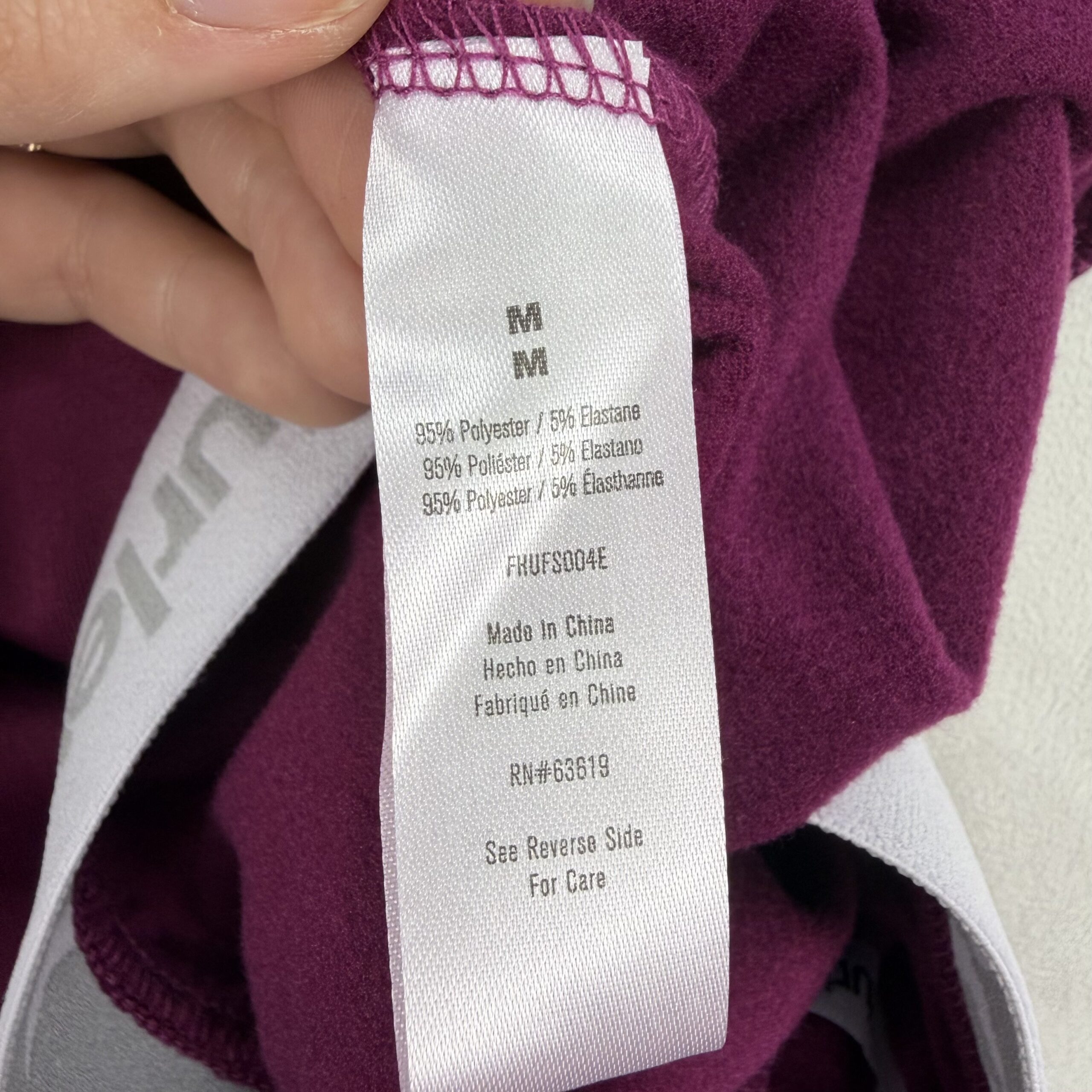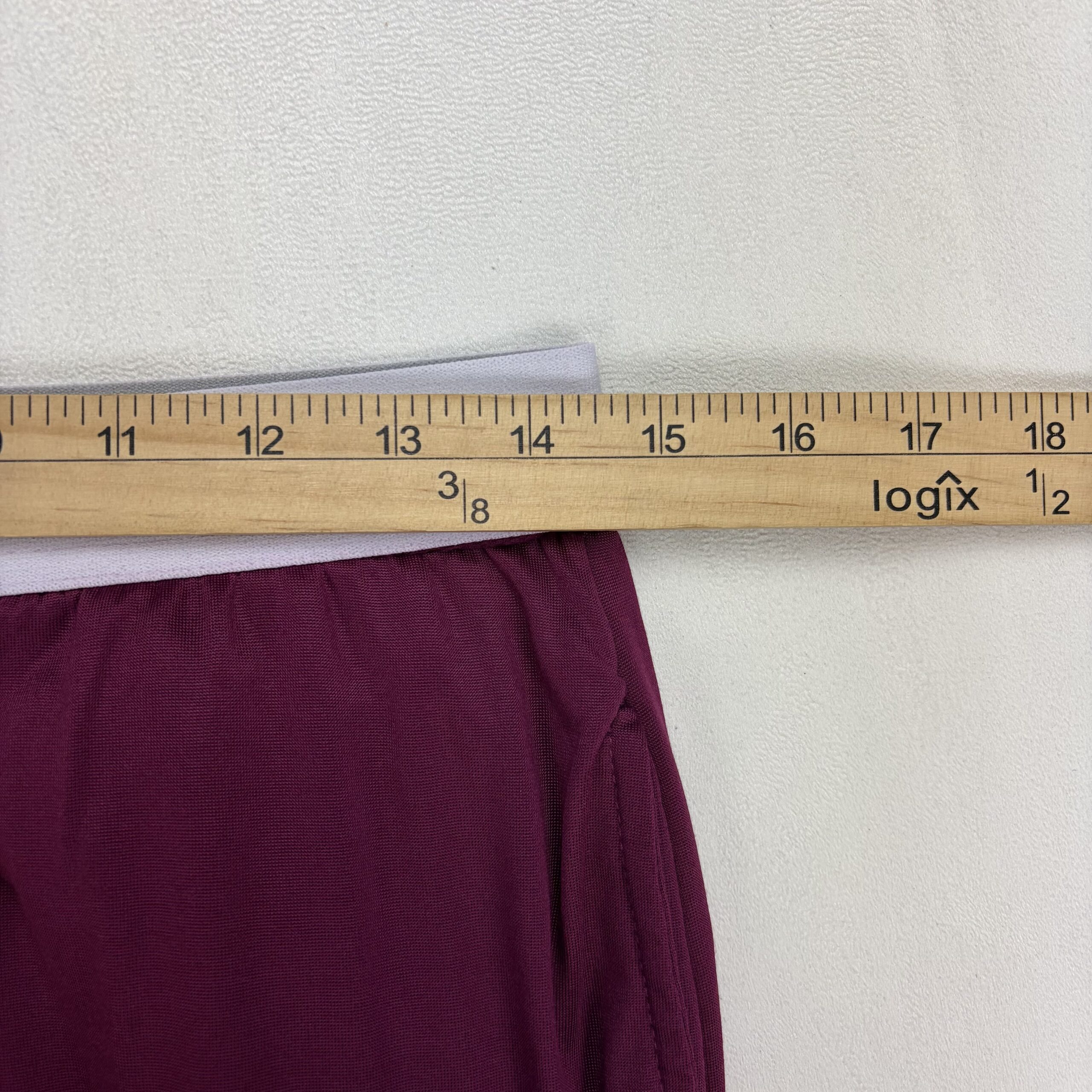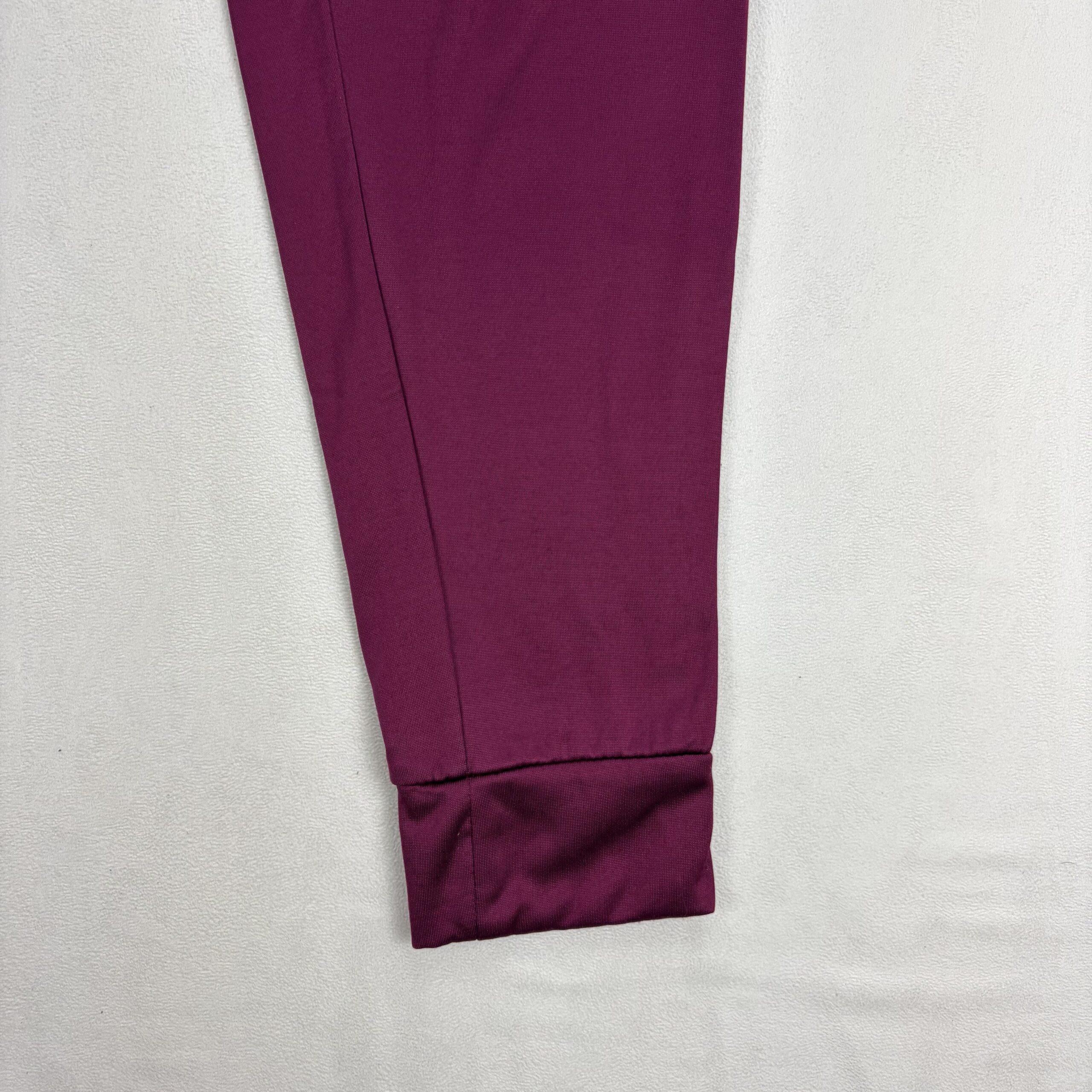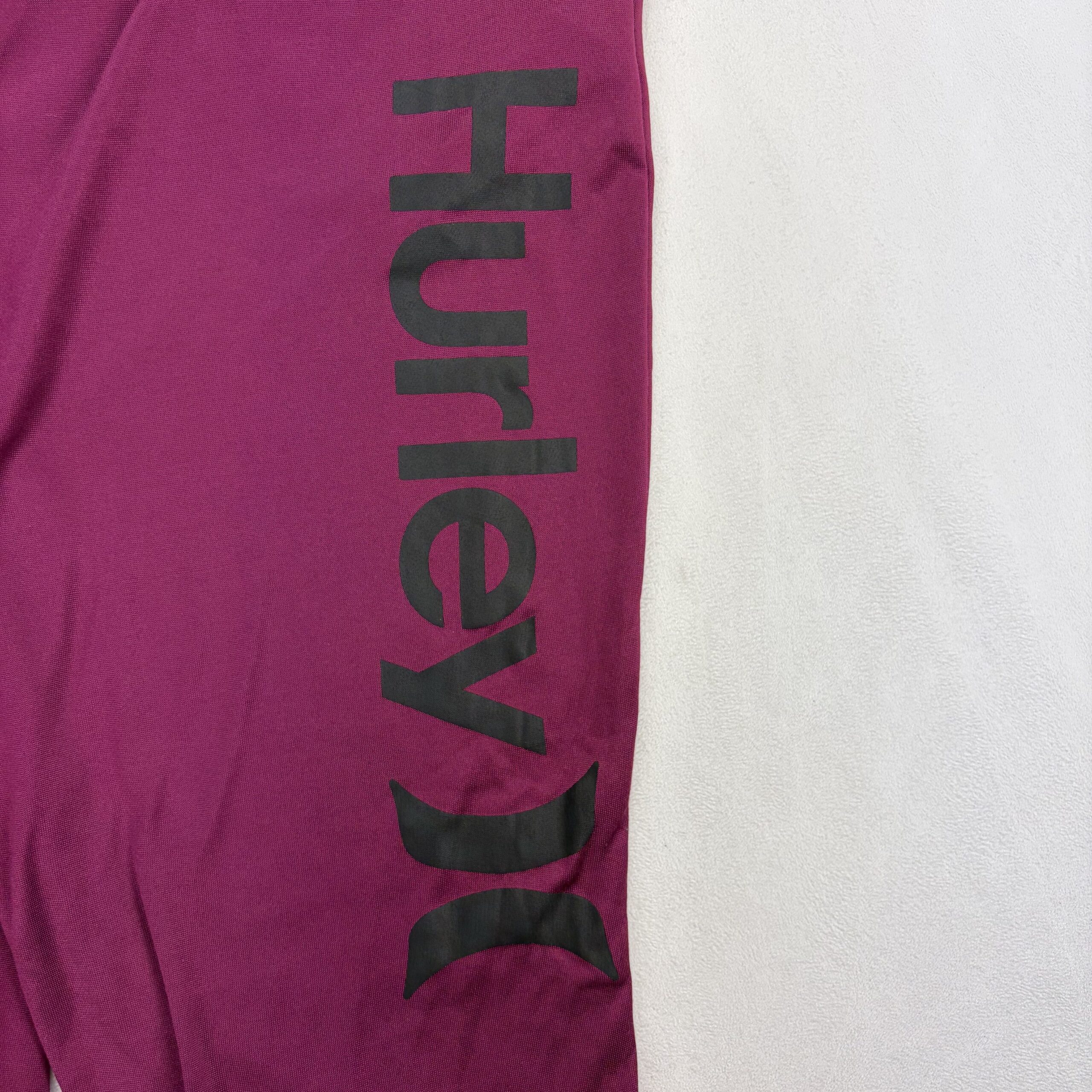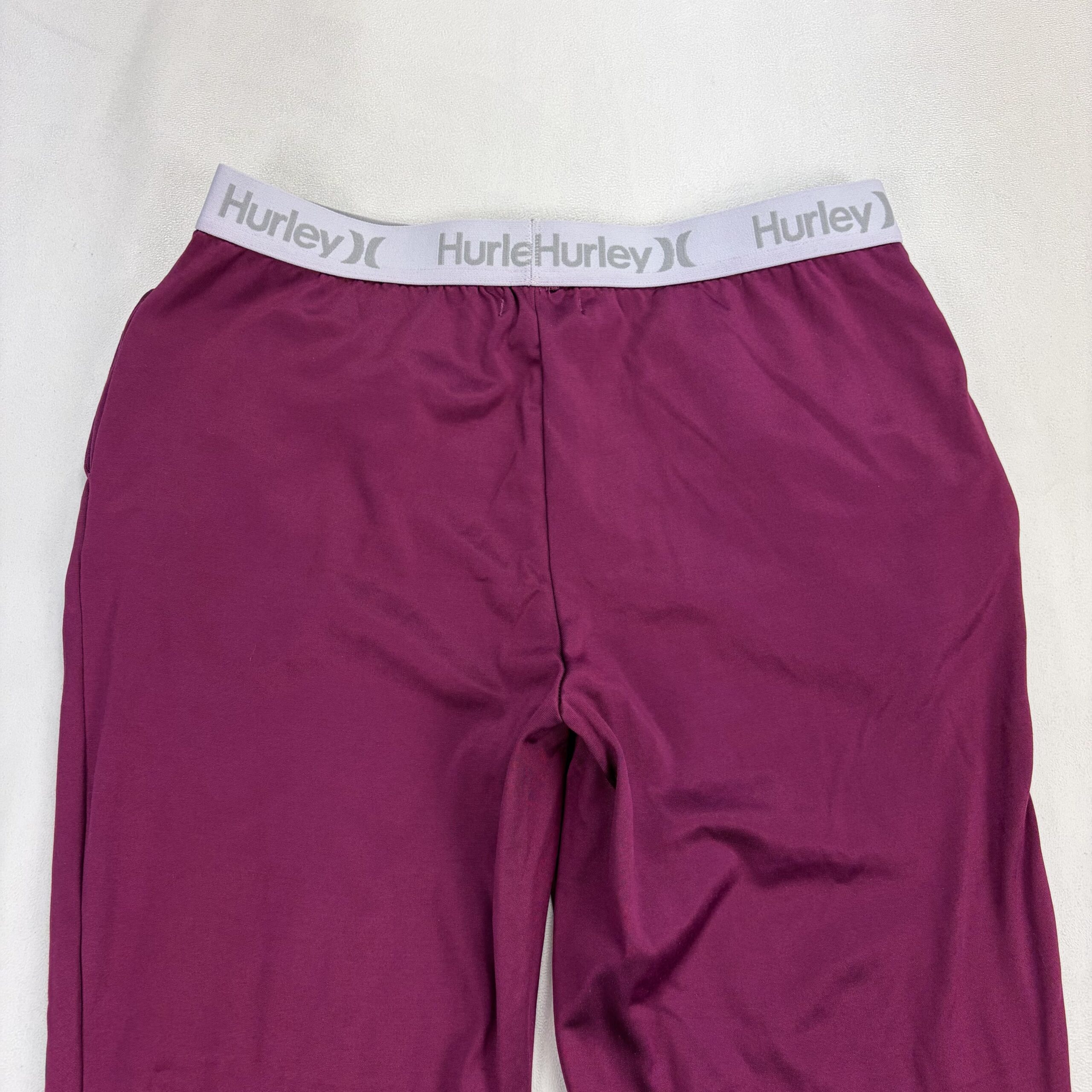 Deep plum Hurley women’s joggers in size M. Lightweight, stretchy athletic track pants with a soft elastic Hurley-branded waistband and cuffed ankles. Features a vertical black Hurley logo on the left leg and a tapered fit for comfortable movement. Great for workouts, running, or everyday loungewear. Excellent used condition — free of major rips, tears, stains, or flaws; shows light, typical wear. See photos for details.