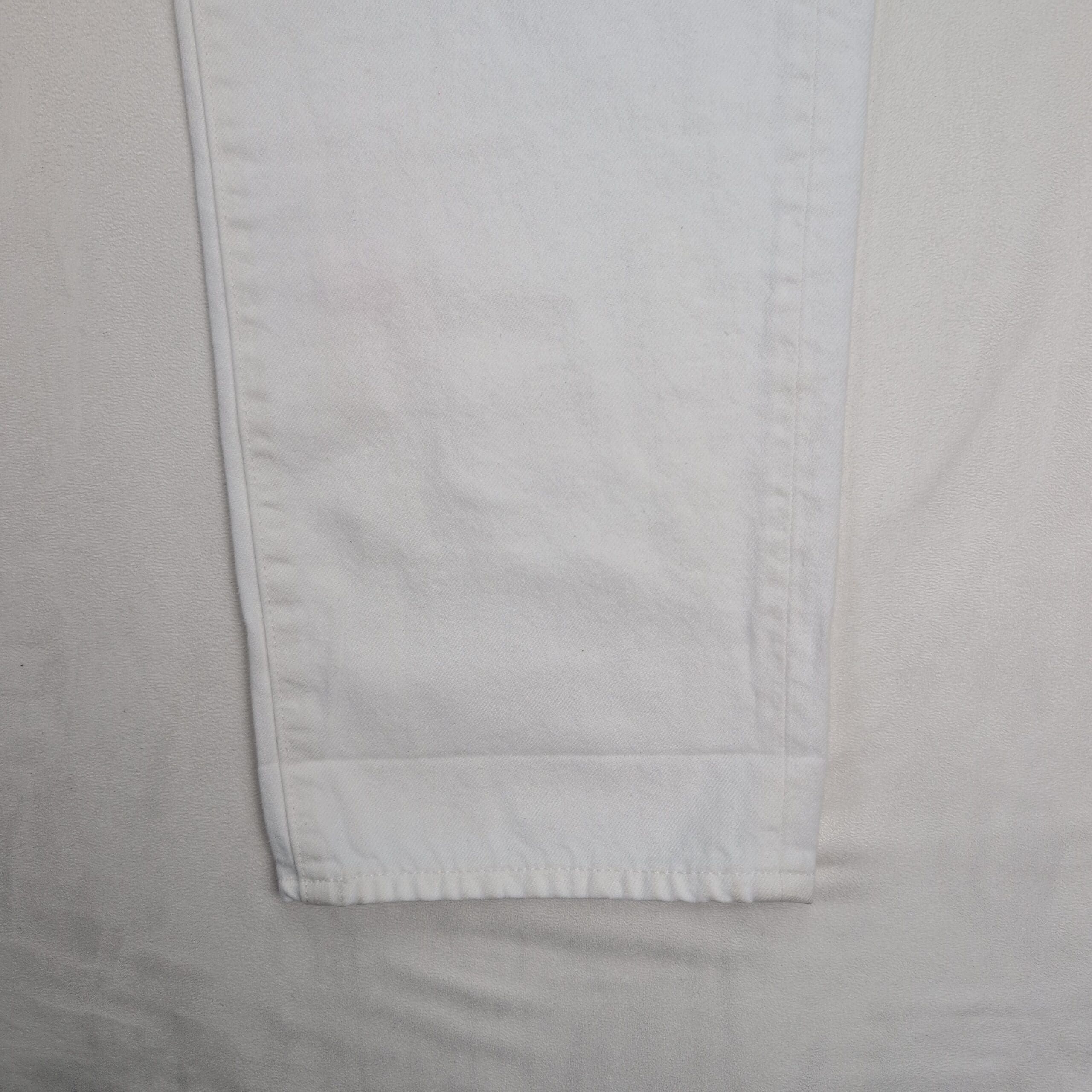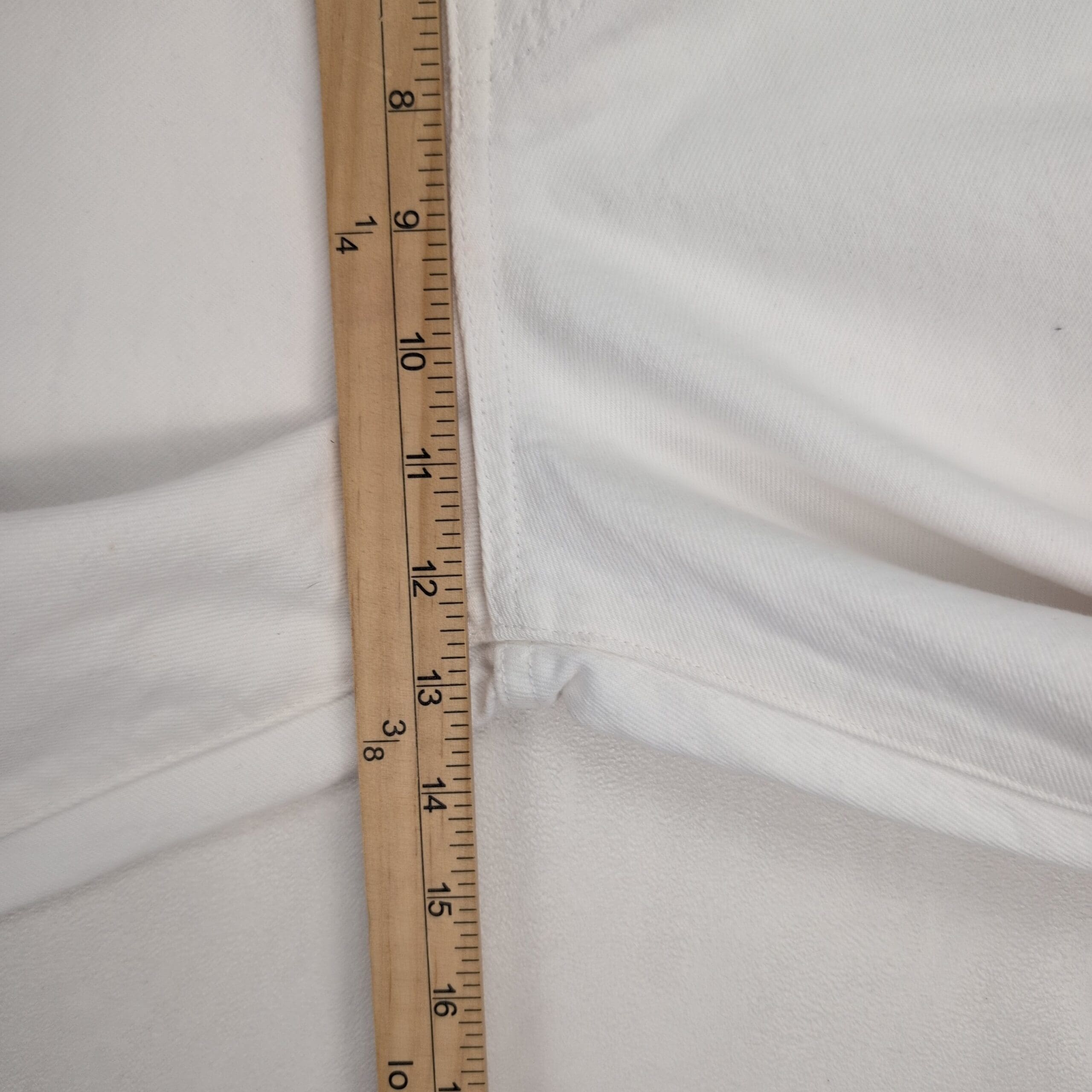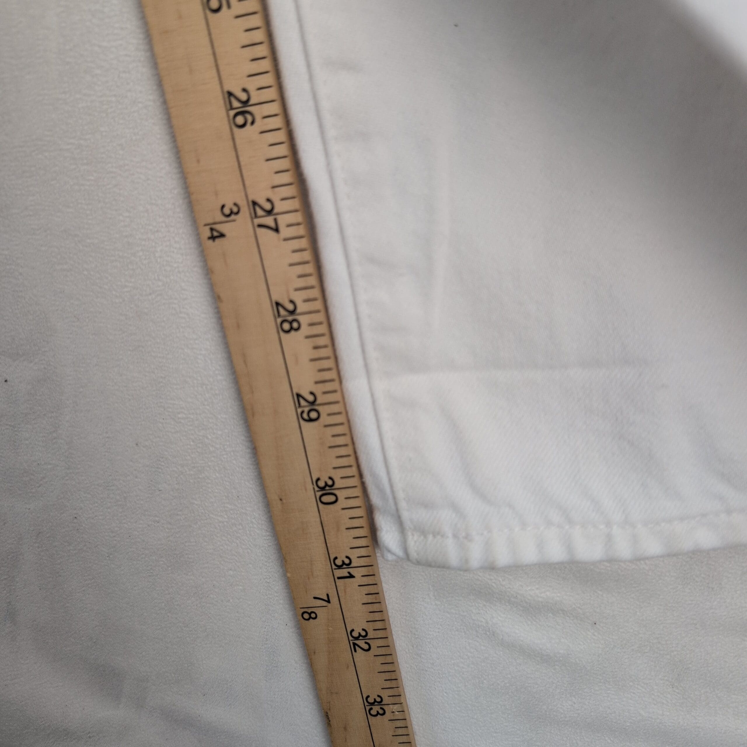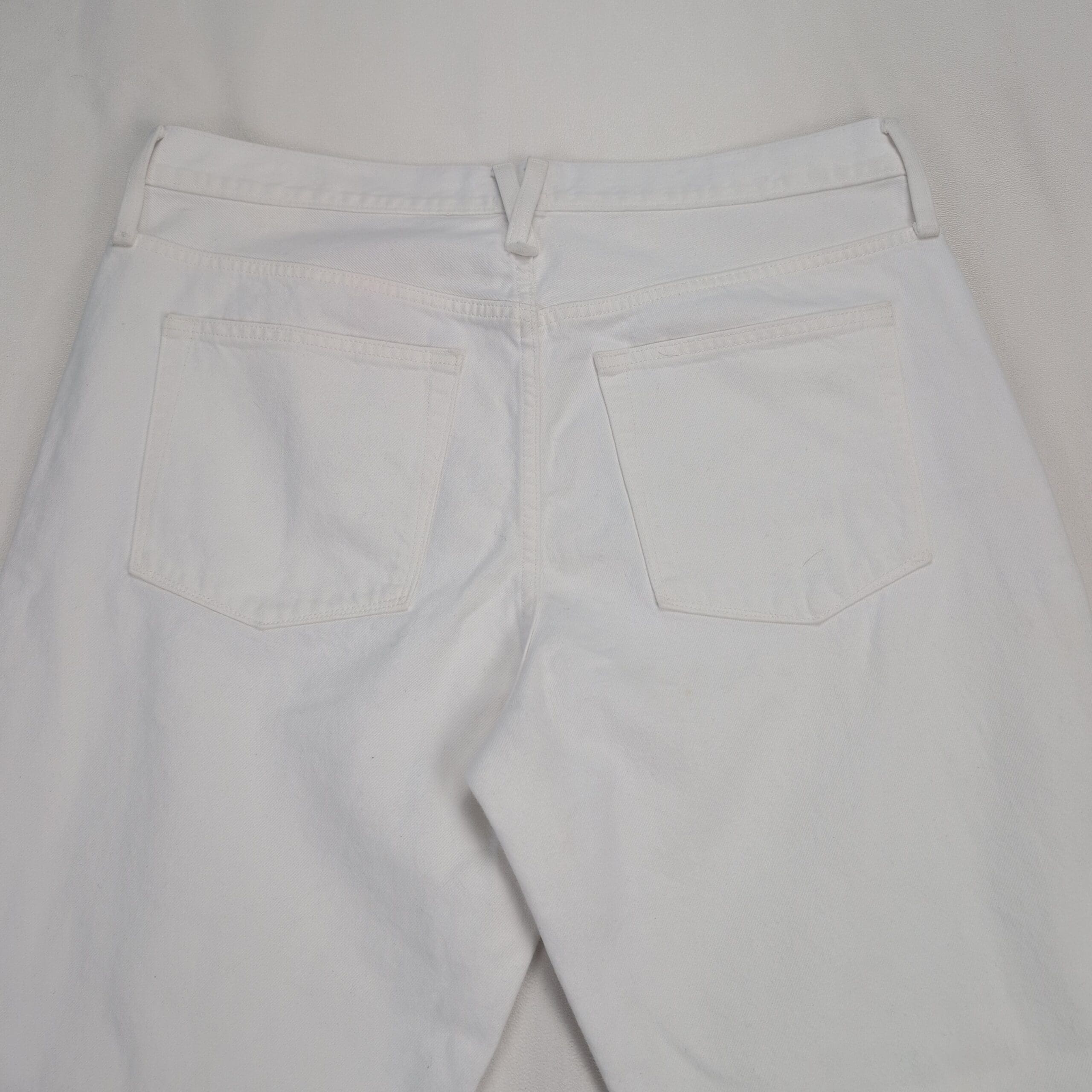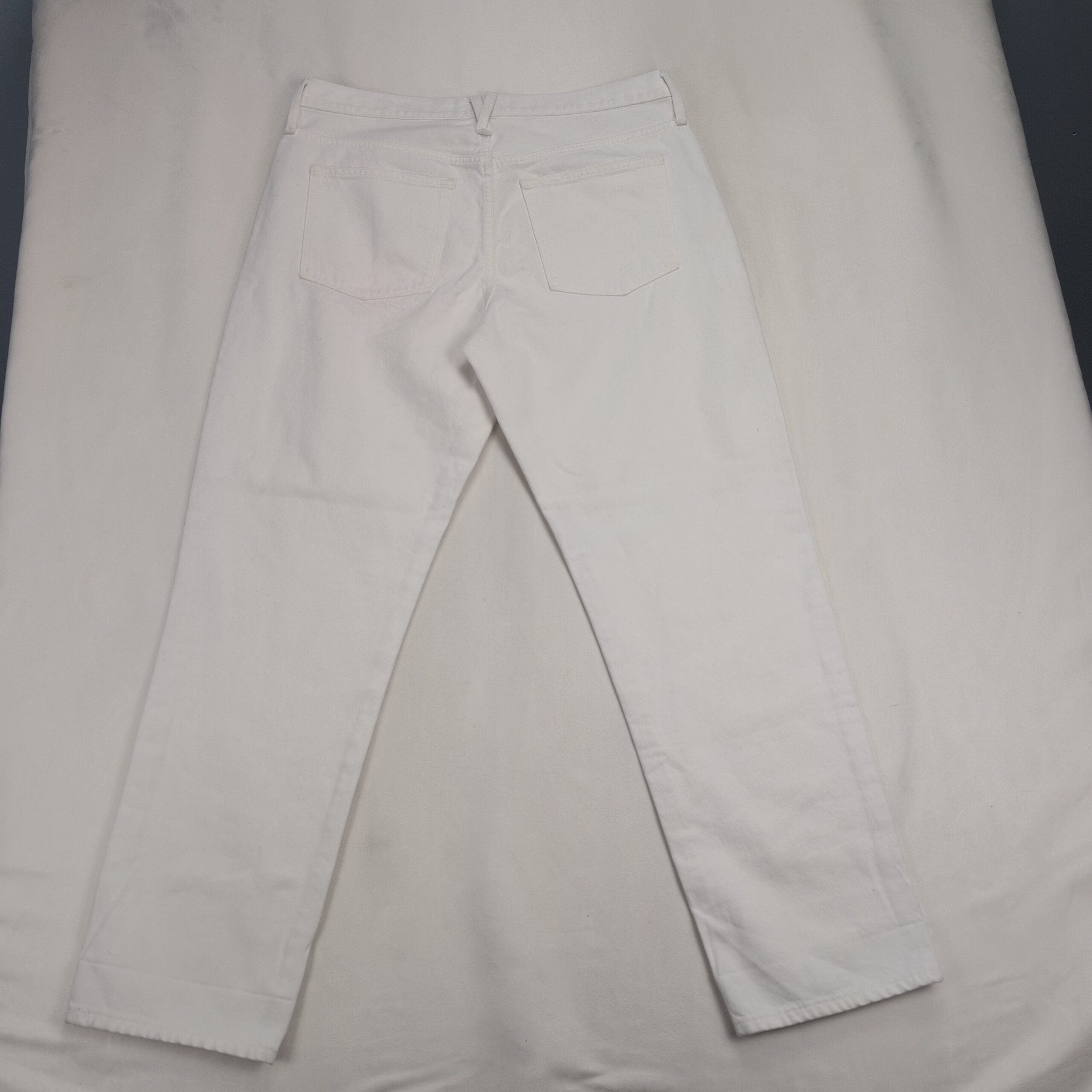 J.Crew women’s Boyfriend jeans in white denim, size 32 (plus). Relaxed, easy fit through the hip and thigh with a slightly tapered leg for a casual, on-trend look. Classic five-pocket styling with button/zip fly and belt loops. Excellent used condition — free of major rips, tears, or heavy stains; please note there is one small spot on the front leg (pictured). Typical light wear consistent with gentle use.