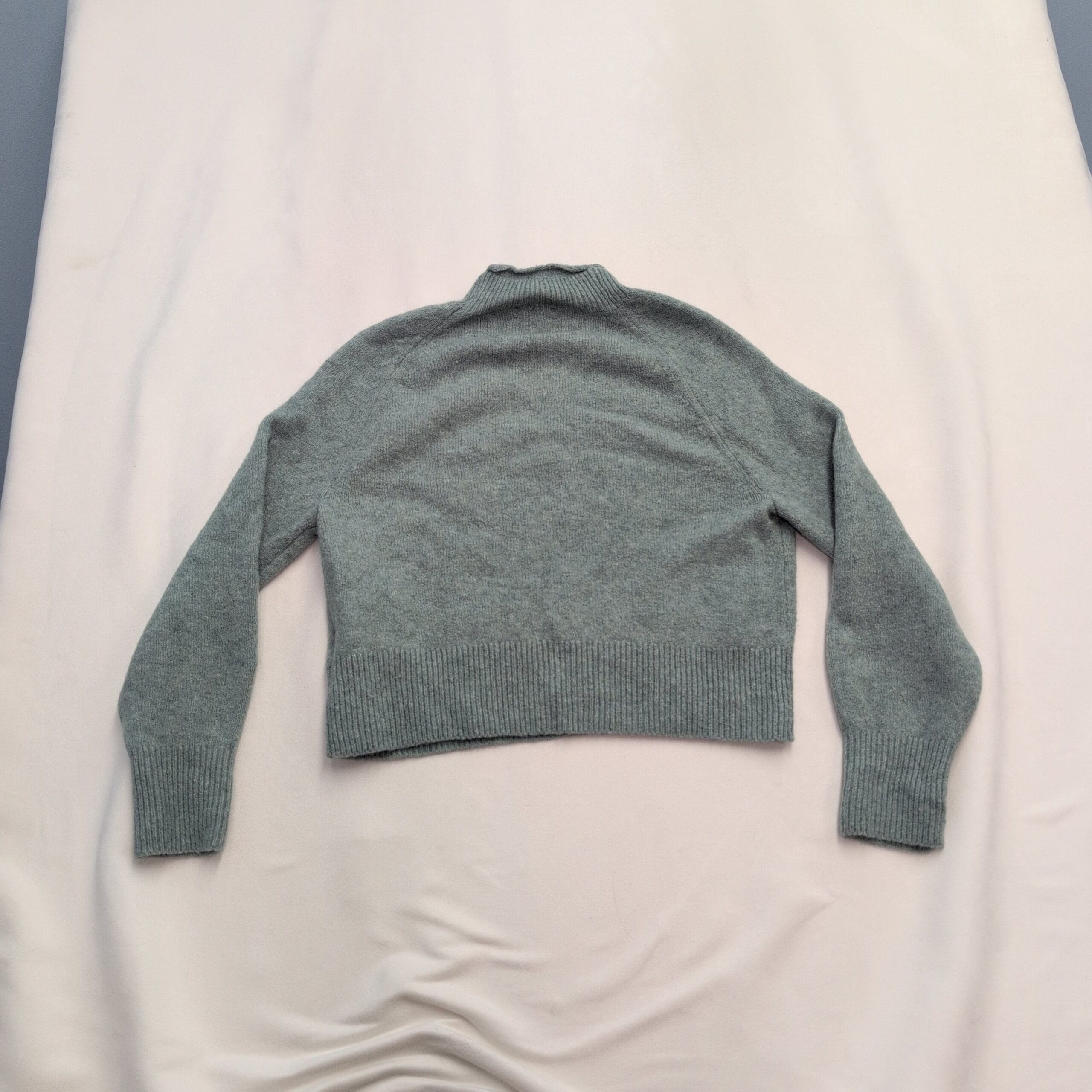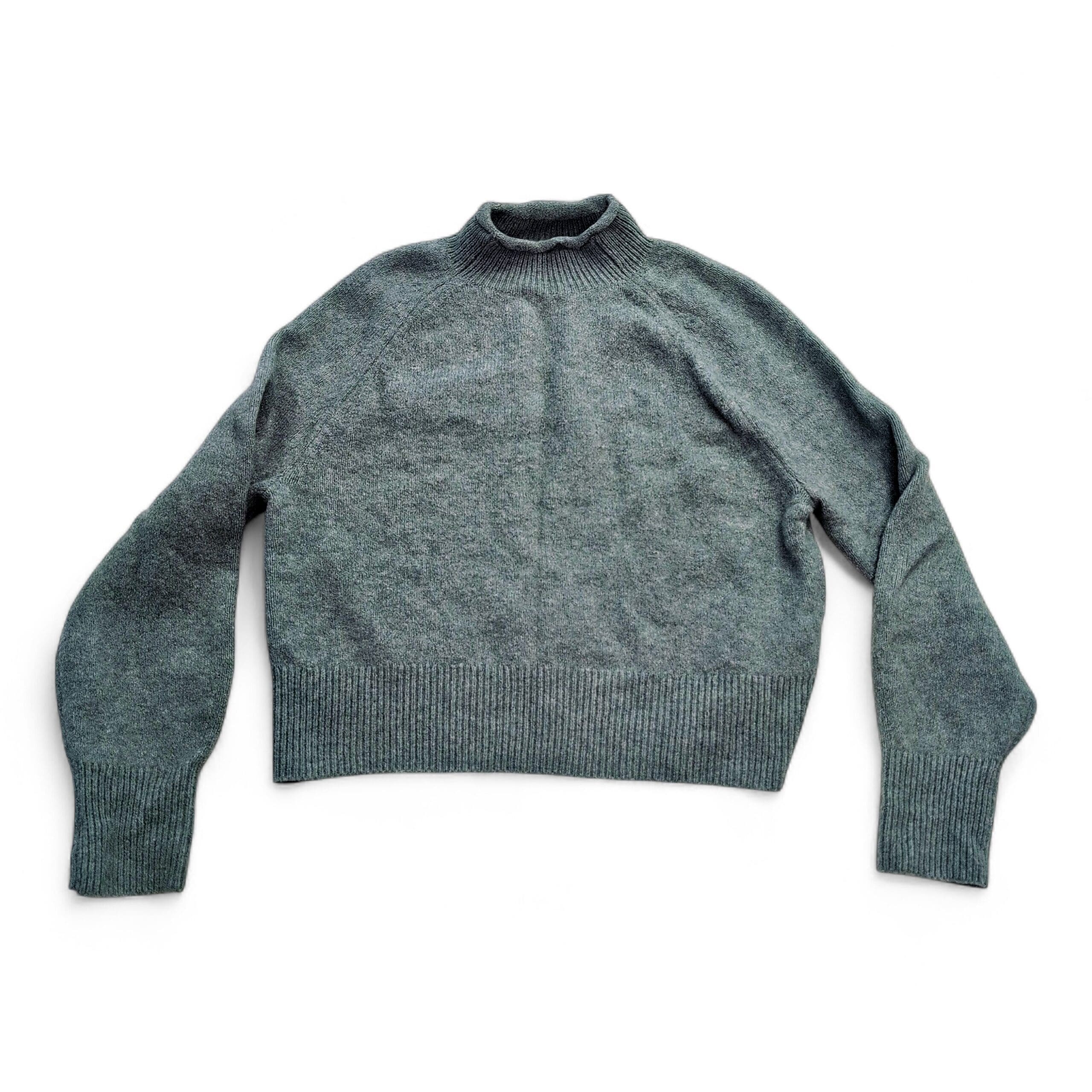 J.Crew gray mock-neck sweater in size XS. Clean, minimalist design with a slightly boxy, cropped silhouette and ribbed cuffs and hem — an easy layering piece for fall and winter. Soft heather gray color with a cozy knit ideal for everyday wear.